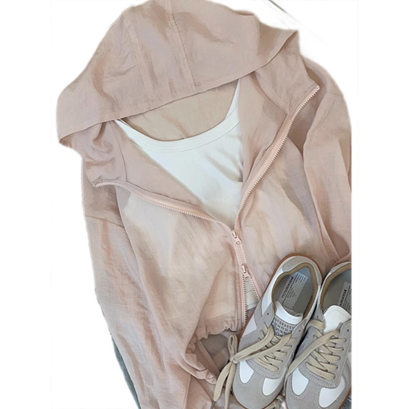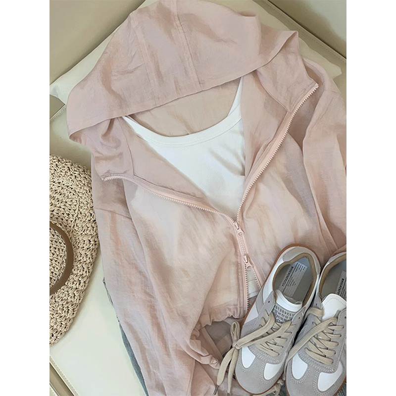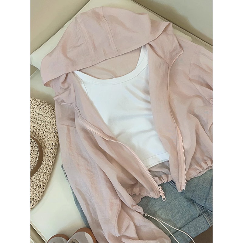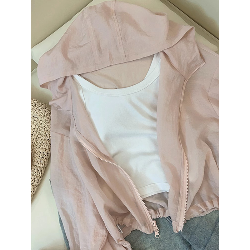 廣州十三行夏季粉色防曬衣冰絲薄款連帽短外套女2023新款上衣寬鬆