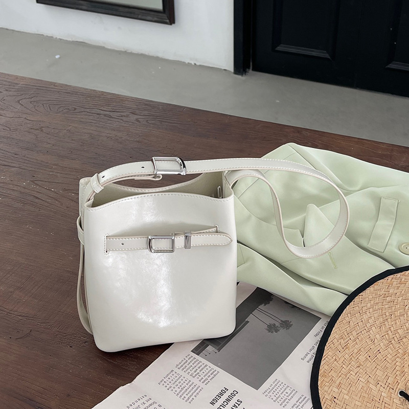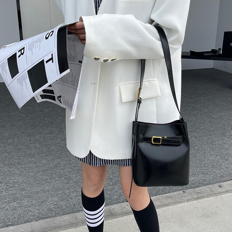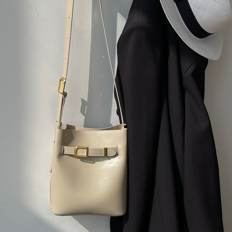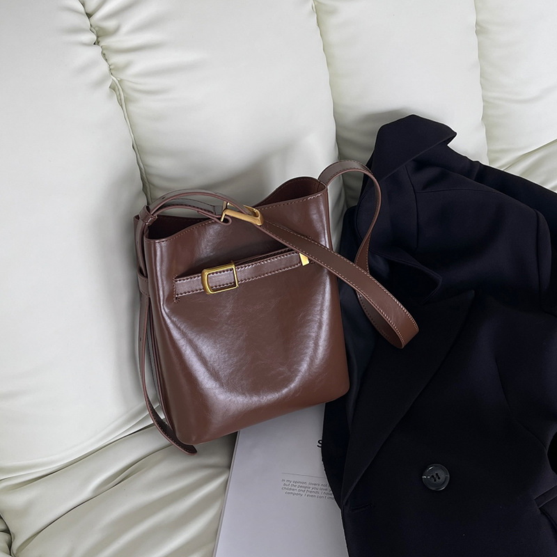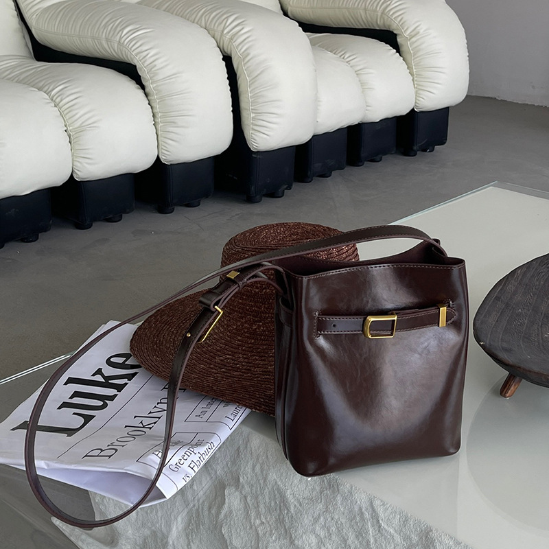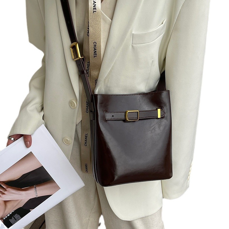 郑丽媛同款法式浪漫水桶包油蜡牛皮真皮女包小众质感单肩斜挎包