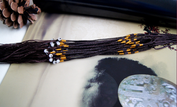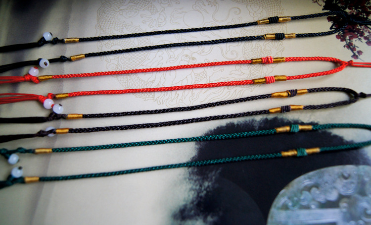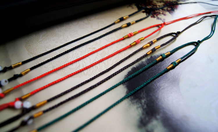 【用途】:可用于挂金器、银器、玉器、陶瓷器、饰品配件等吊坠用【包装】:无单独的包装【说明】:手工编织项链挂绳,出现线头或者毛边的情况实属正常只要用打火机烧一下就能弄好。