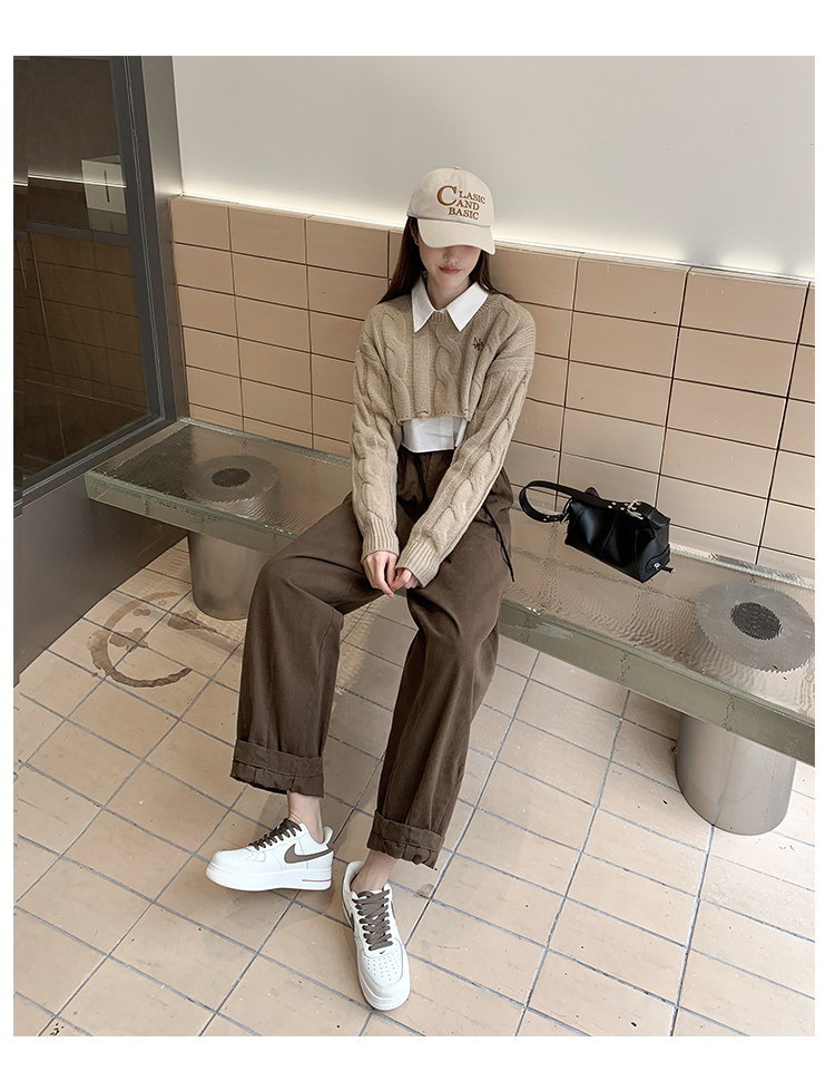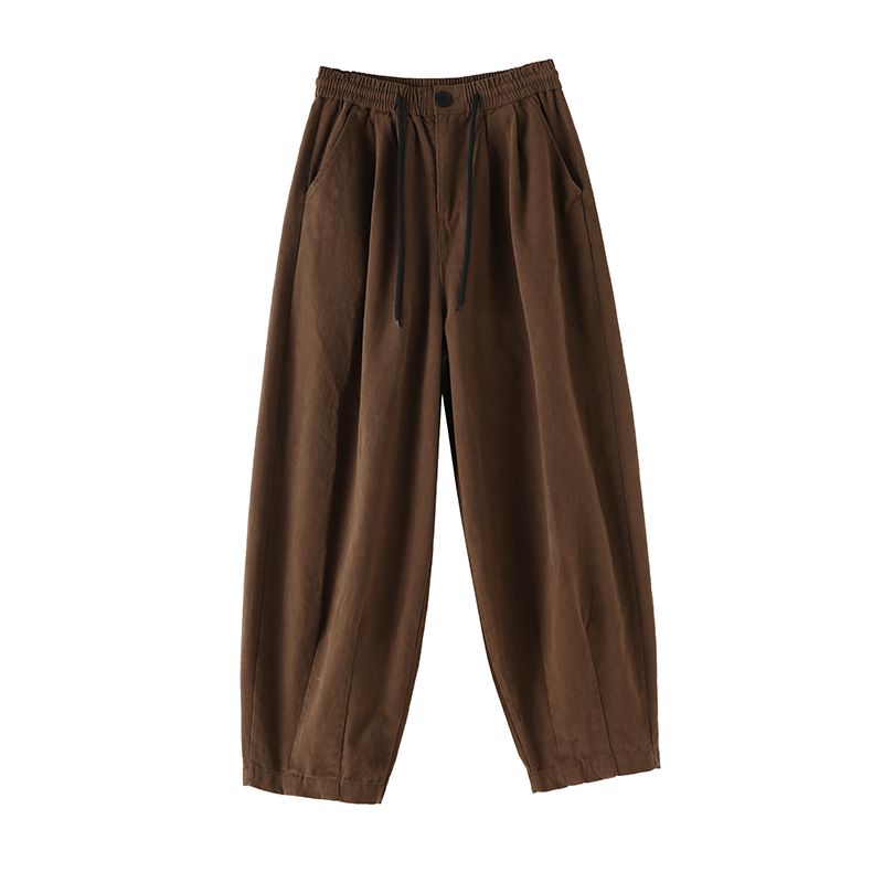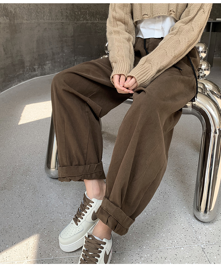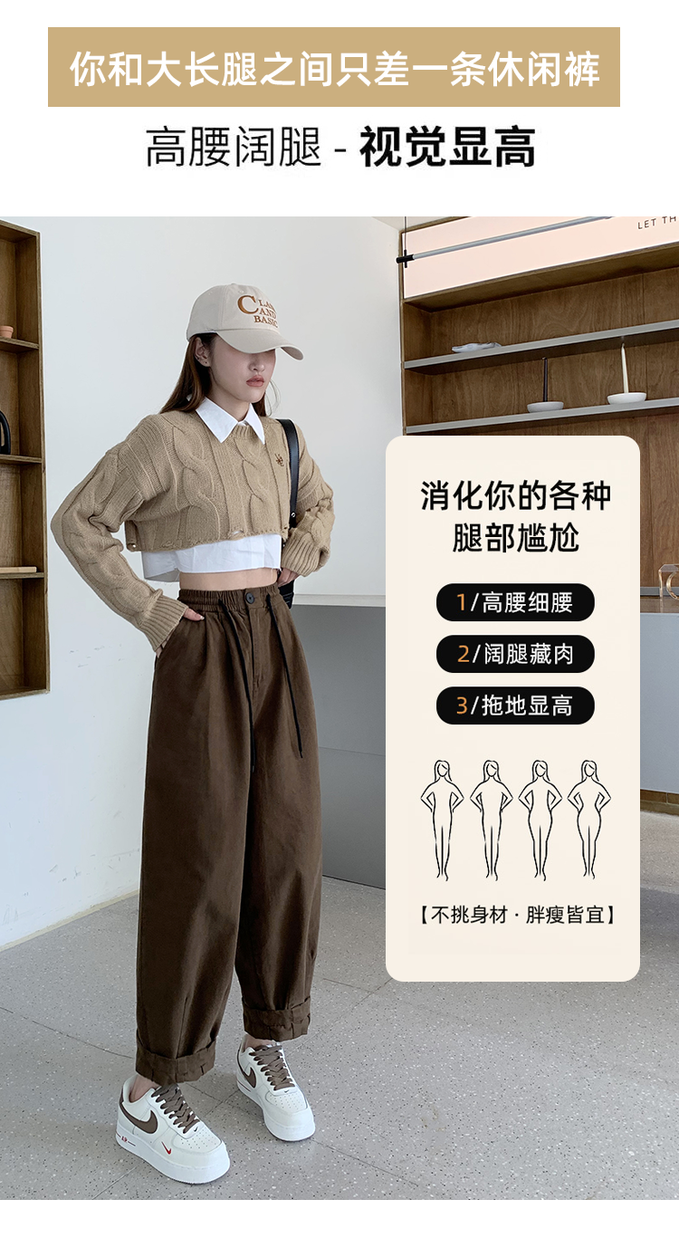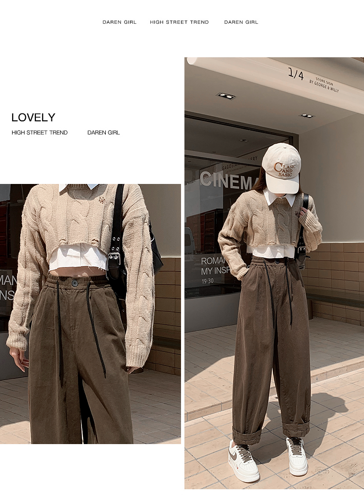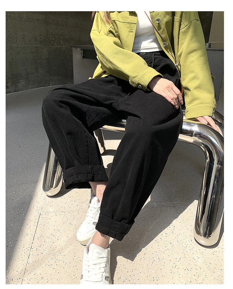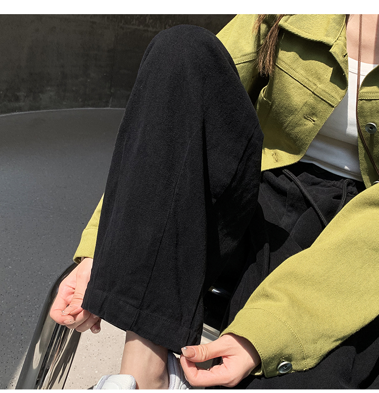 墨綠色工裝褲女春款抽繩高腰寬鬆休閒哈倫西裝褲小個子九分老爹褲