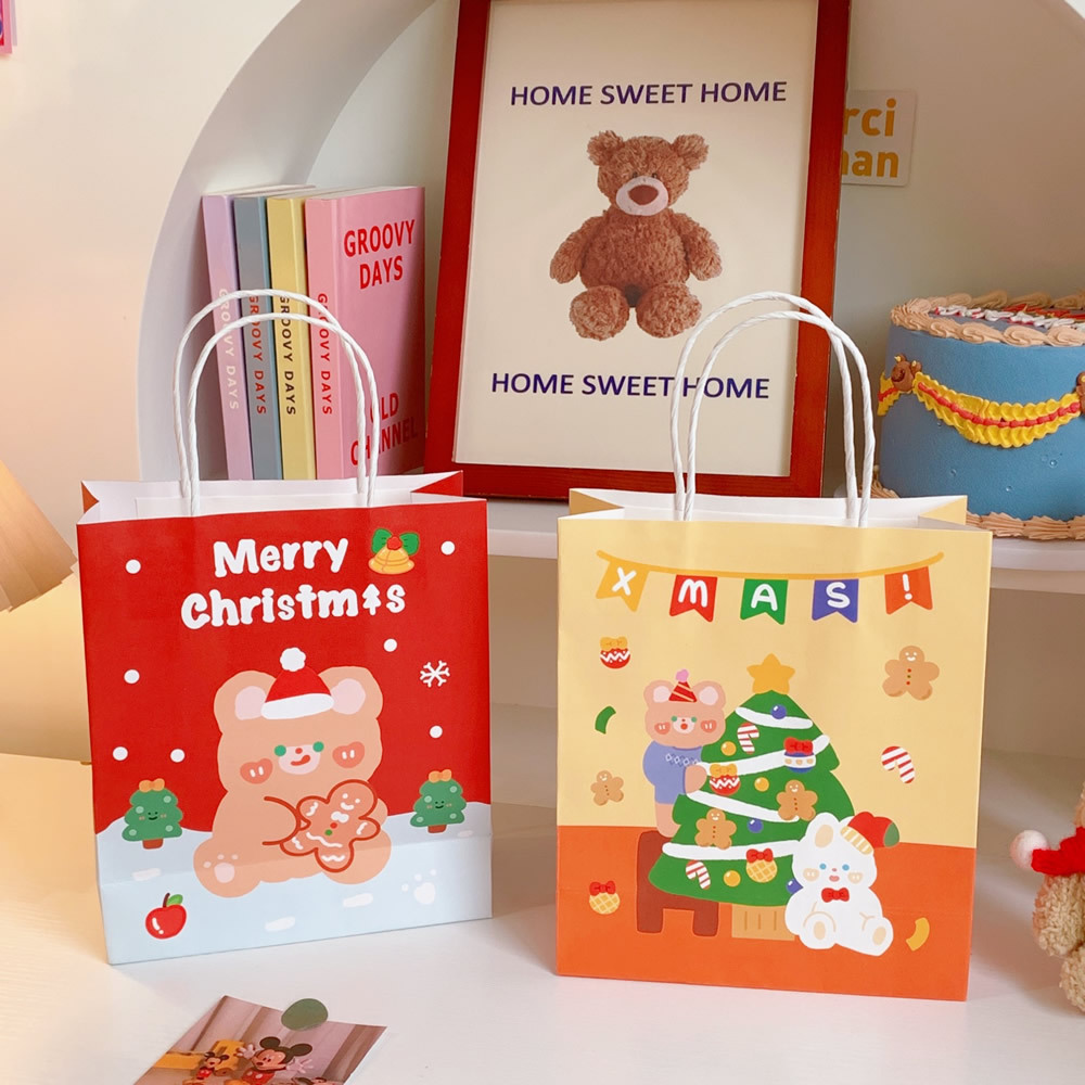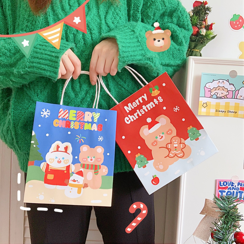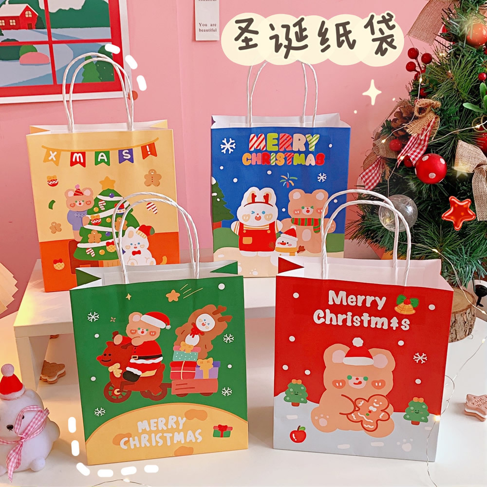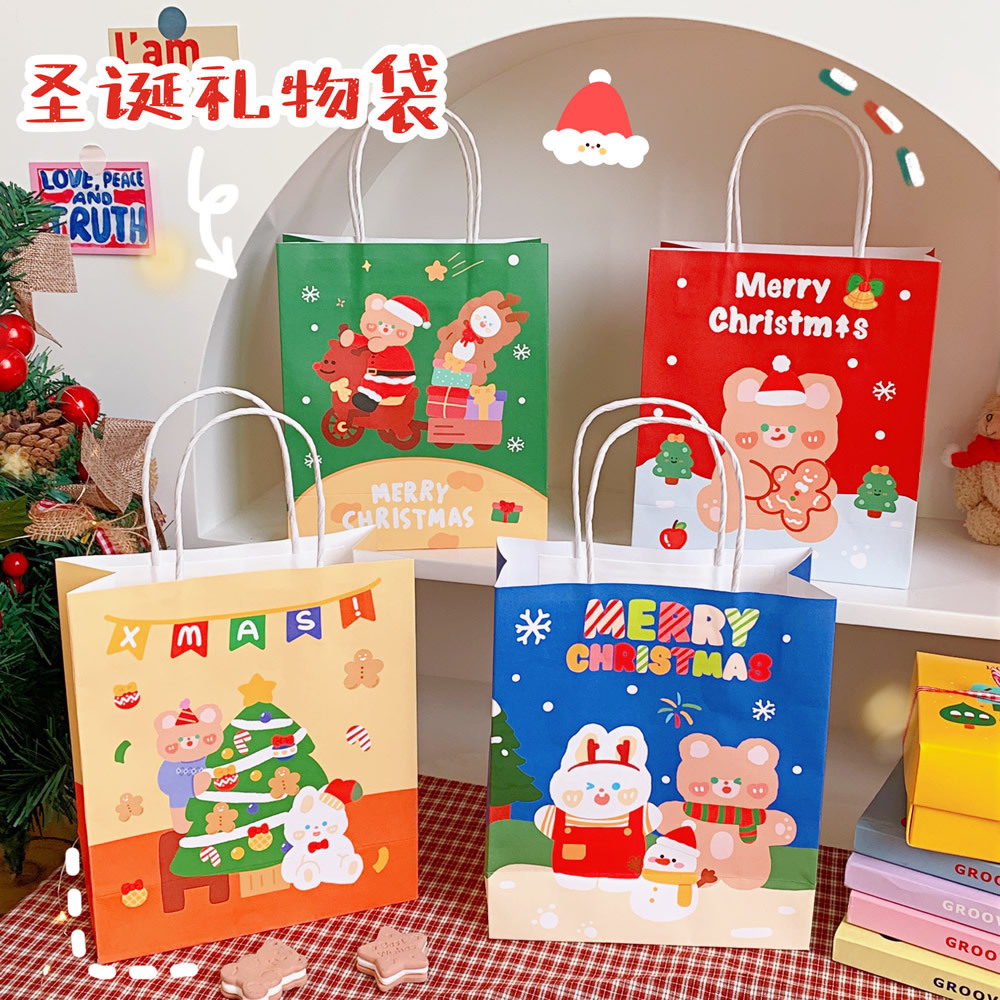 可爱礼品袋ins风卡通手提圣诞纸袋生日新年节日伴手礼物包装袋子