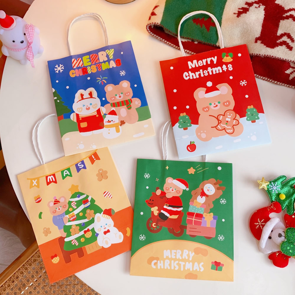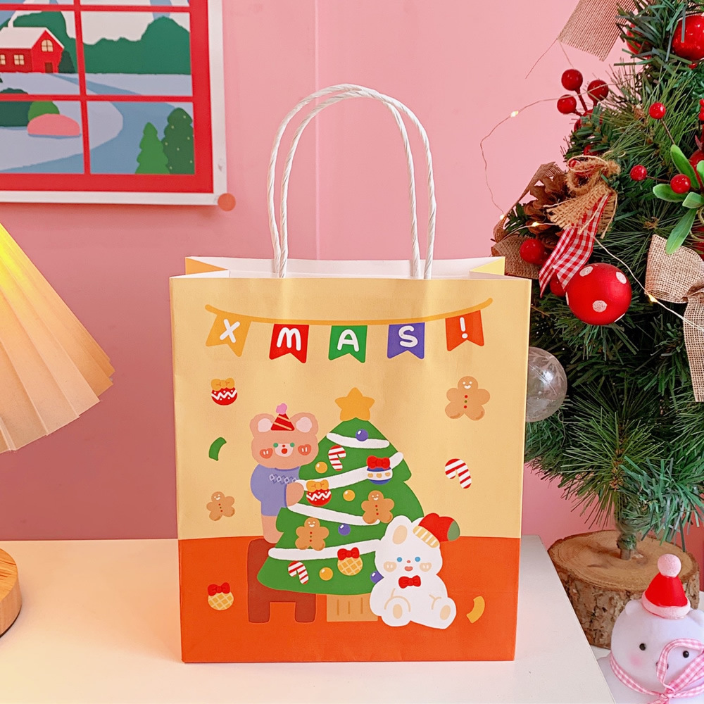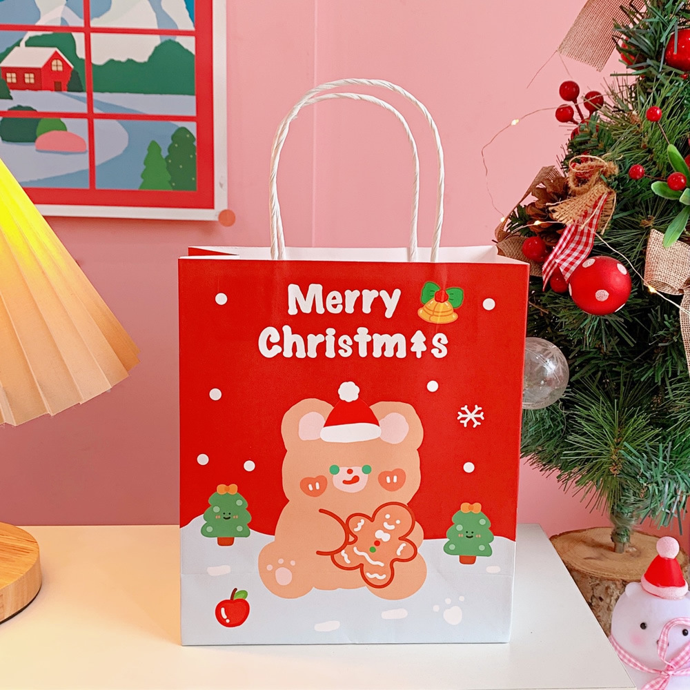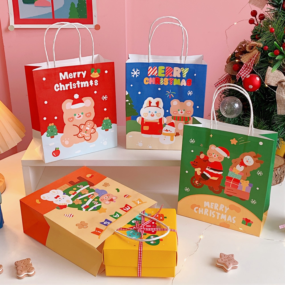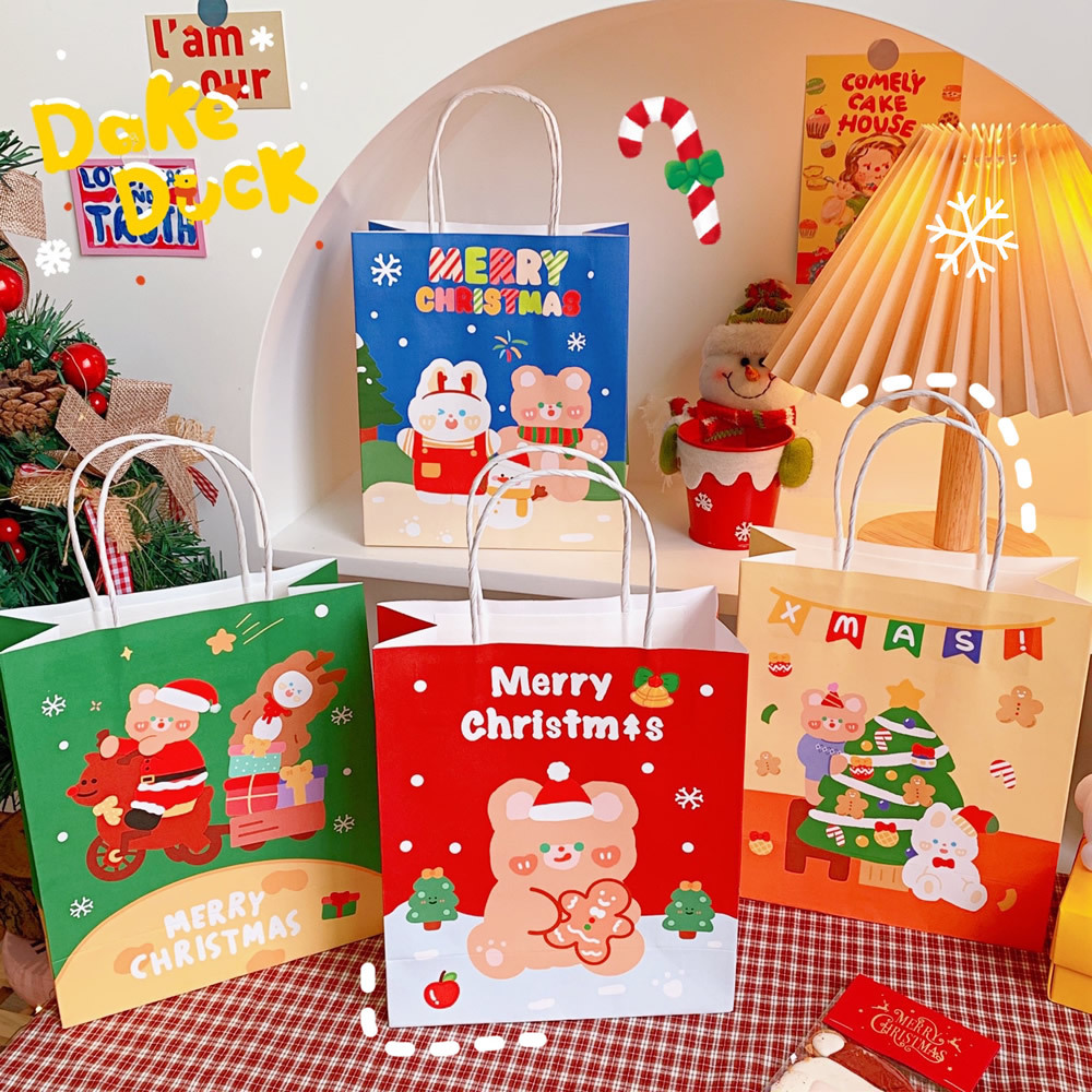 可爱礼品袋ins风卡通手提圣诞纸袋生日新年节日伴手礼物包装袋子