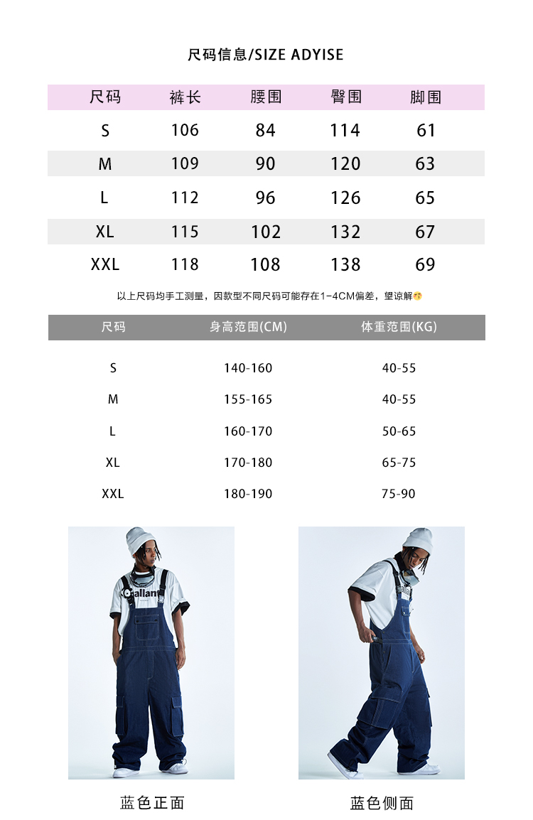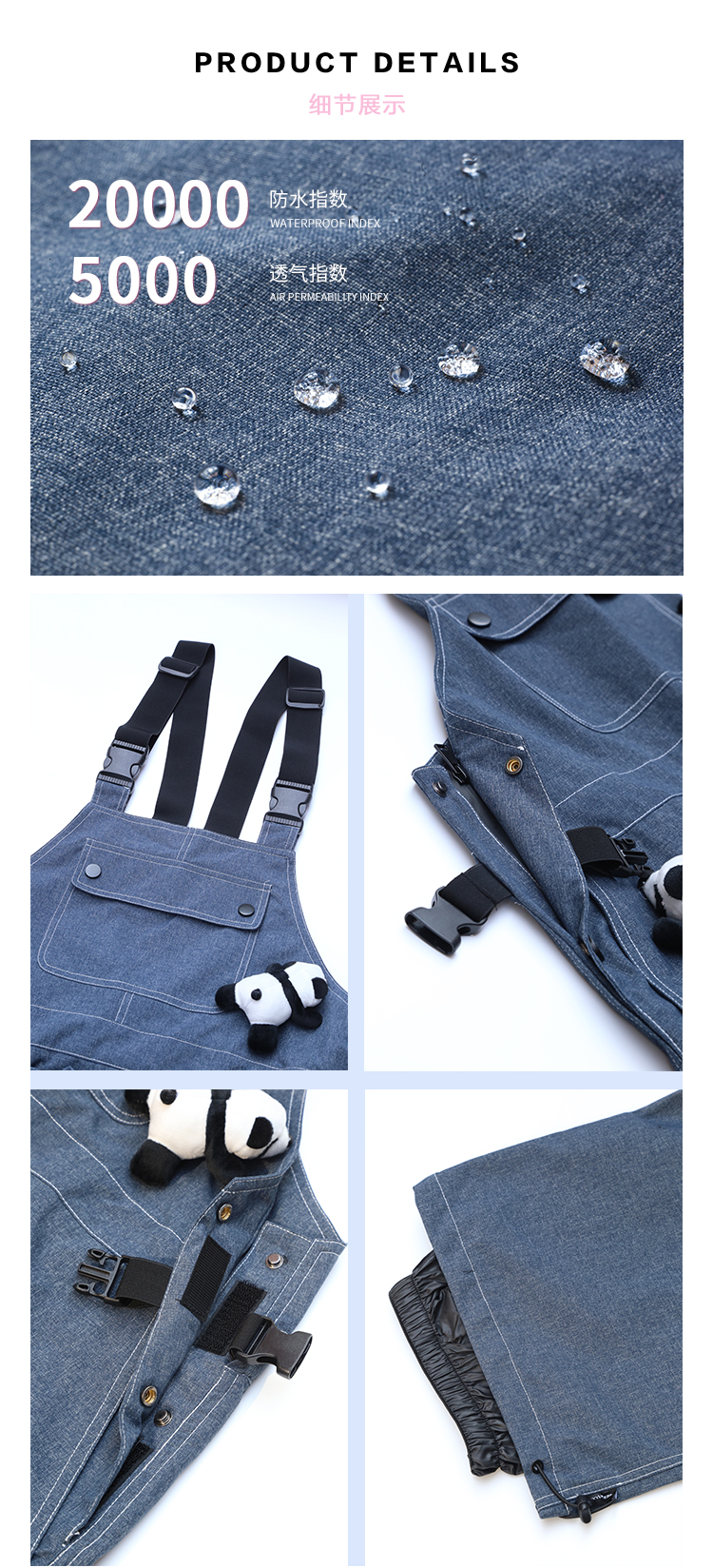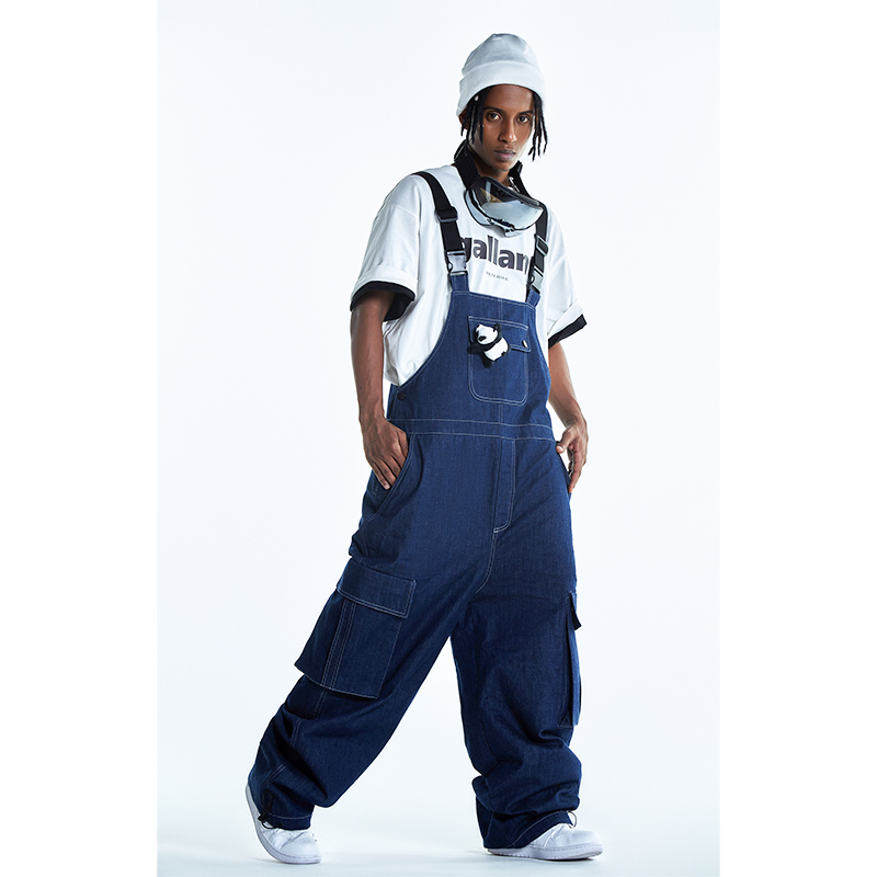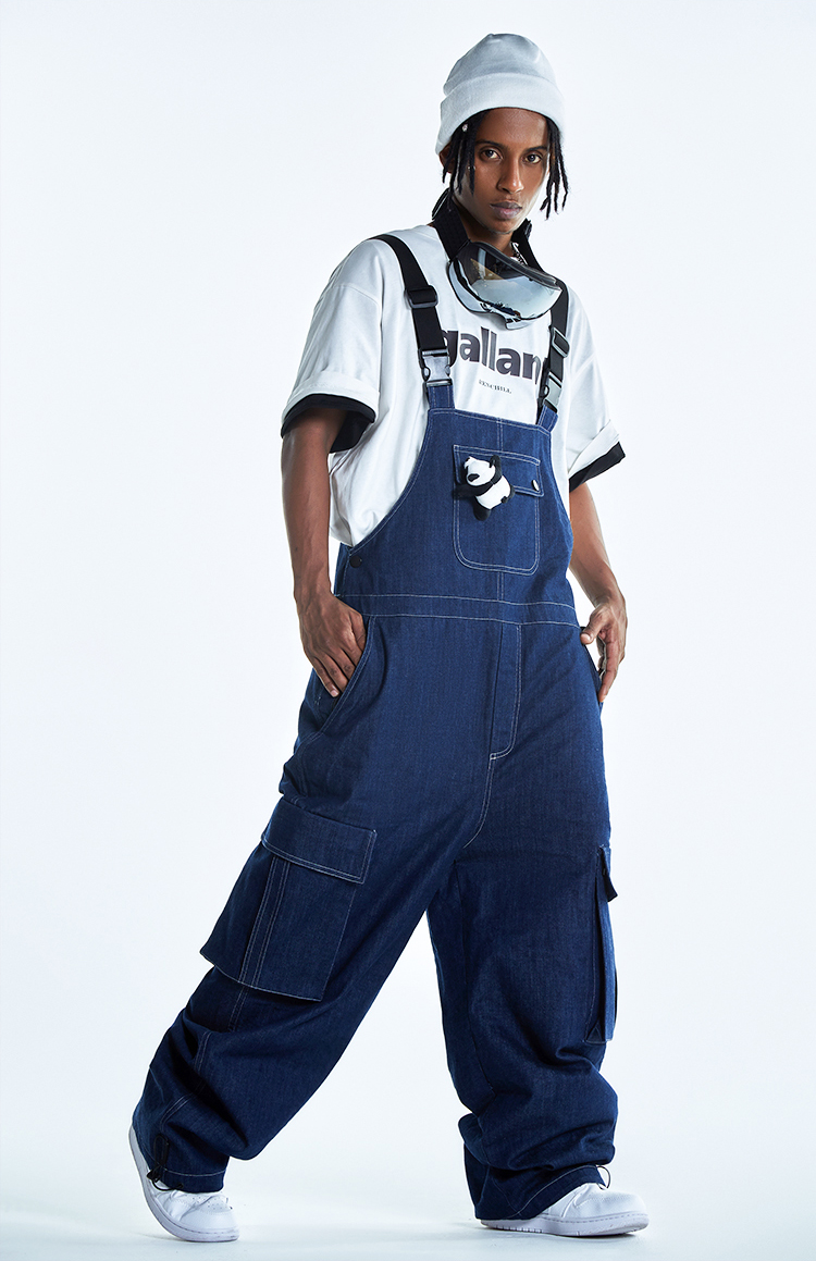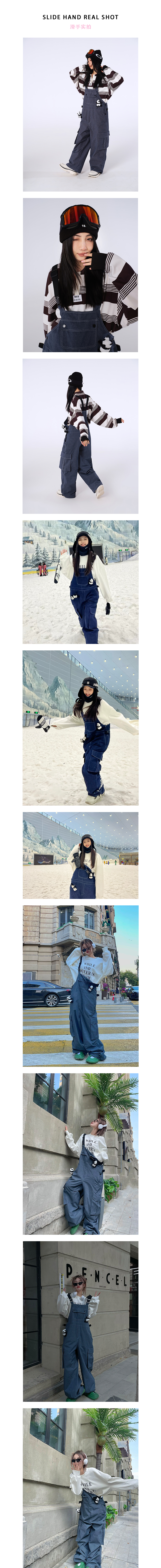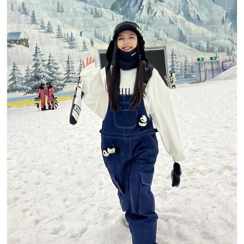 Ren刃川 現貨藍色牛仔連身滑雪服抱嬰袋褲單雙板男女款防水2022新款