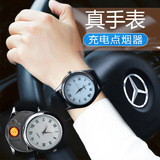 WB-559男士腕表金属防风充电手表打火机USB点烟器可换丝批发