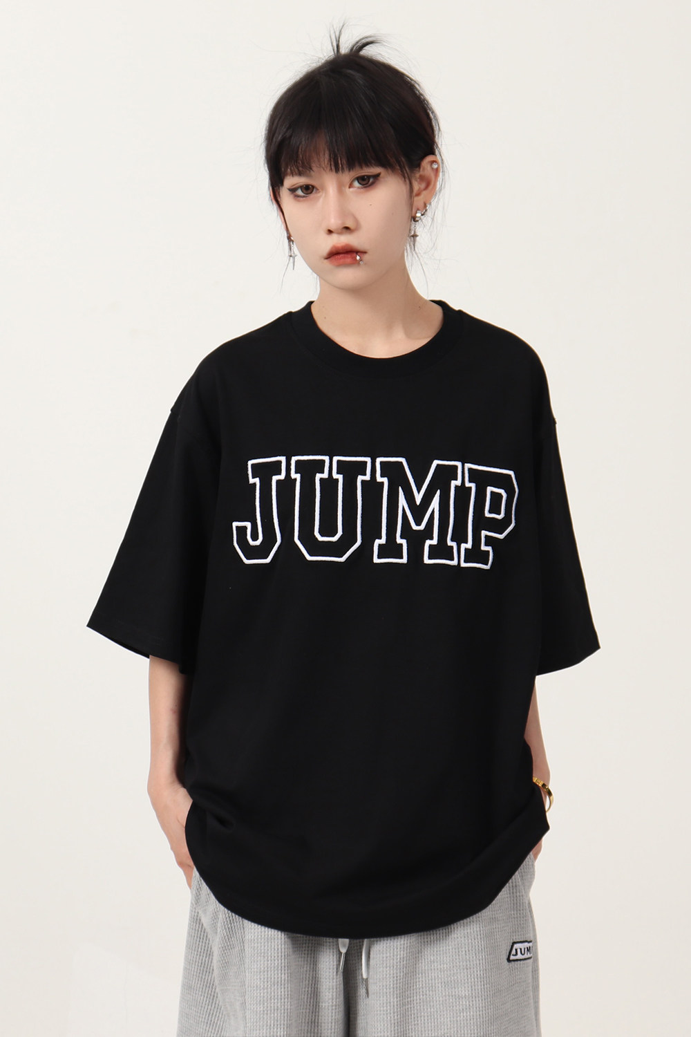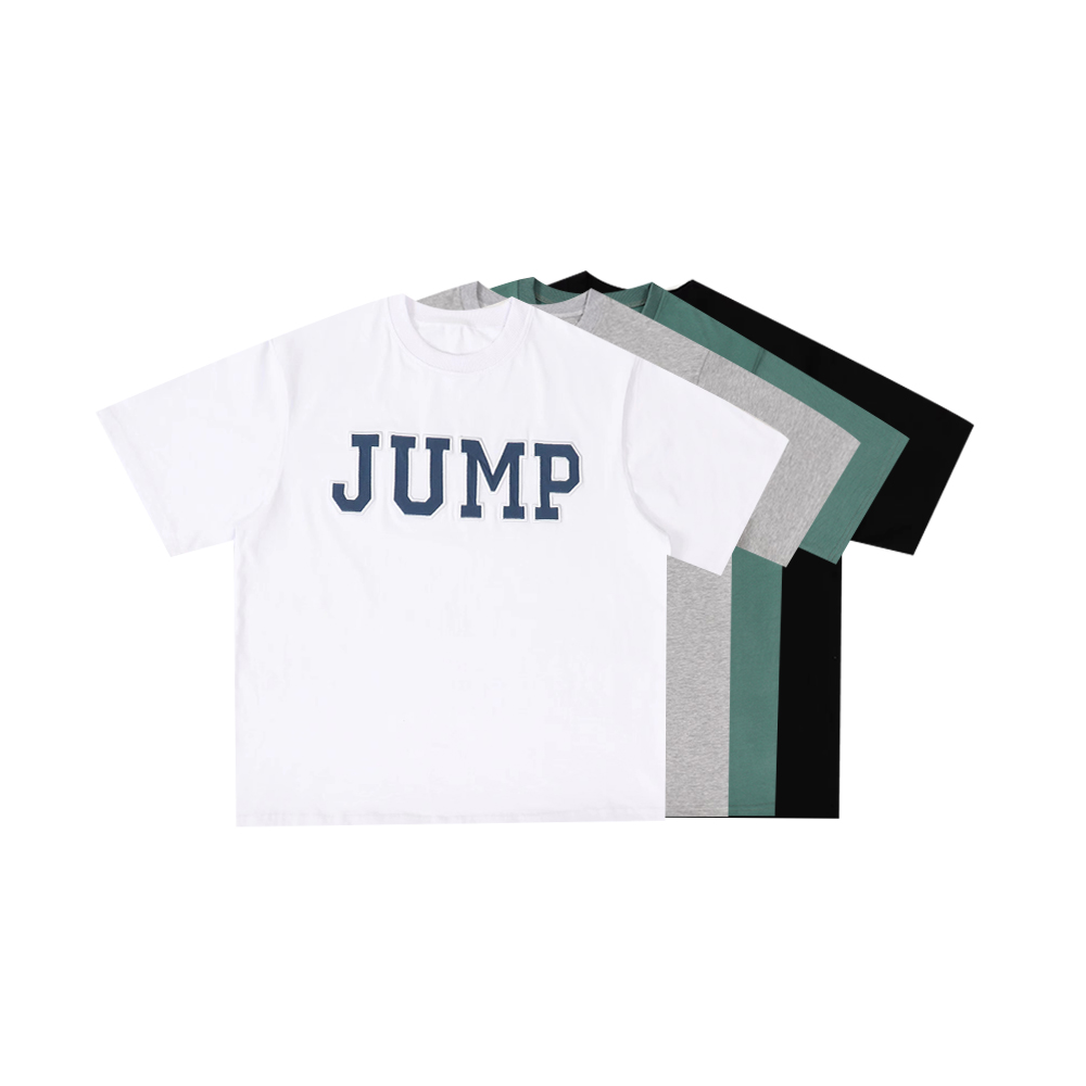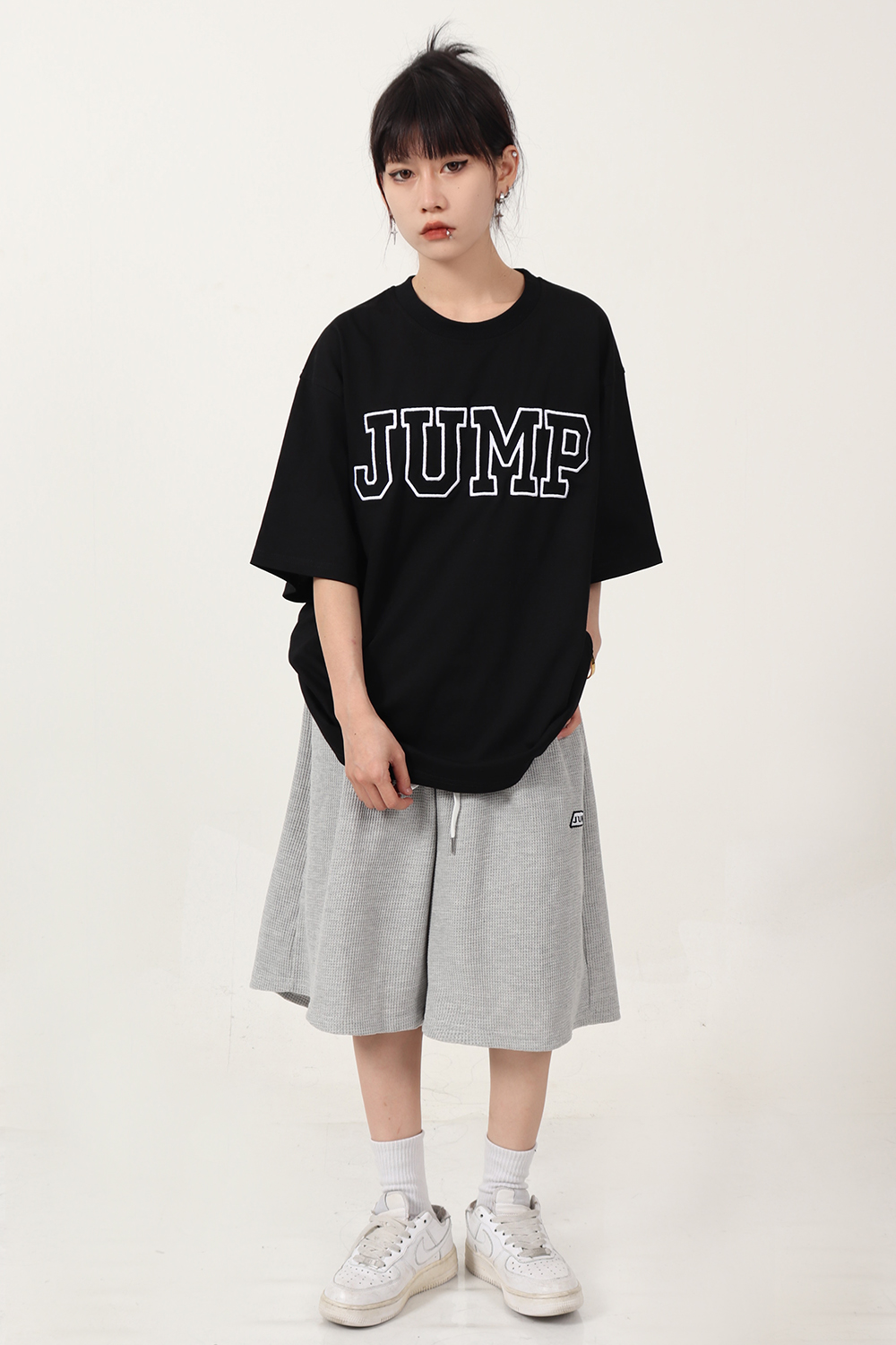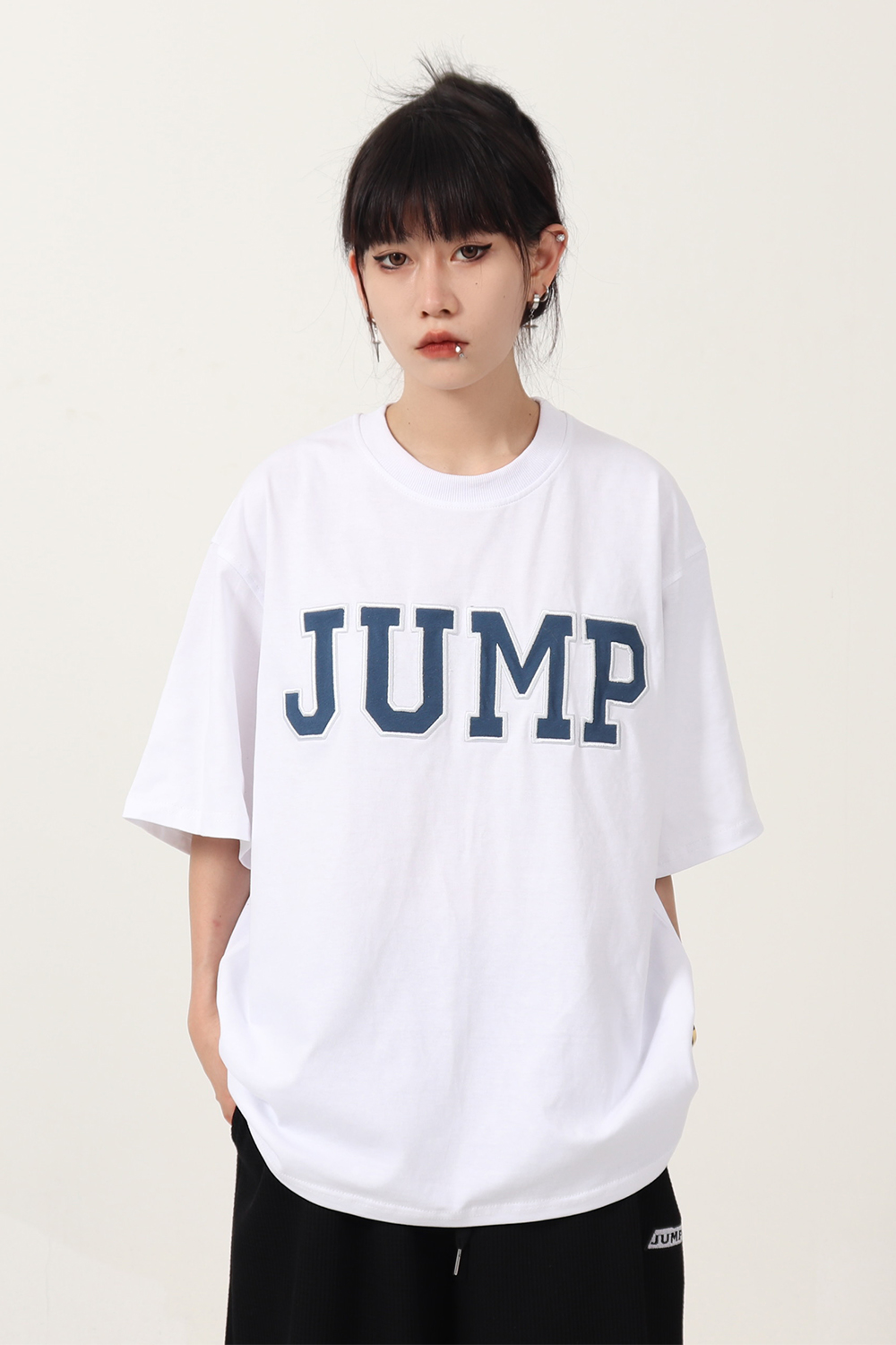 JUMP NEXT 國潮牌情侶街頭嘻哈寬鬆四色大LOGO布貼繡短袖夏季潮
