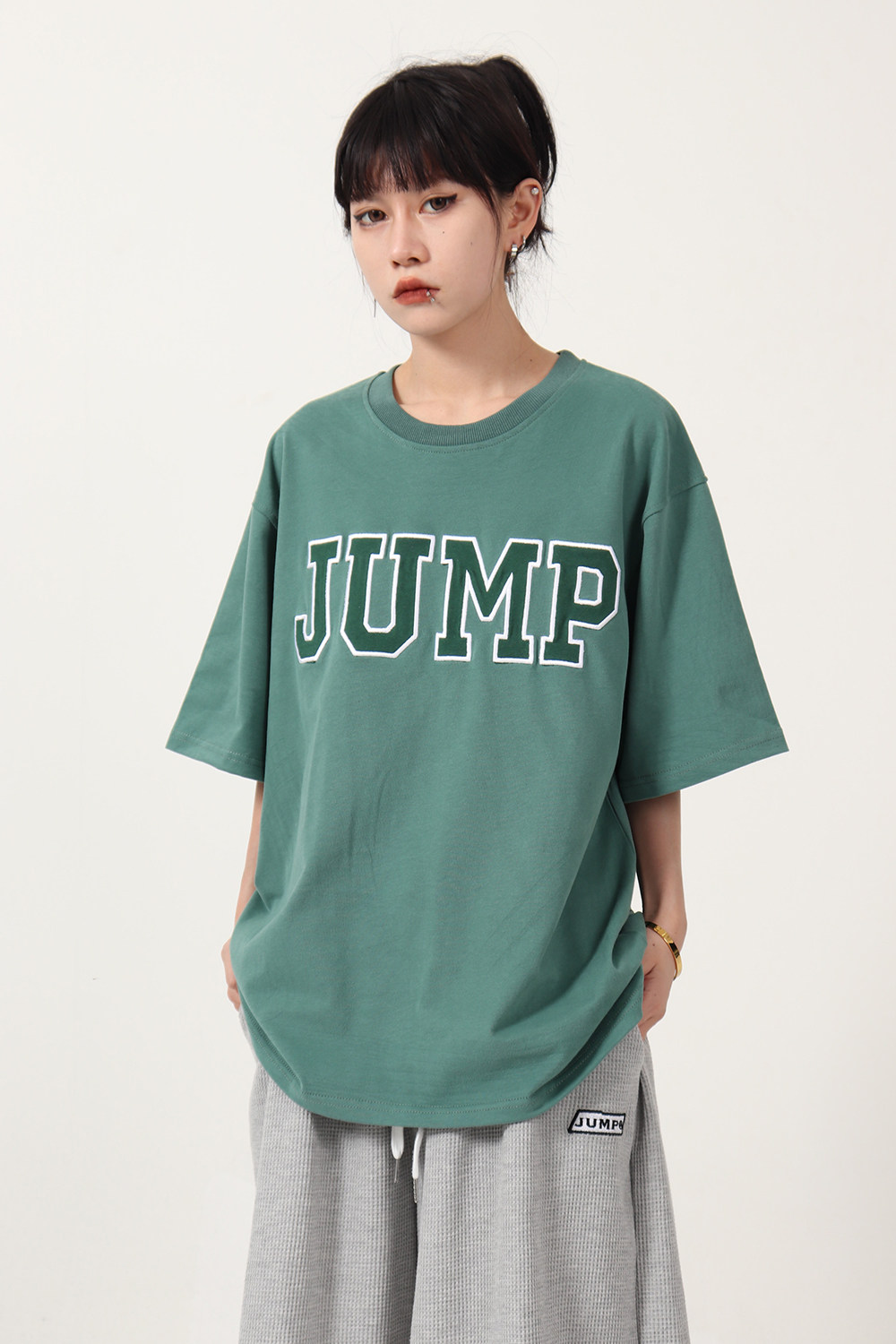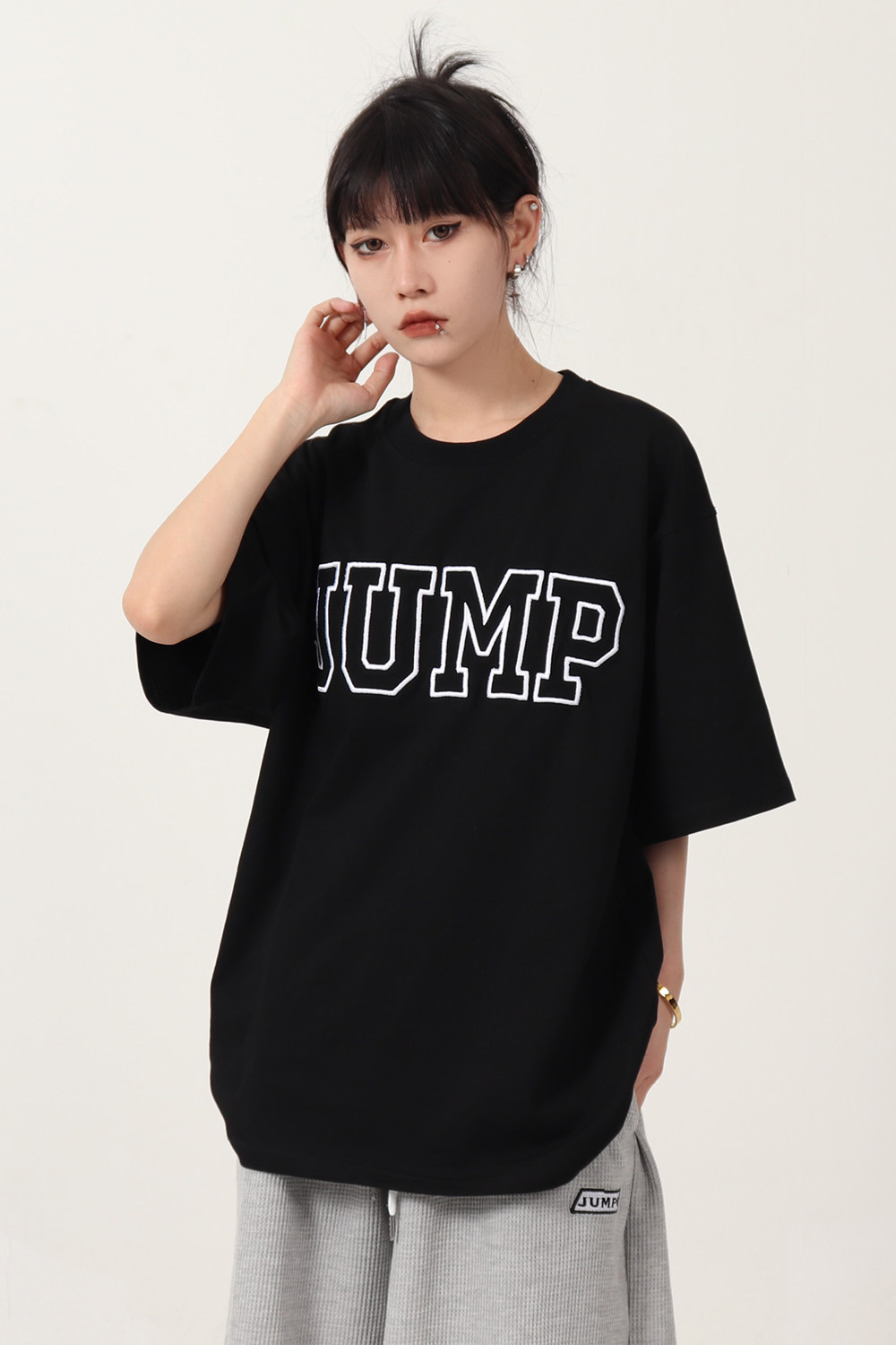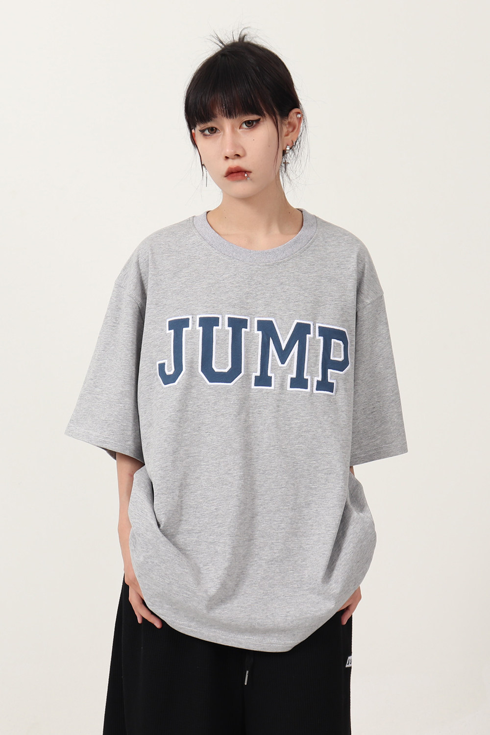 JUMP NEXT 國潮牌情侶街頭嘻哈寬鬆四色大LOGO布貼繡短袖夏季潮