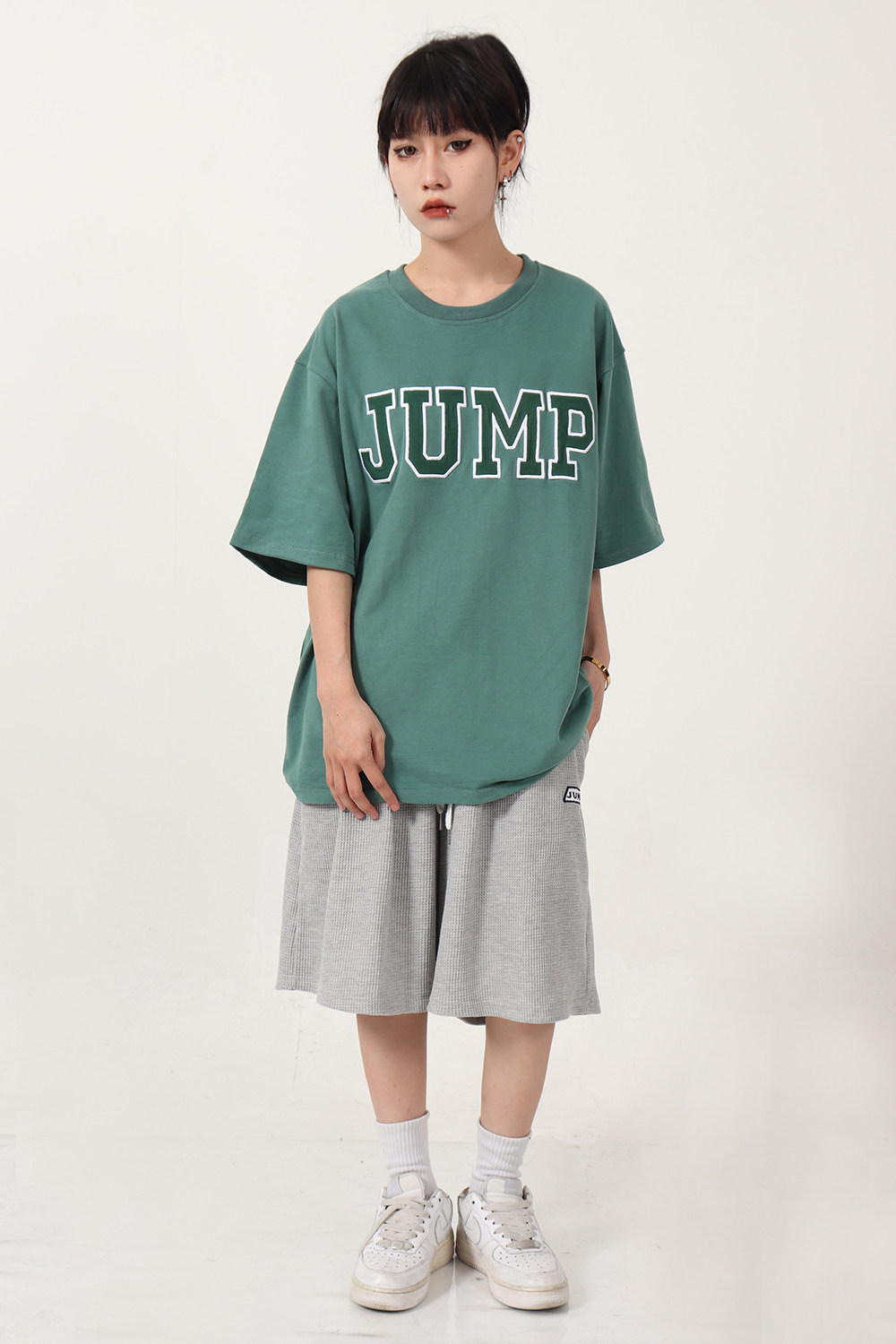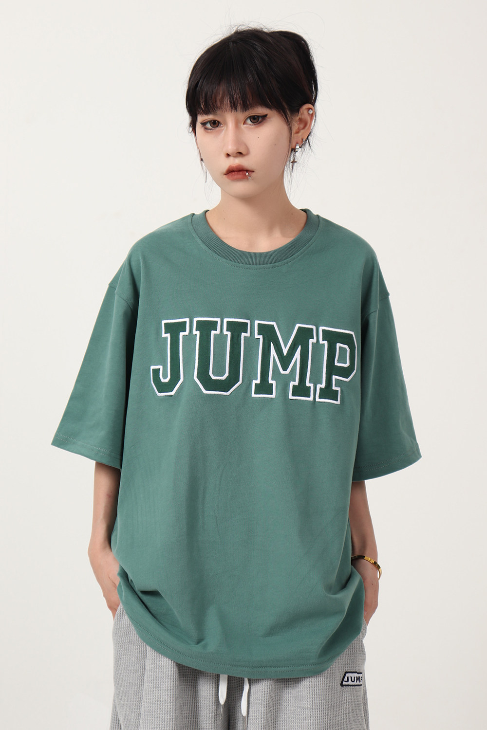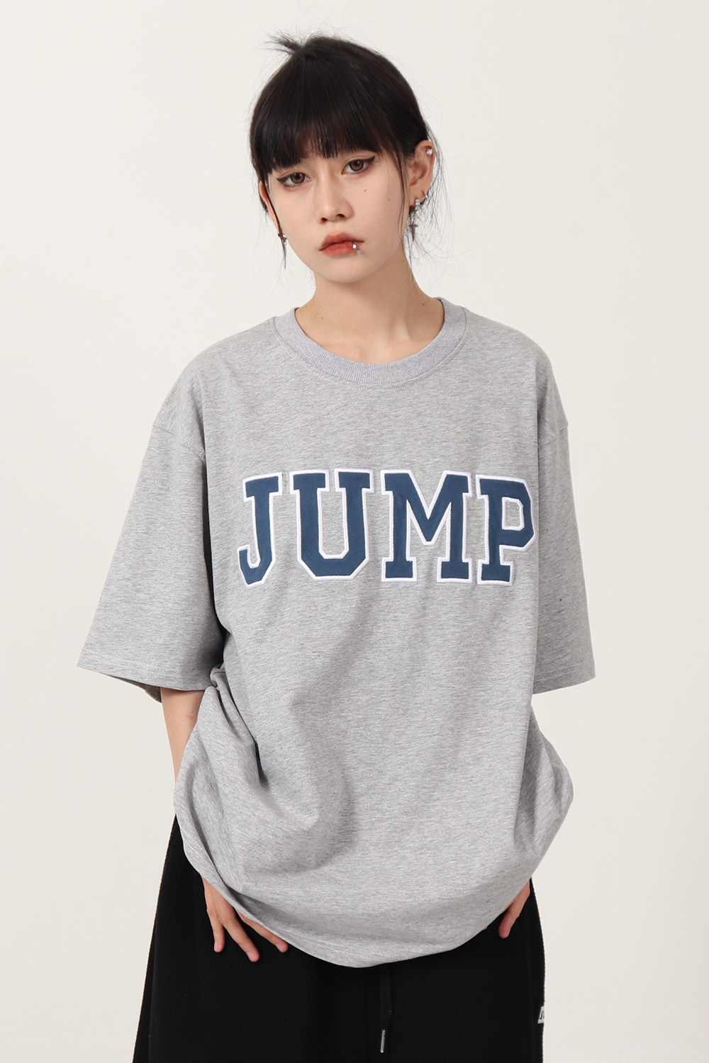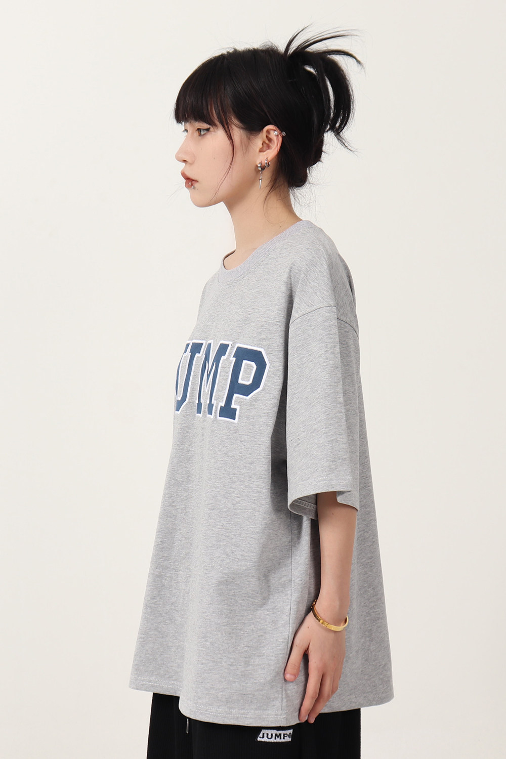 JUMP NEXT 國潮牌情侶街頭嘻哈寬鬆四色大LOGO布貼繡短袖夏季潮