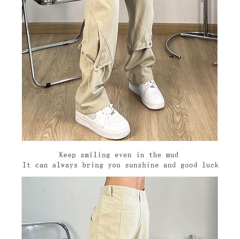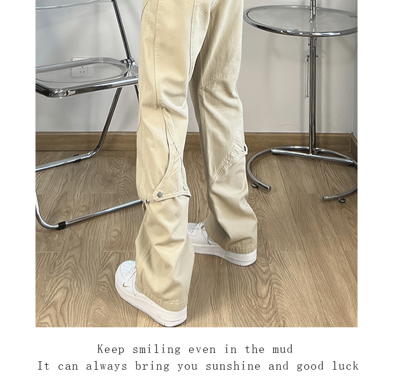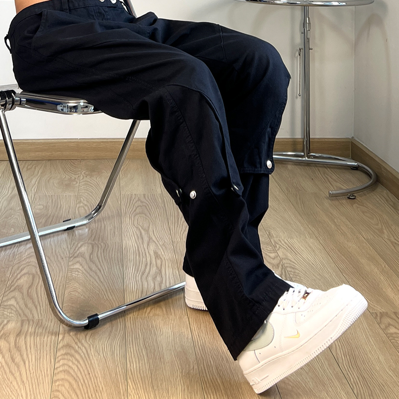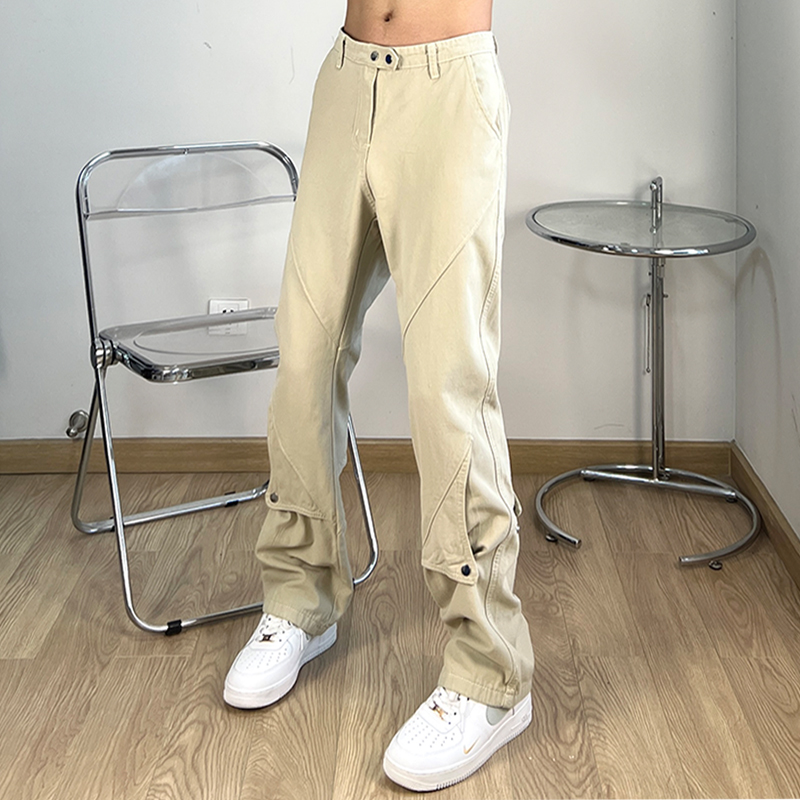 FILFR國潮高街鈕釦設計感工裝褲男微喇叭顯瘦ins潮牌直筒vibe褲子