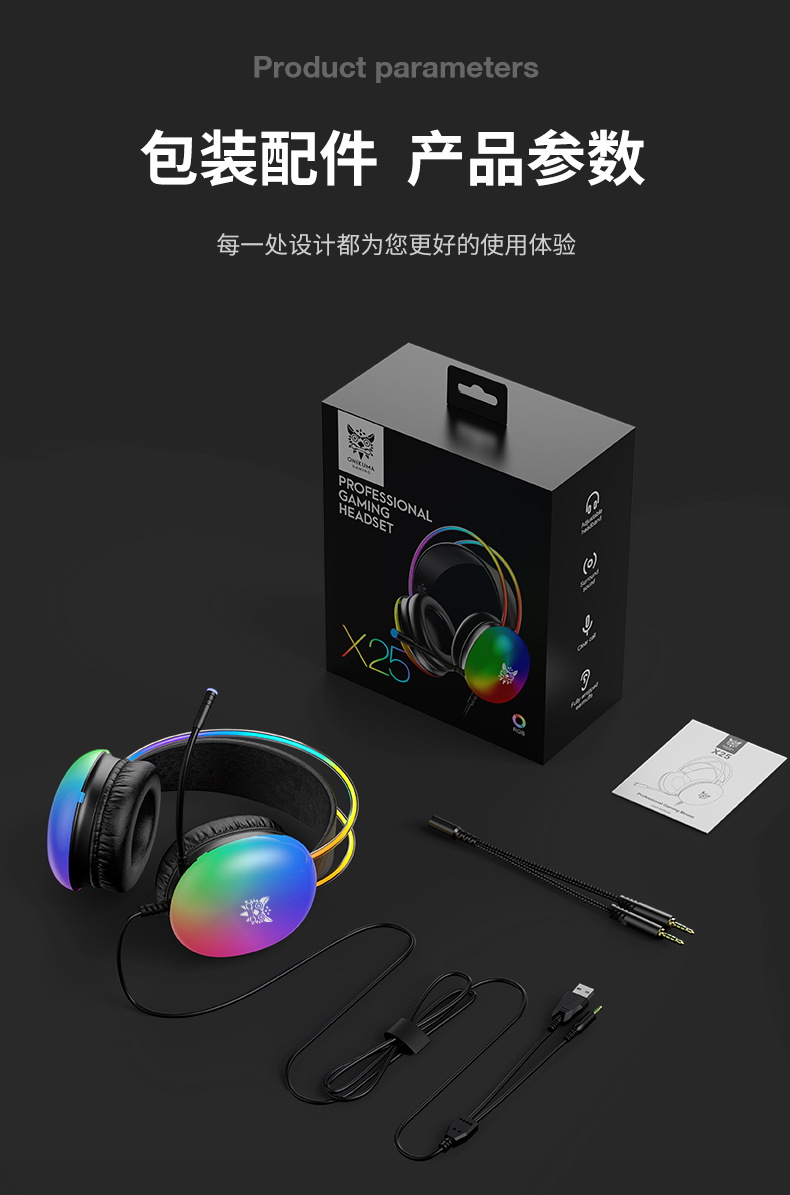 包装清单 x27游戏耳机*1,说明书*1,一分二转接线*1