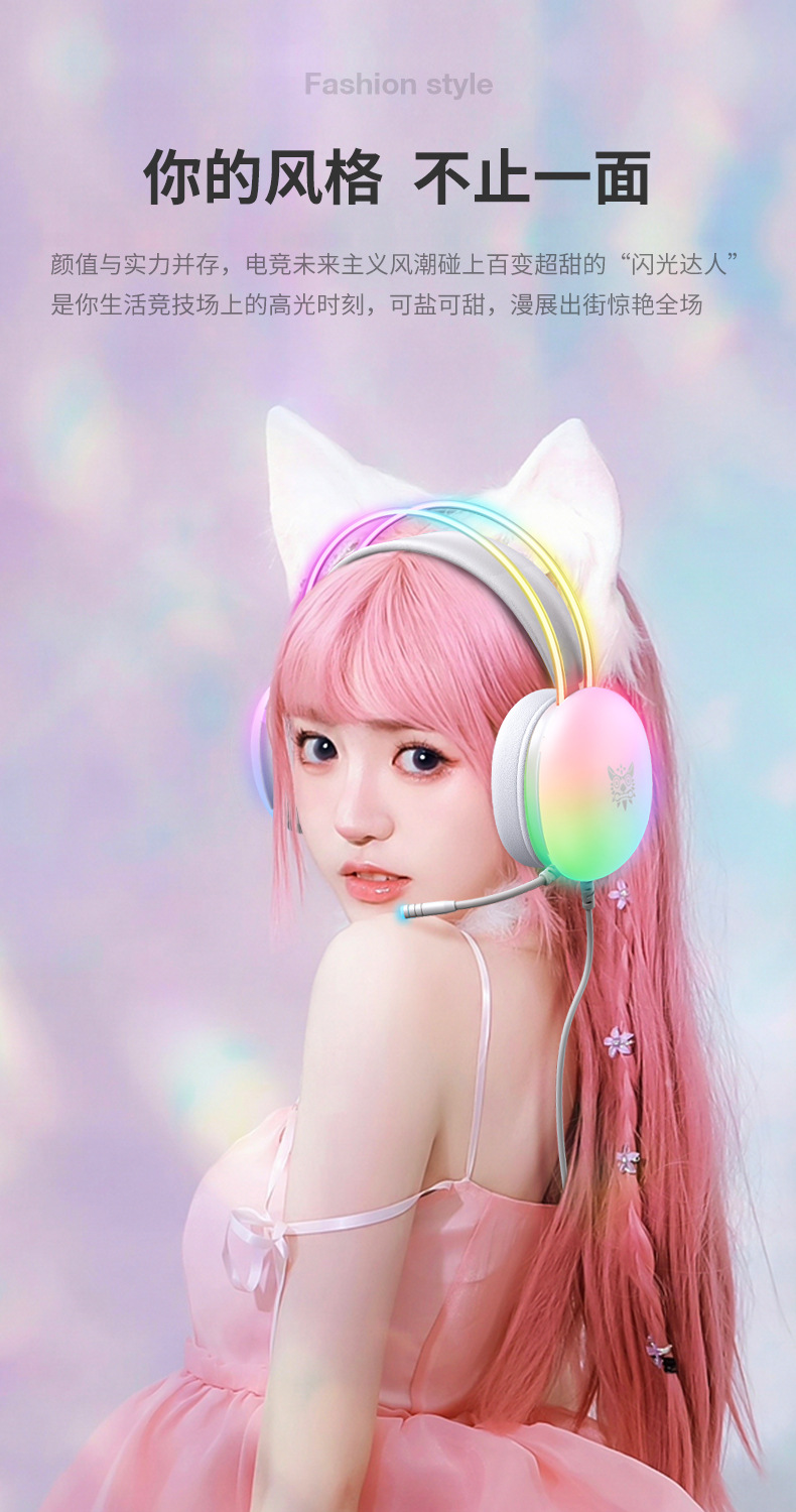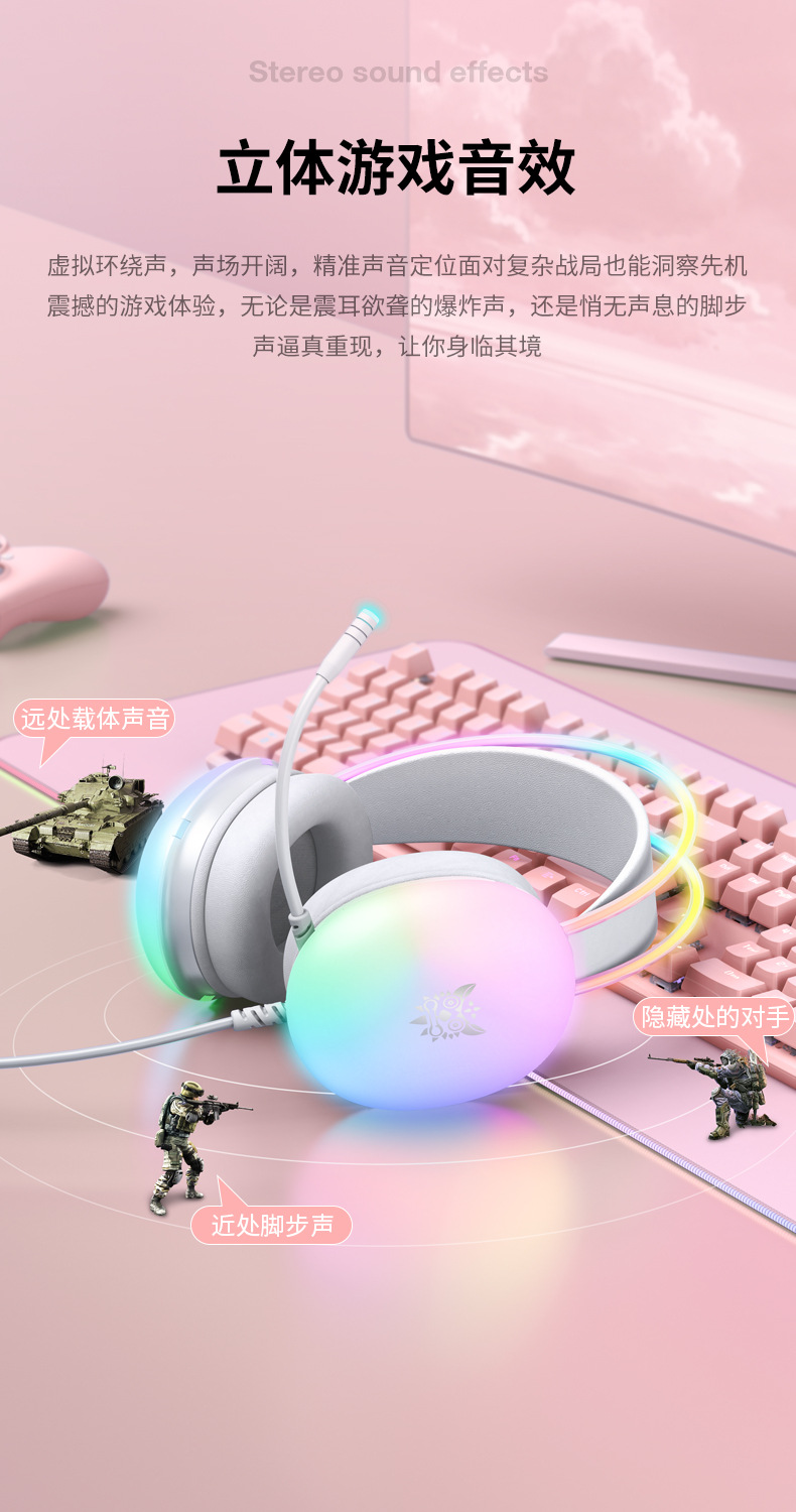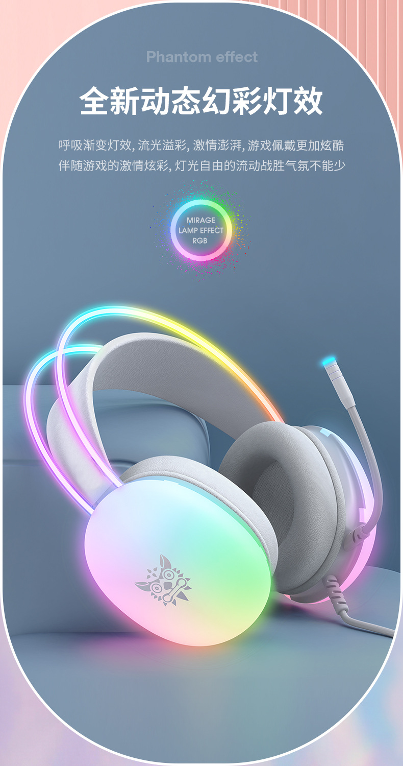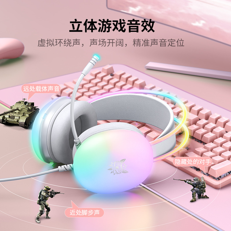 新款跨境X25渐变动态灯效头戴式电竞吃鸡少女耳麦电脑游戏耳机