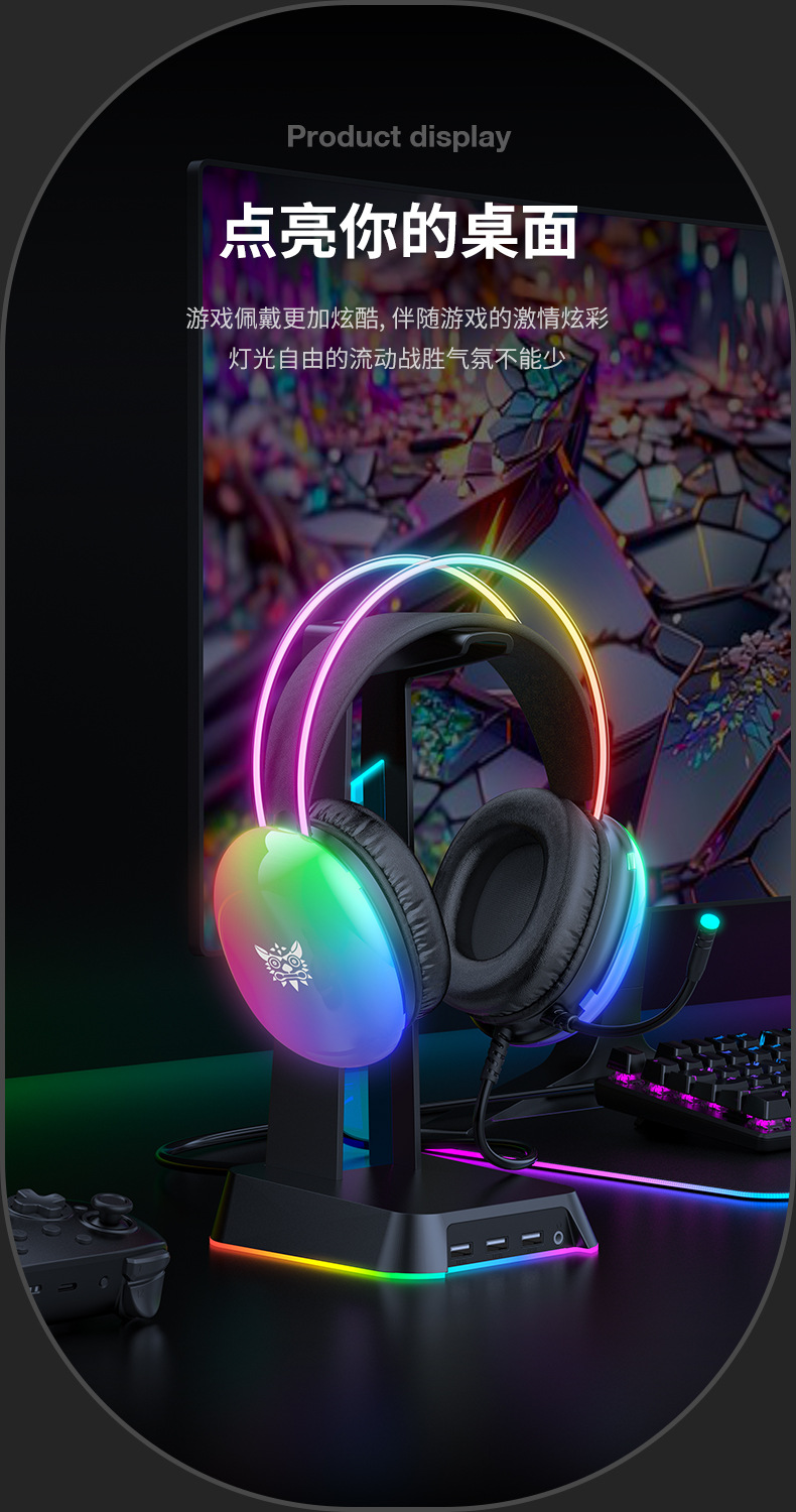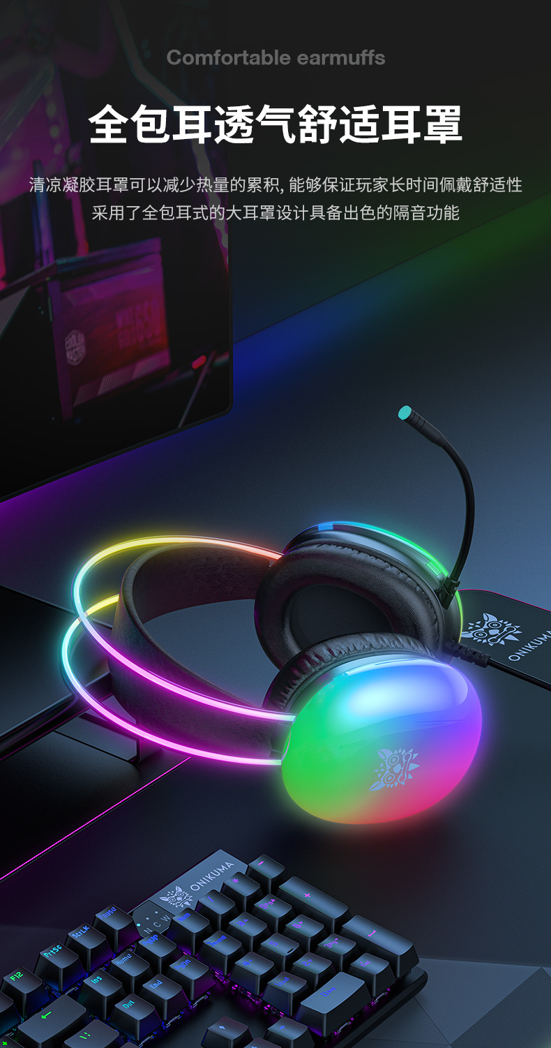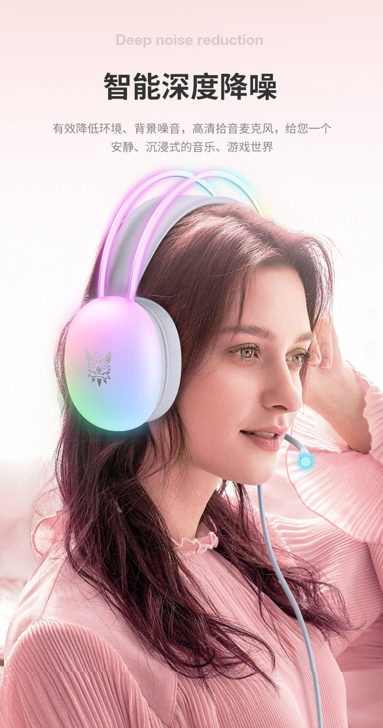 新款跨境X25渐变动态灯效头戴式电竞吃鸡少女耳麦电脑游戏耳机