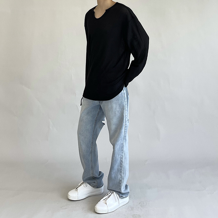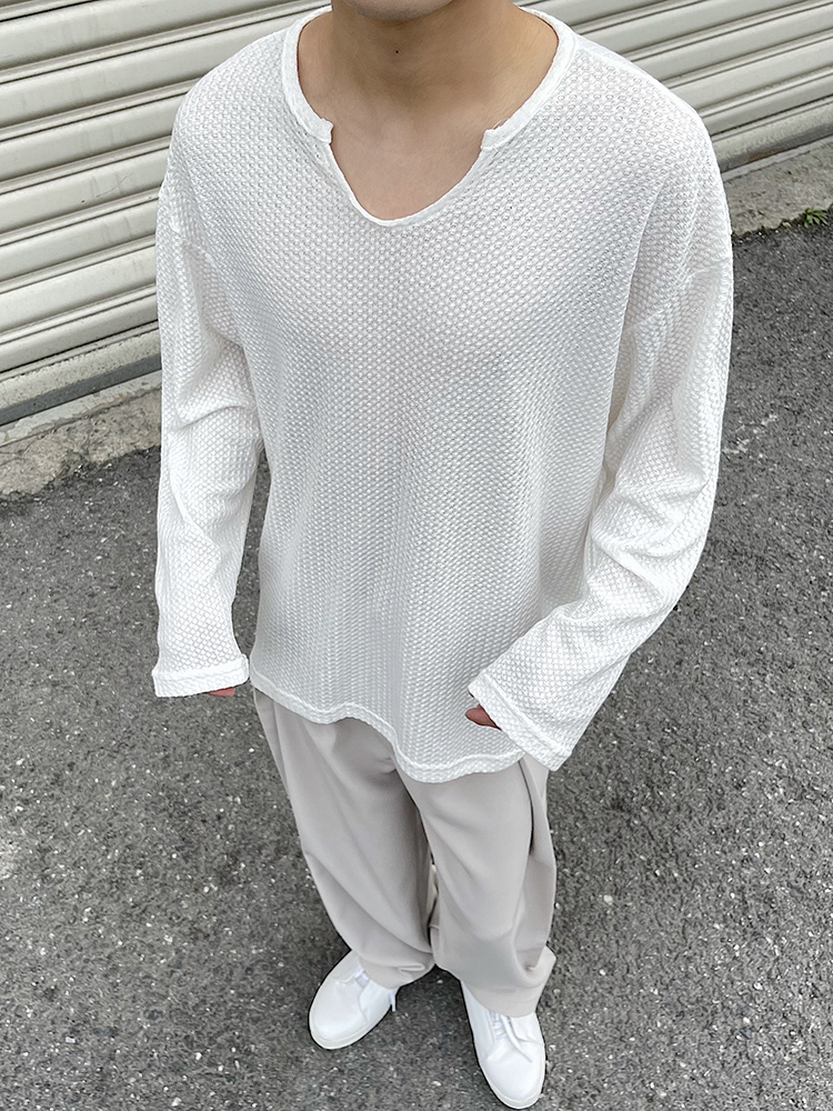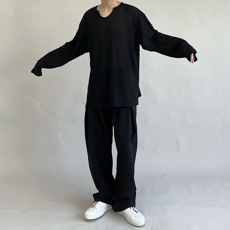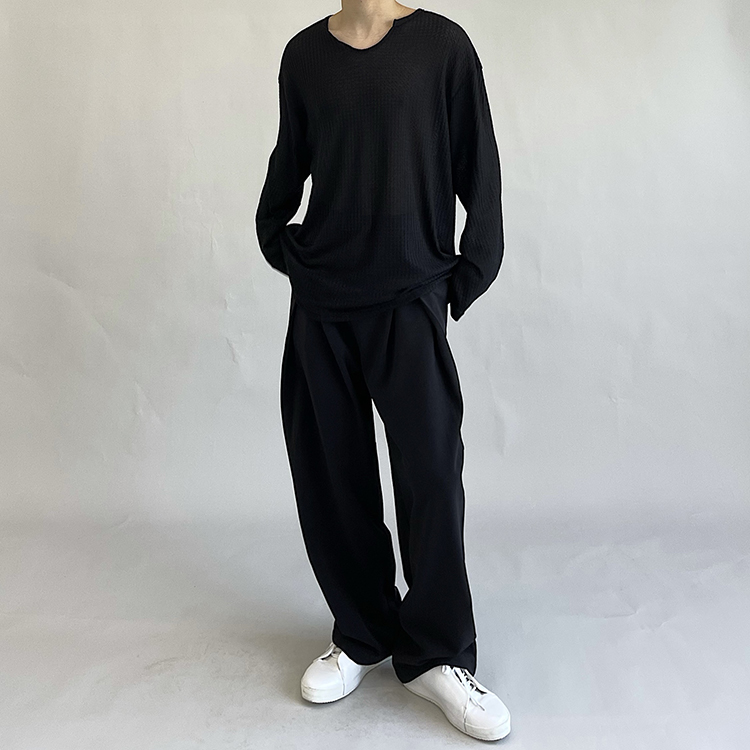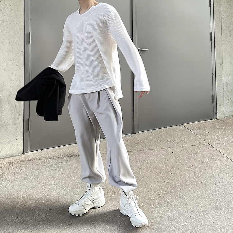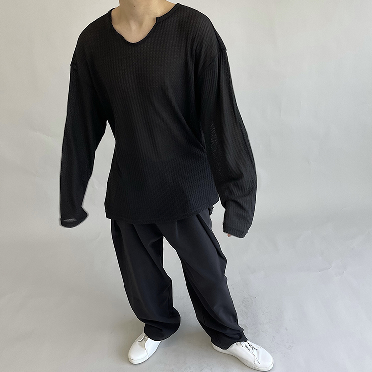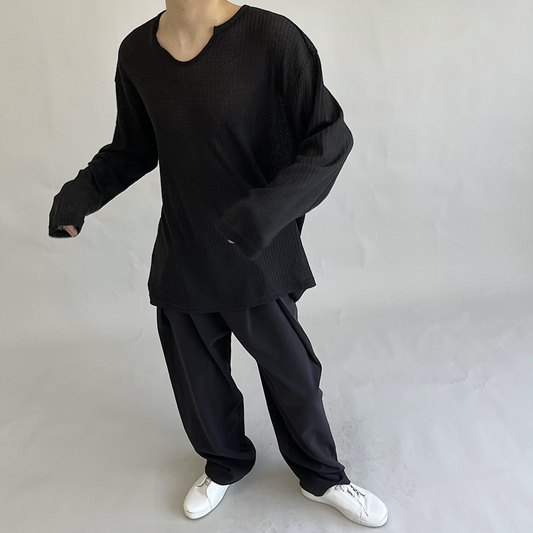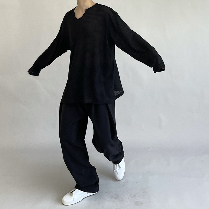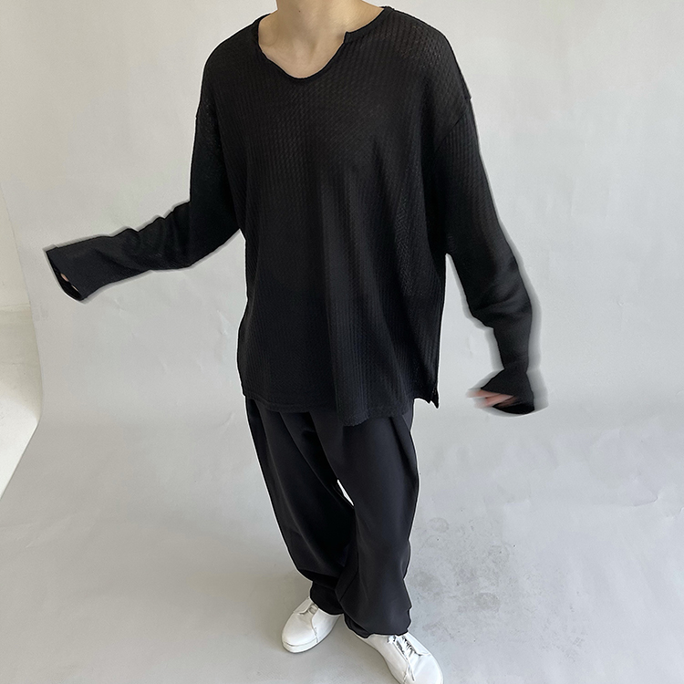 油膩客禁慾系慵懶風長袖T恤男高級感防曬小眾韓版純色套頭打底衫