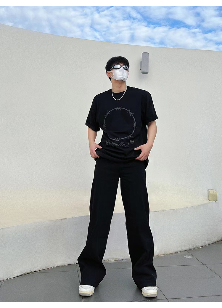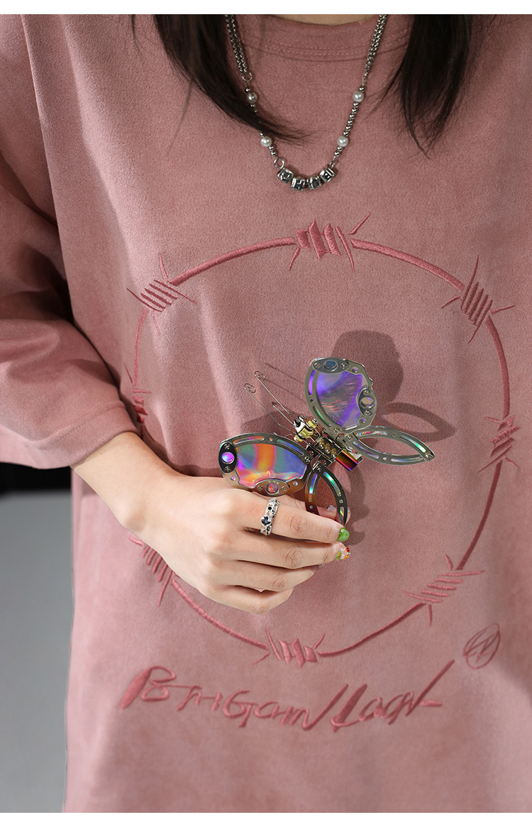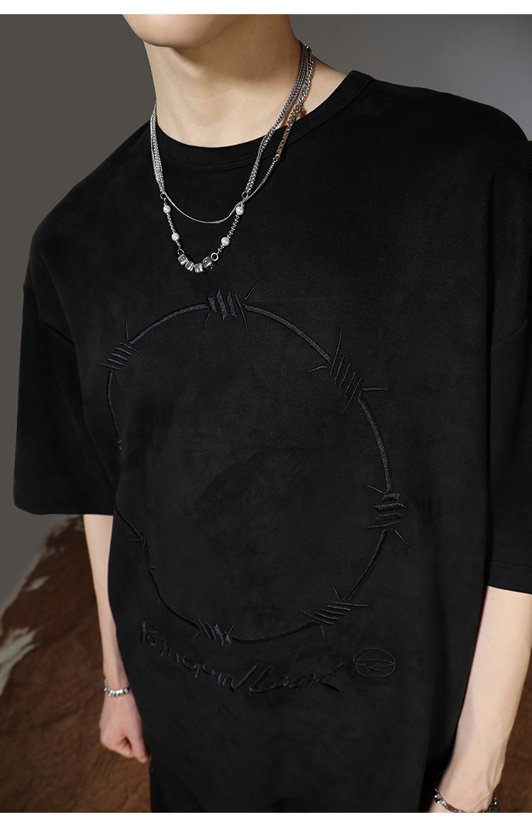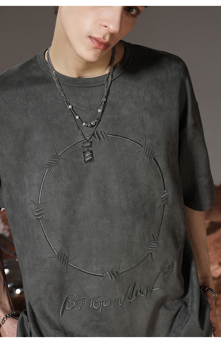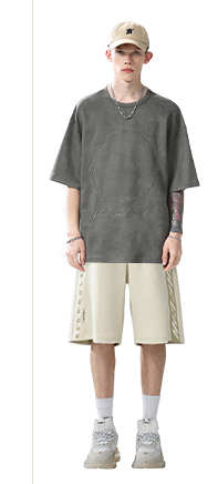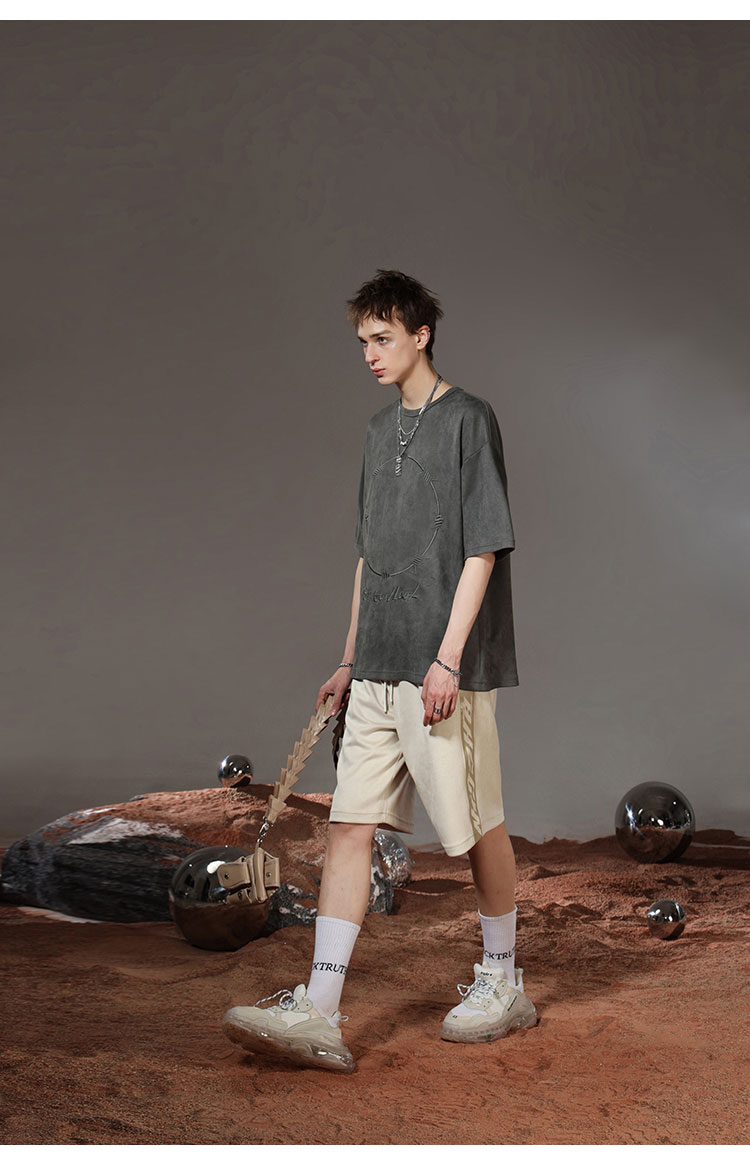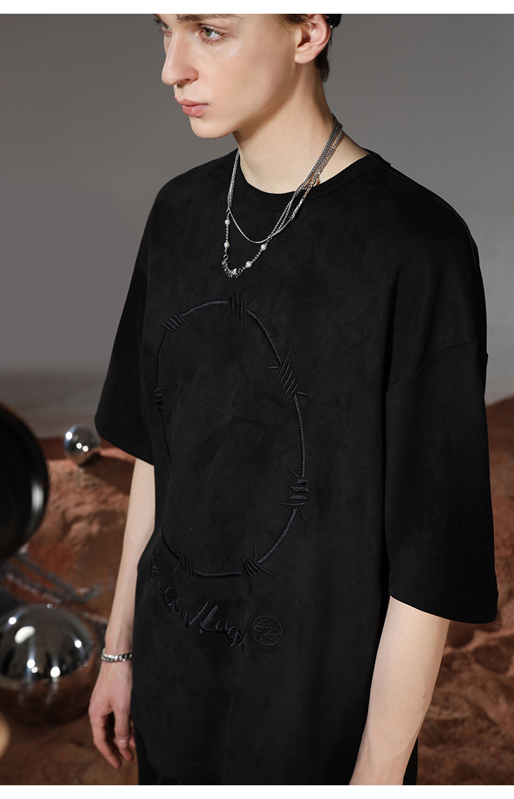 BJHG2023新款夏粉色麂皮短袖T恤男女美式OVERSIZE情侶半截袖上衣
