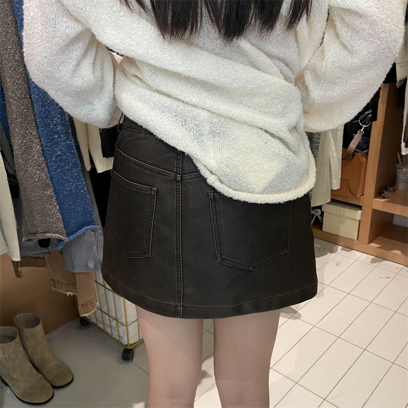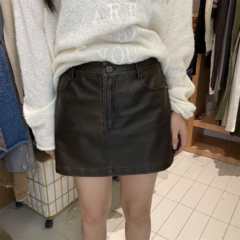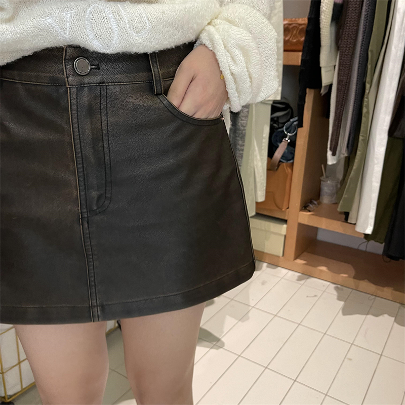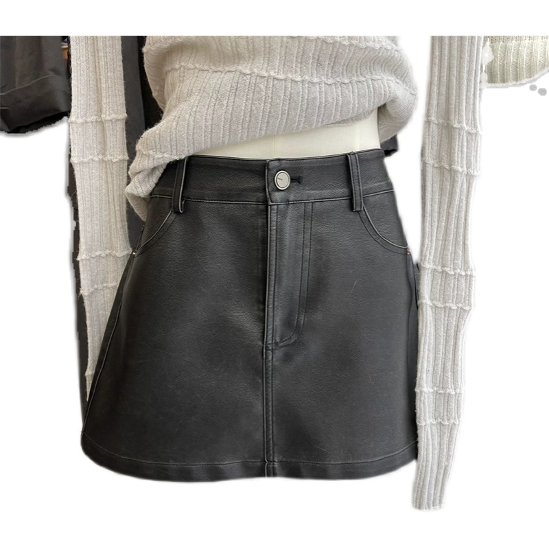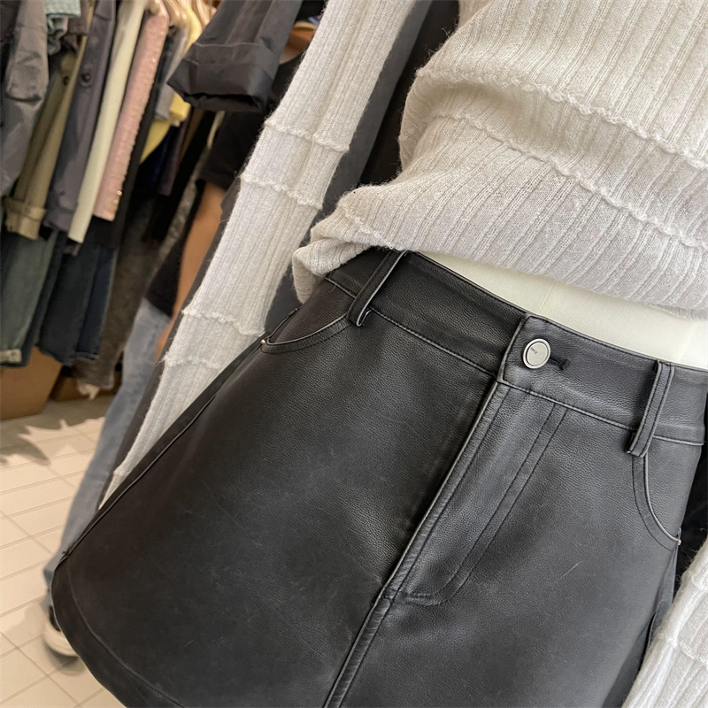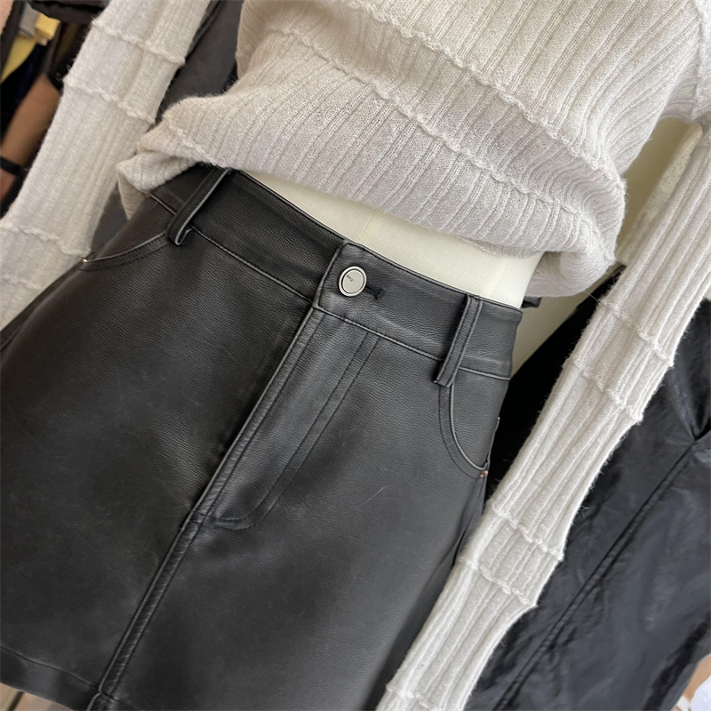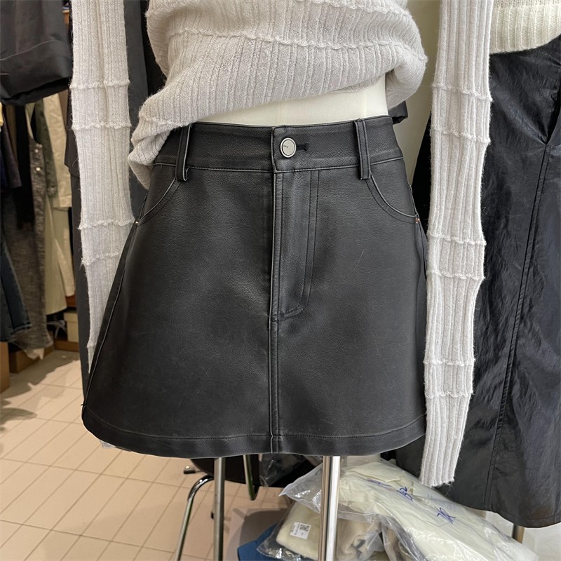 高級感簡約高腰半身皮裙2023早秋新款寬鬆顯瘦防走光百搭包臀短裙