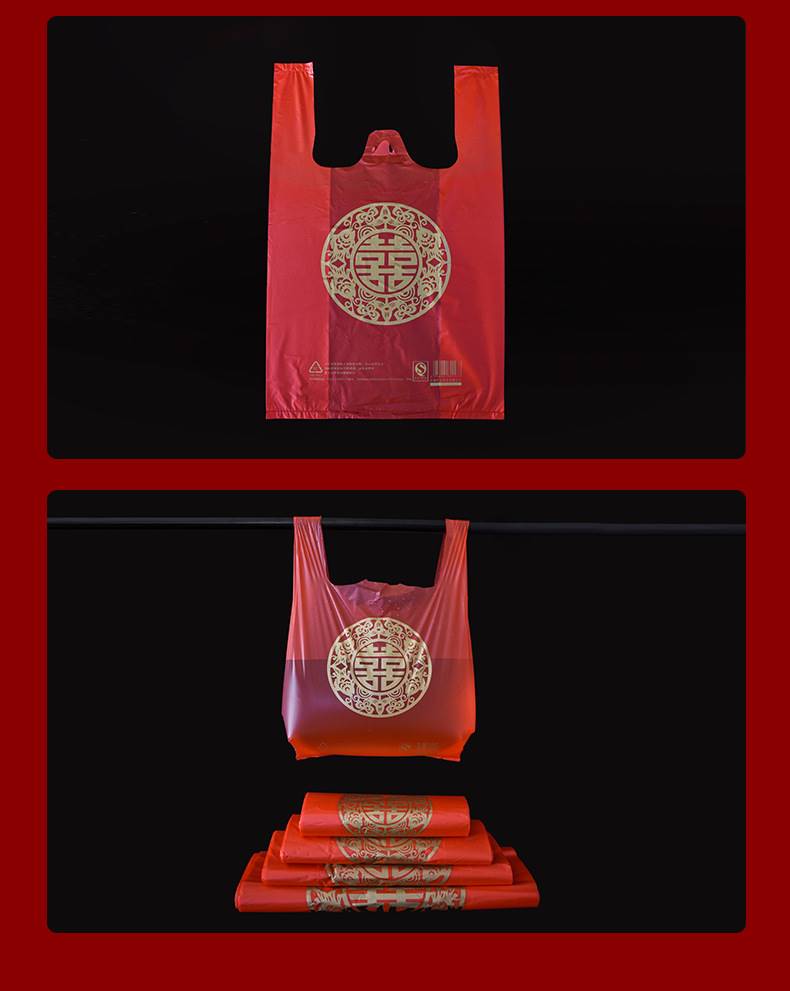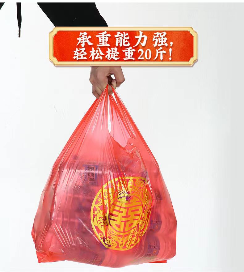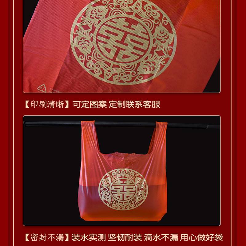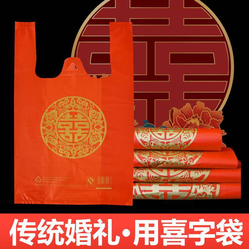 9URT批发喜字塑料袋红色结婚婚庆大号手提方便袋喜事鱼纹袋袋子喜