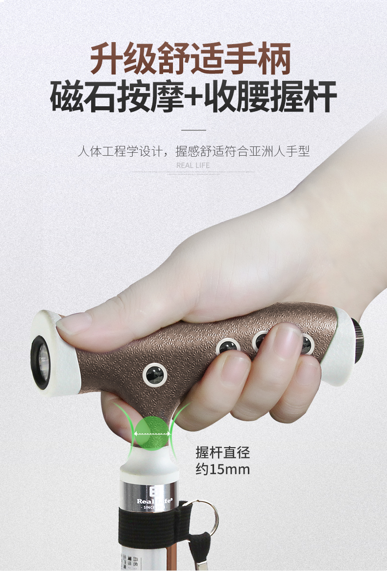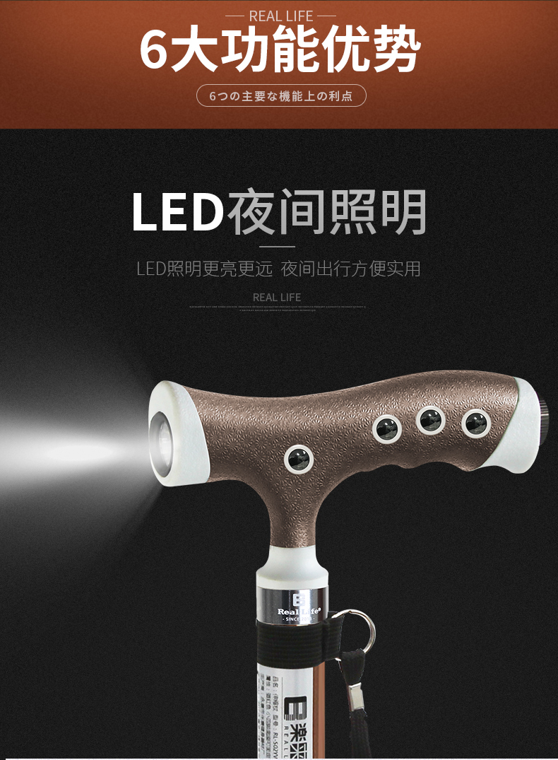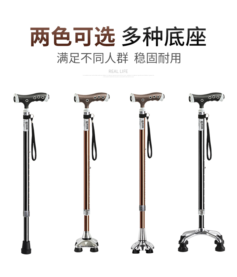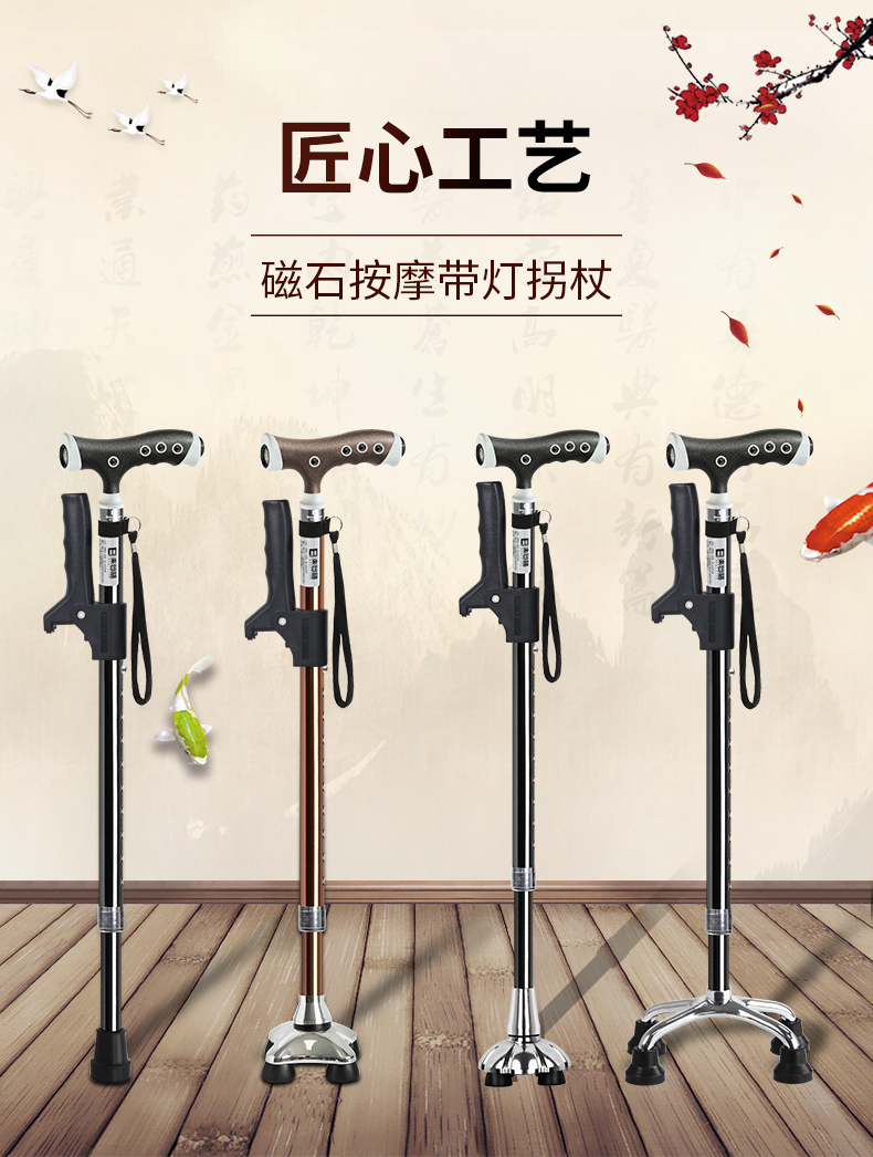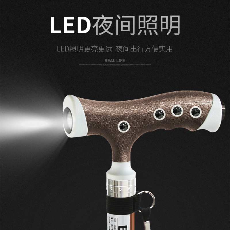 日本樂來福鋁合金四腳柺杖老人防滑輕便按摩手杖伸縮拐扙帶燈柺棍