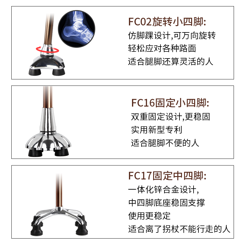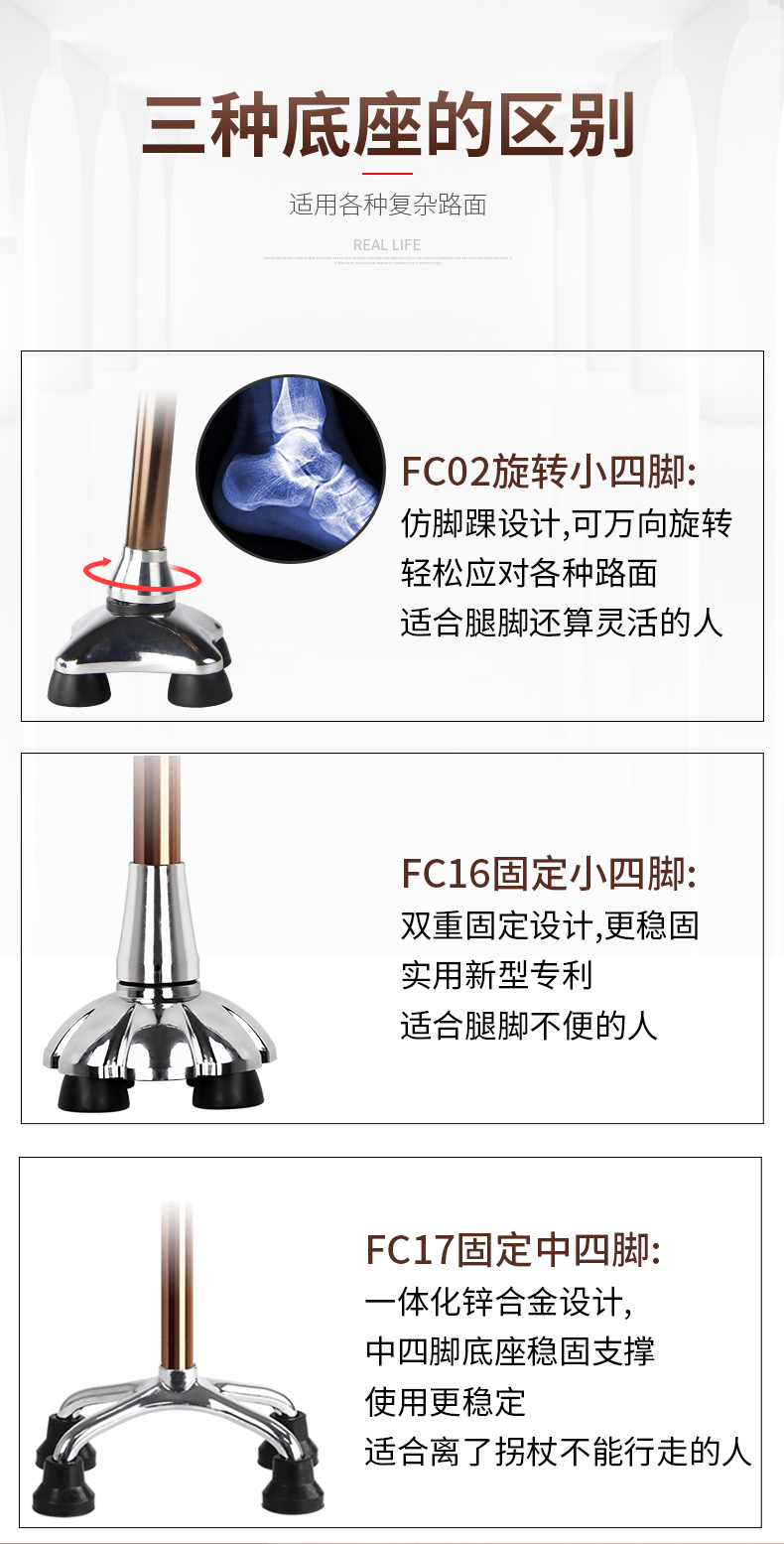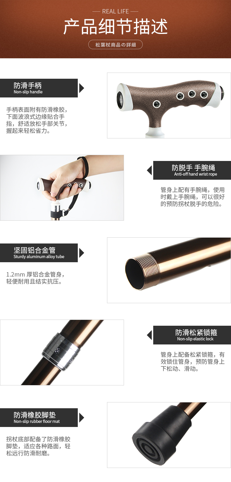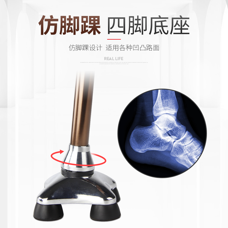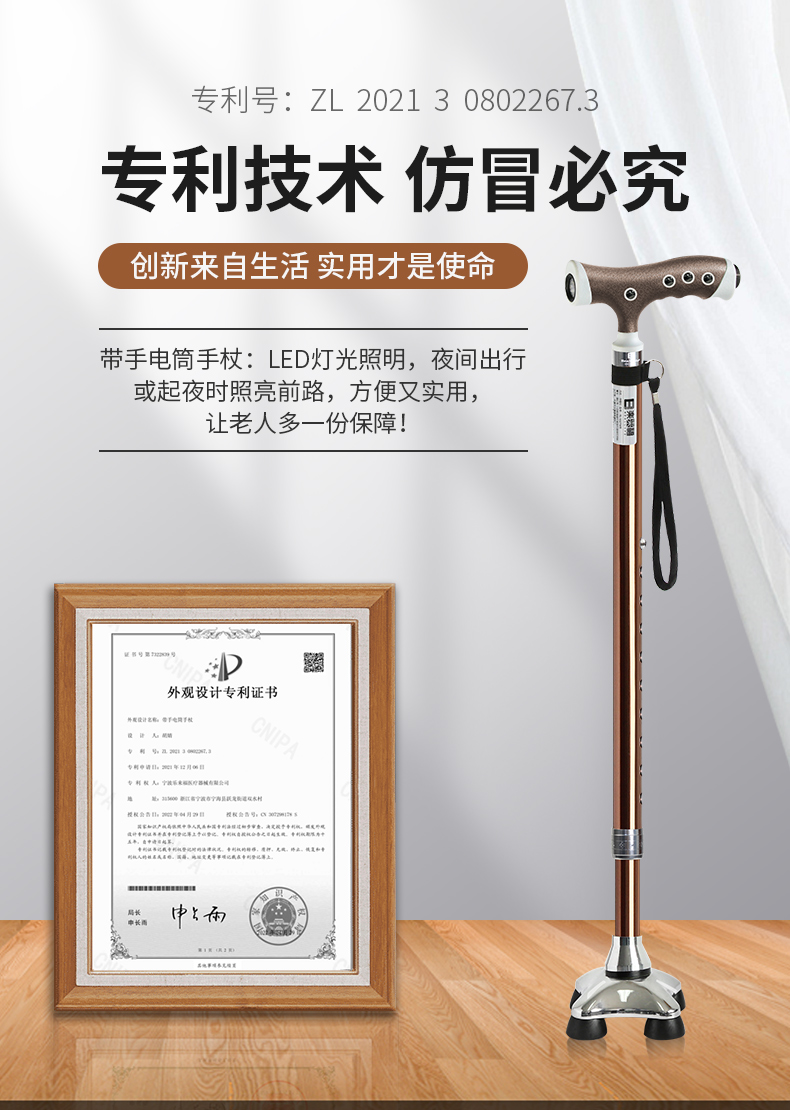 日本樂來福鋁合金四腳柺杖老人防滑輕便按摩手杖伸縮拐扙帶燈柺棍