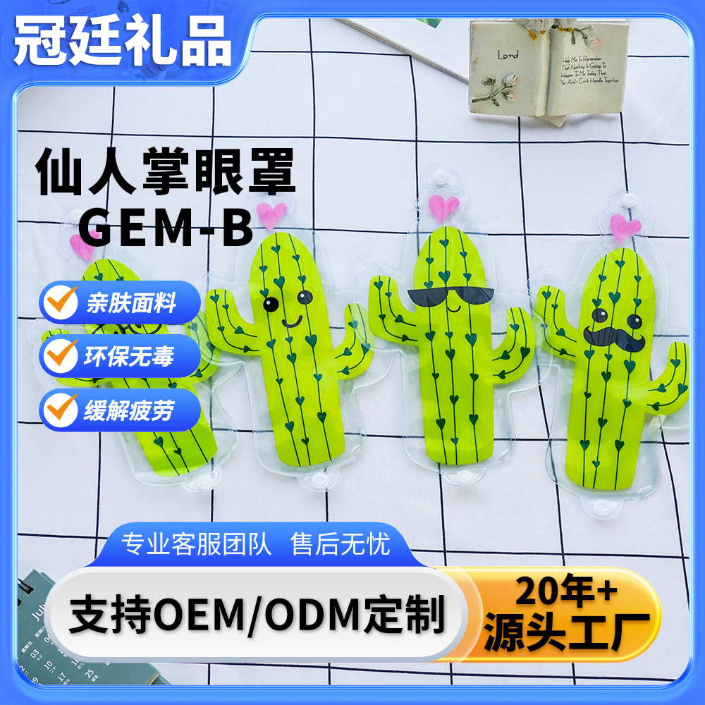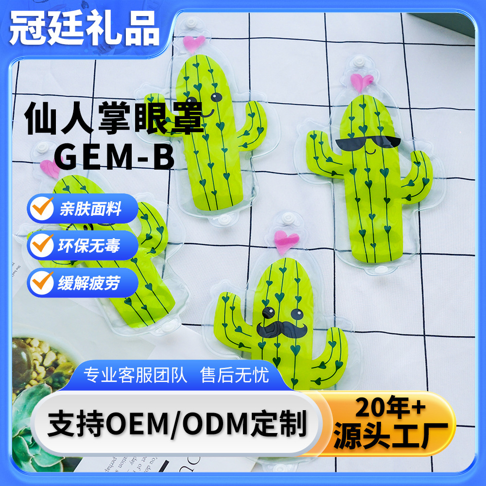 可爱仙人掌卡通冰敷眼罩,配备橡皮筋