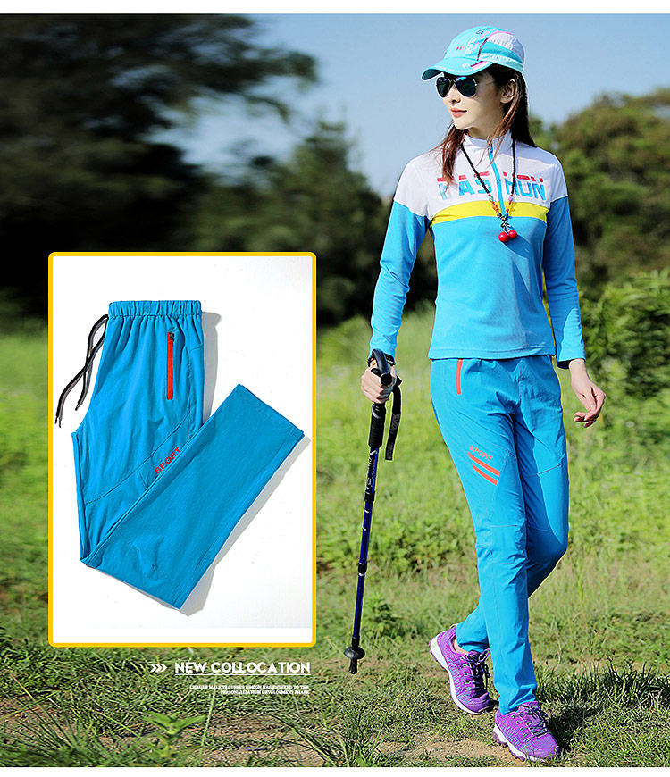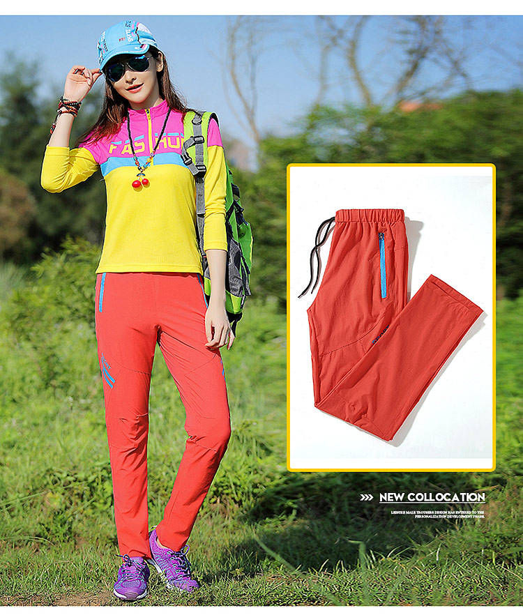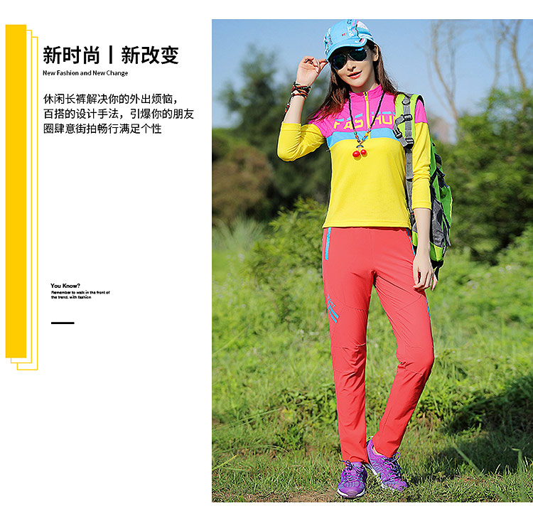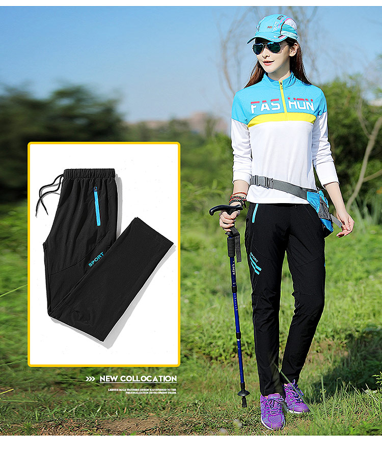 戶外速乾衣褲透氣女薄款彈力速乾長褲春夏大尺碼徒步運動登山褲吸汗