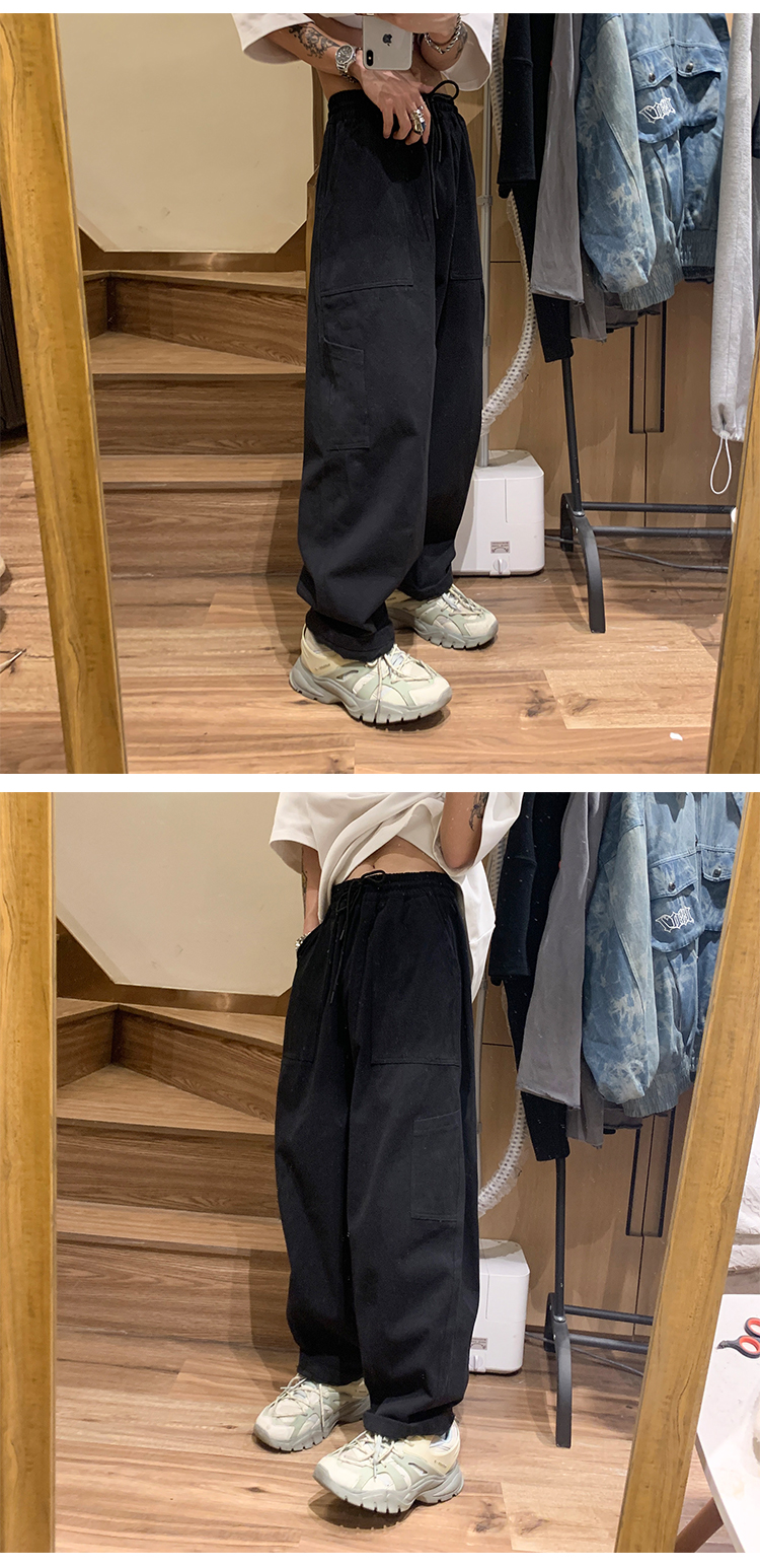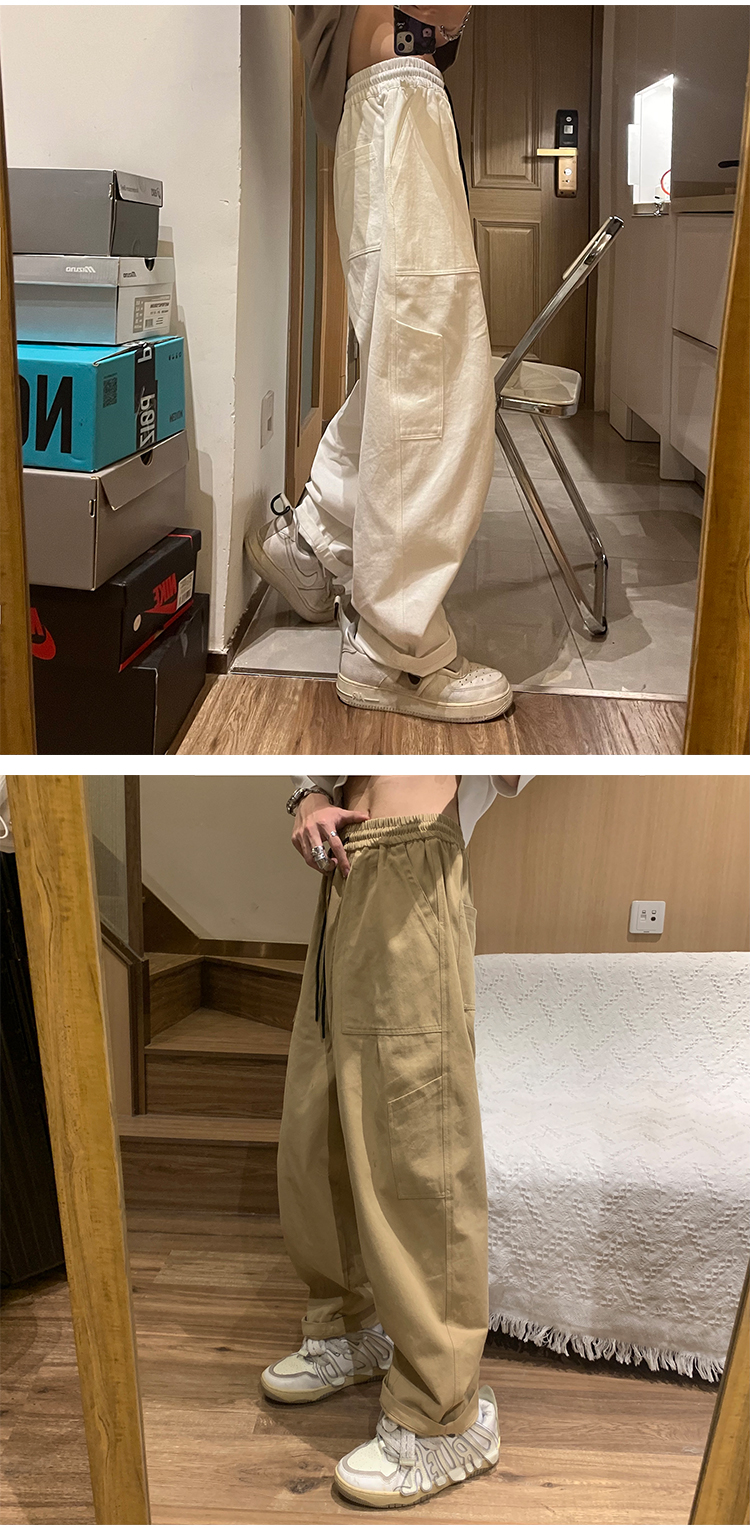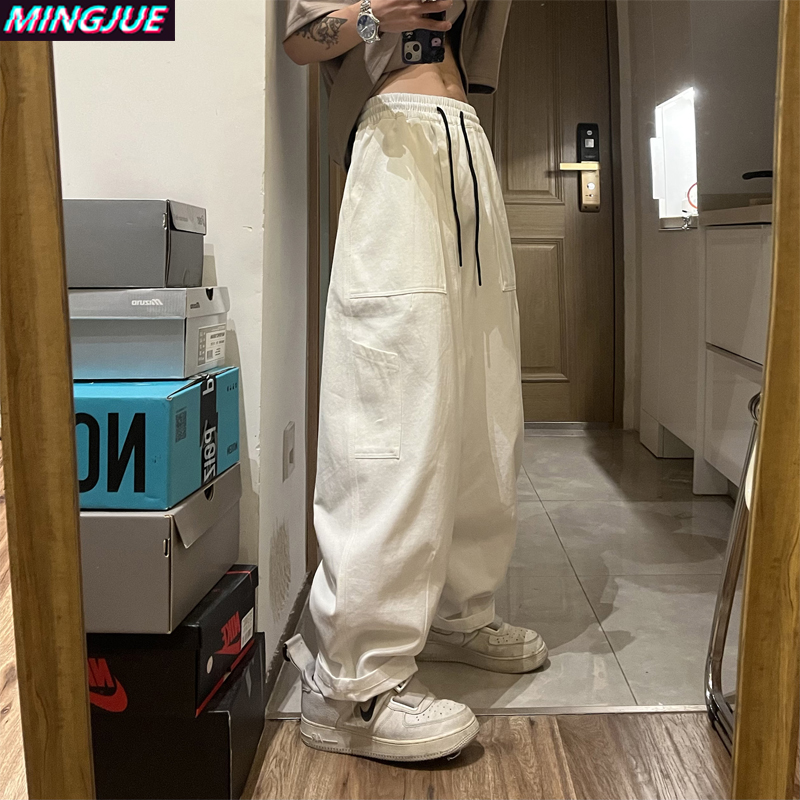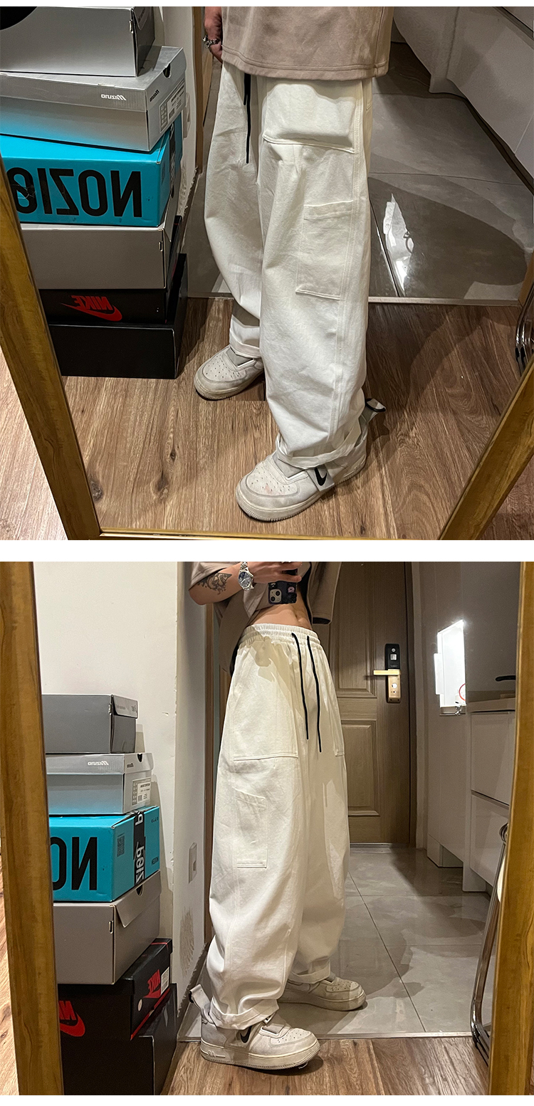 白色工裝褲女款春秋季原創高街美式褲子oversize設計感直筒休閒褲