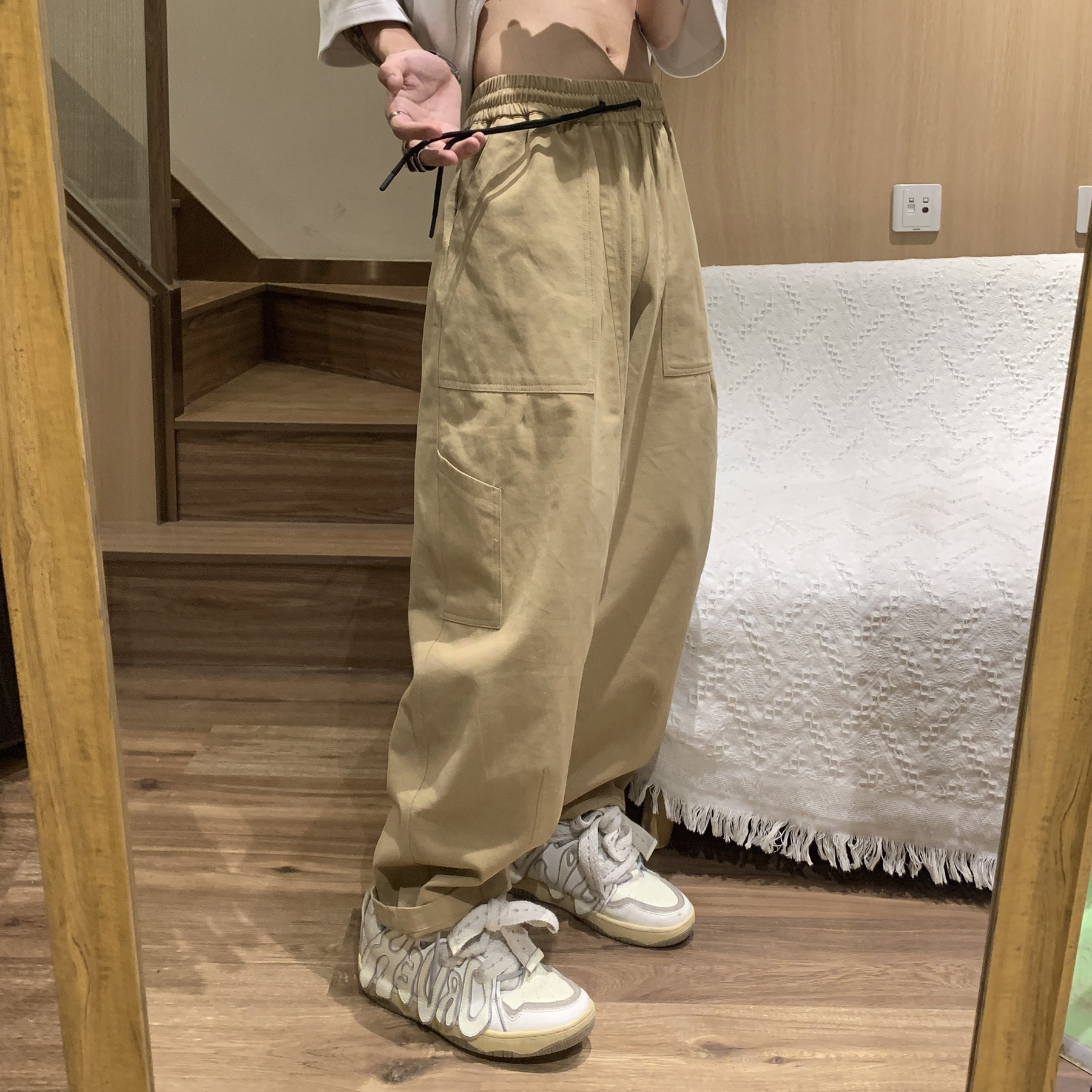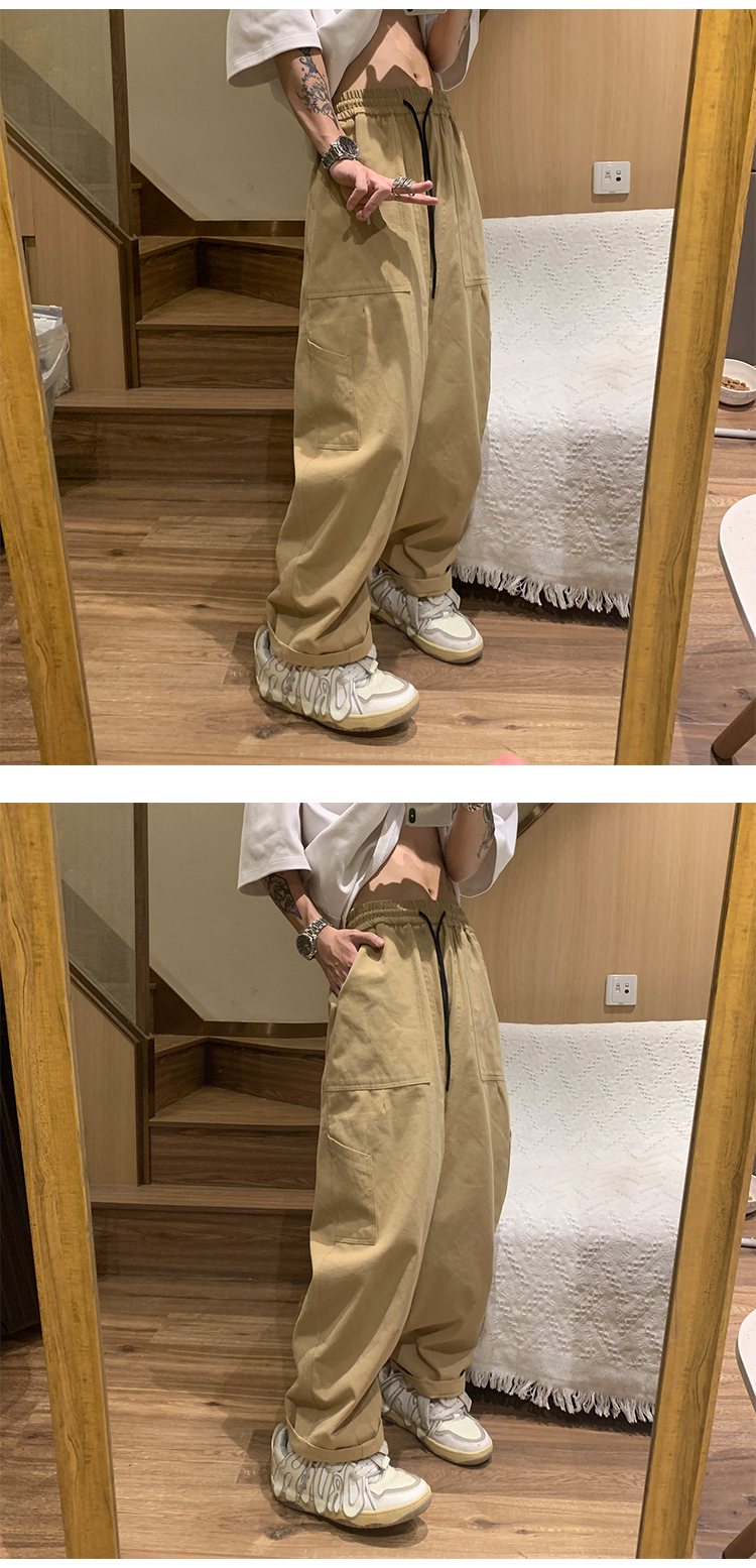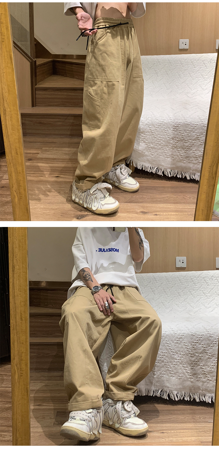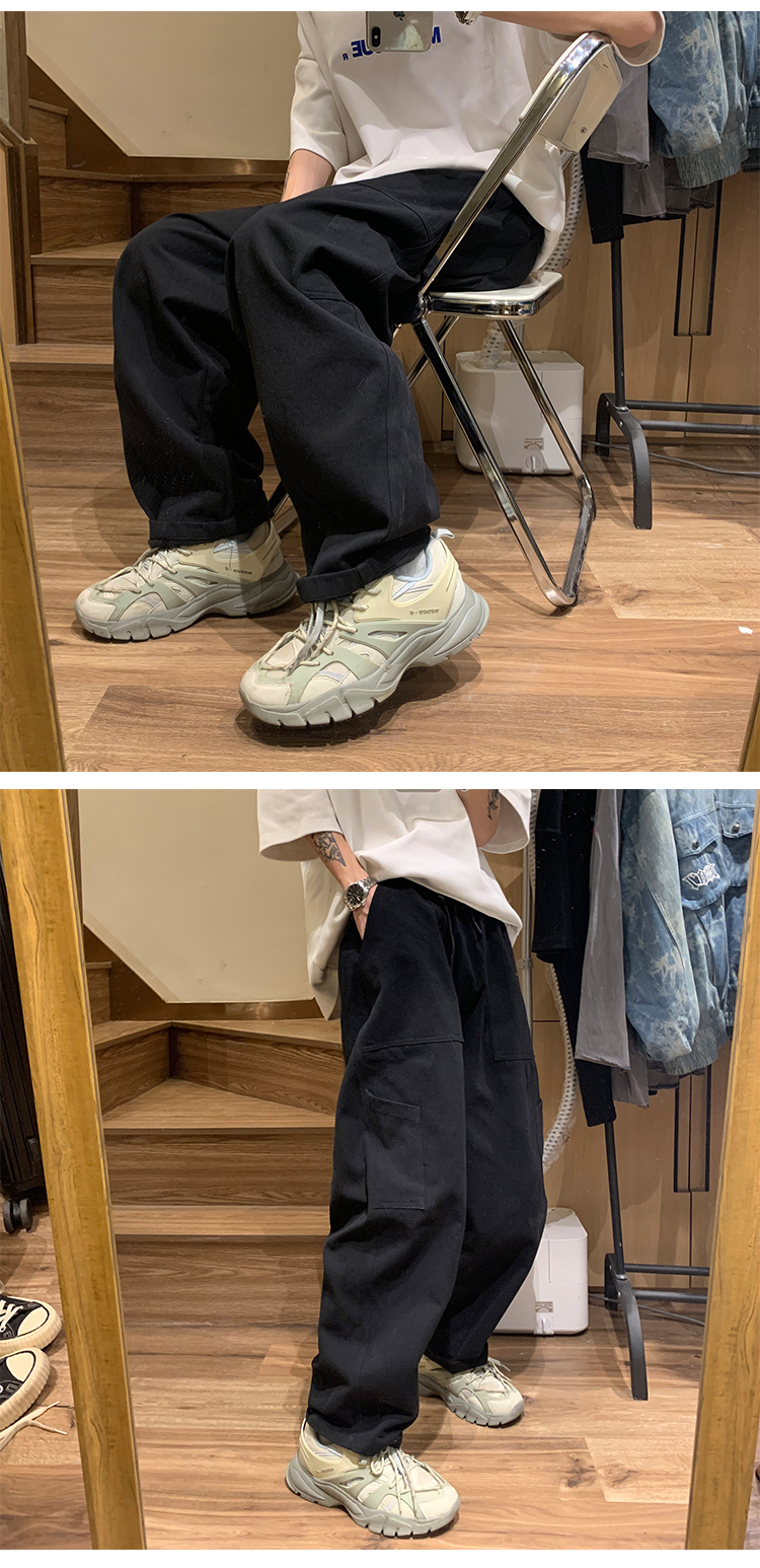 白色工裝褲女款春秋季原創高街美式褲子oversize設計感直筒休閒褲