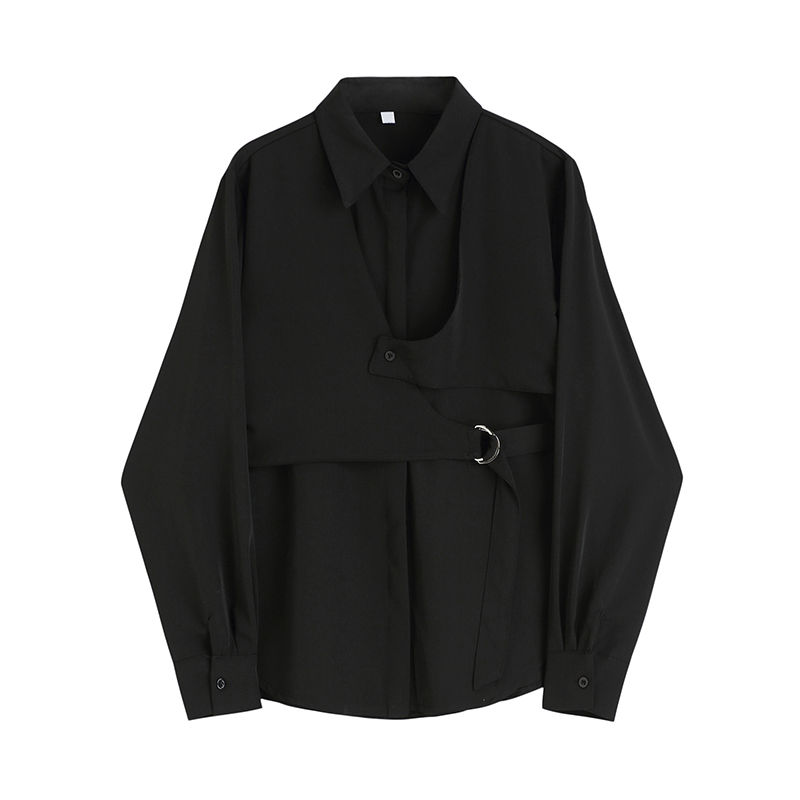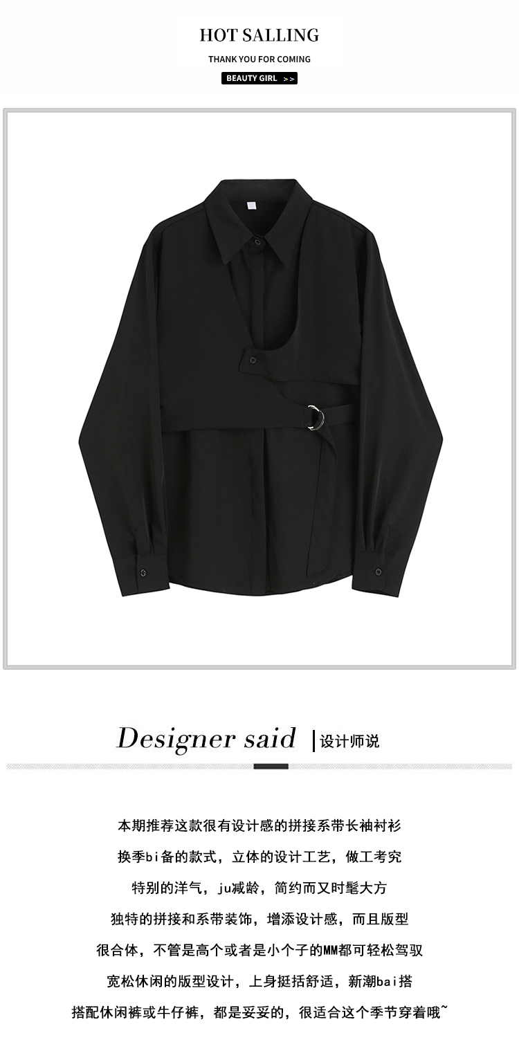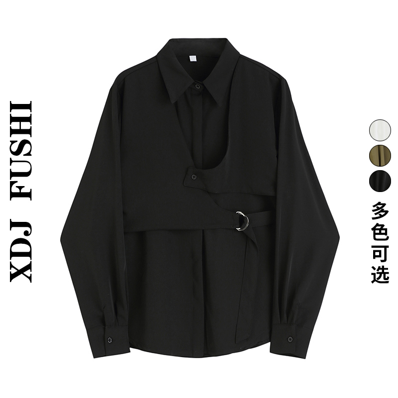 春款女裝2023新款設計感小眾襯衫女別致垂感黑色襯衫外套ins上衣