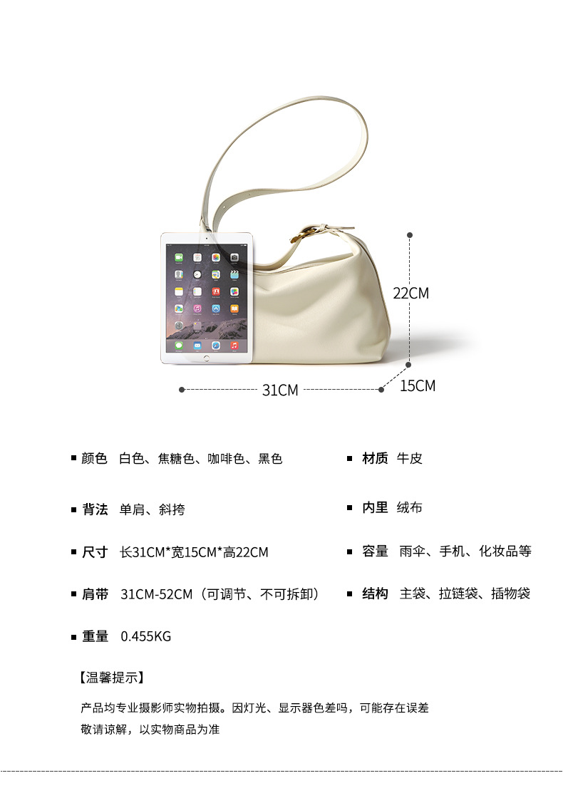 头层togo牛皮法式单肩包腋下包小众时尚质感大容量斜挎女包包
