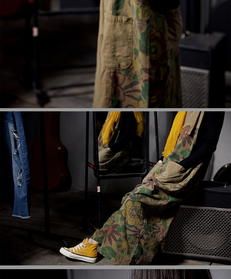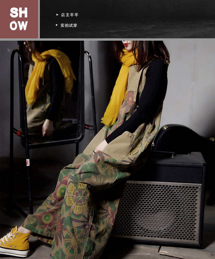 芊芊蔚藍139曲 文藝民族印花寬鬆闊腿慵懶vintage抱嬰袋褲