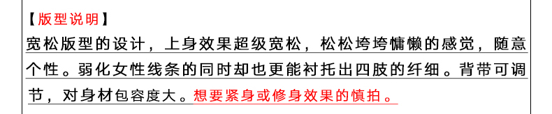 胸围不限制 腰围108 臀围122 大腿围86 裤长115(不含背带)