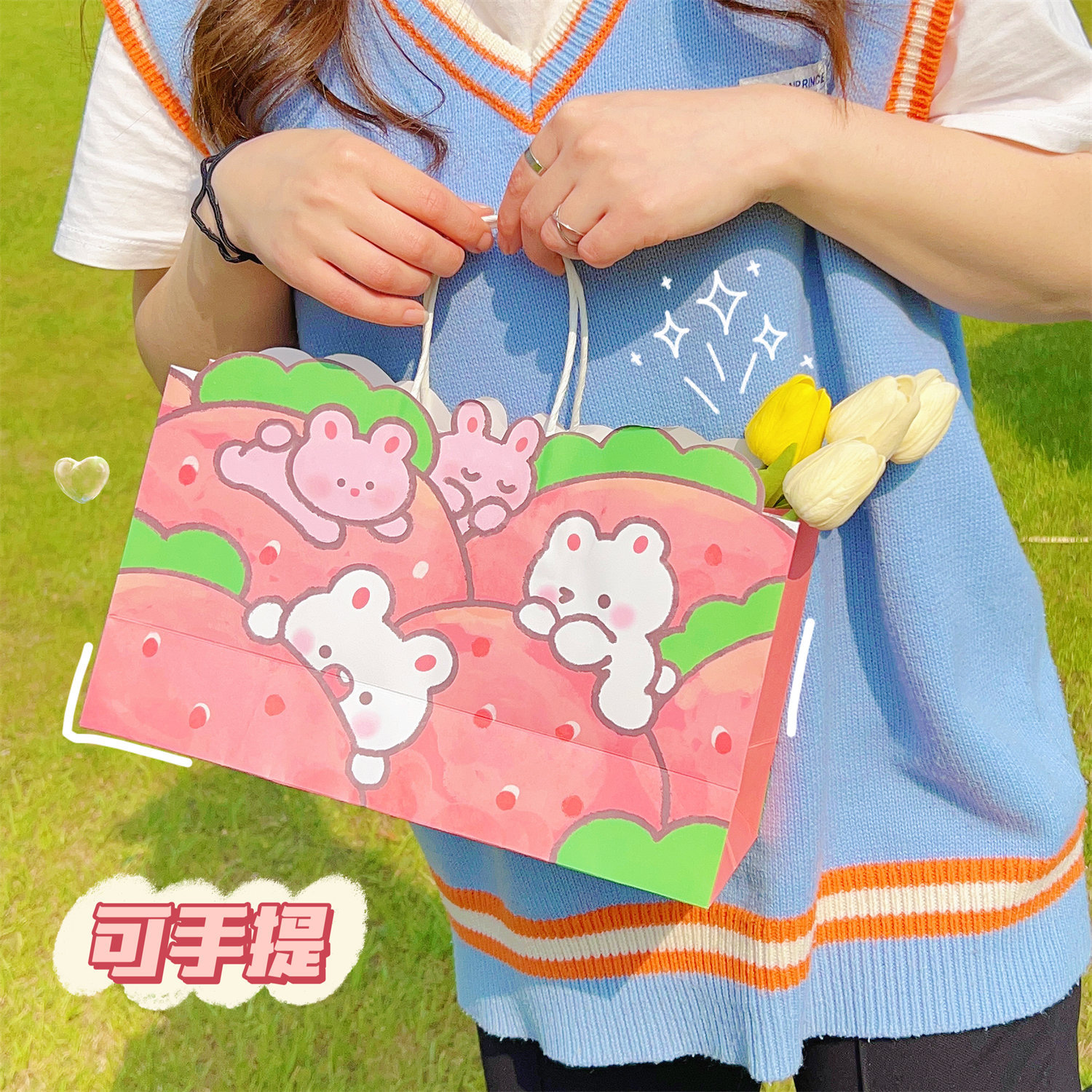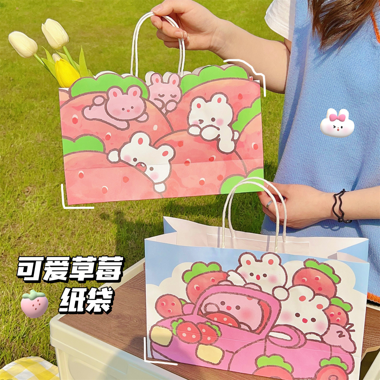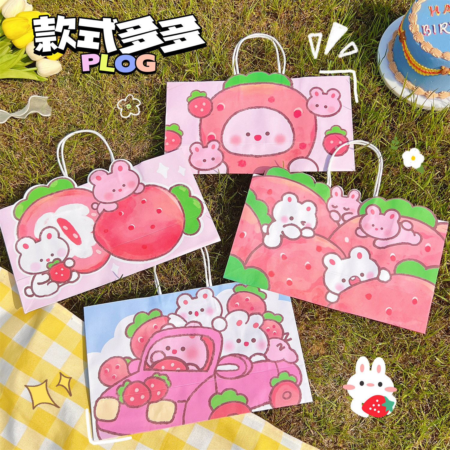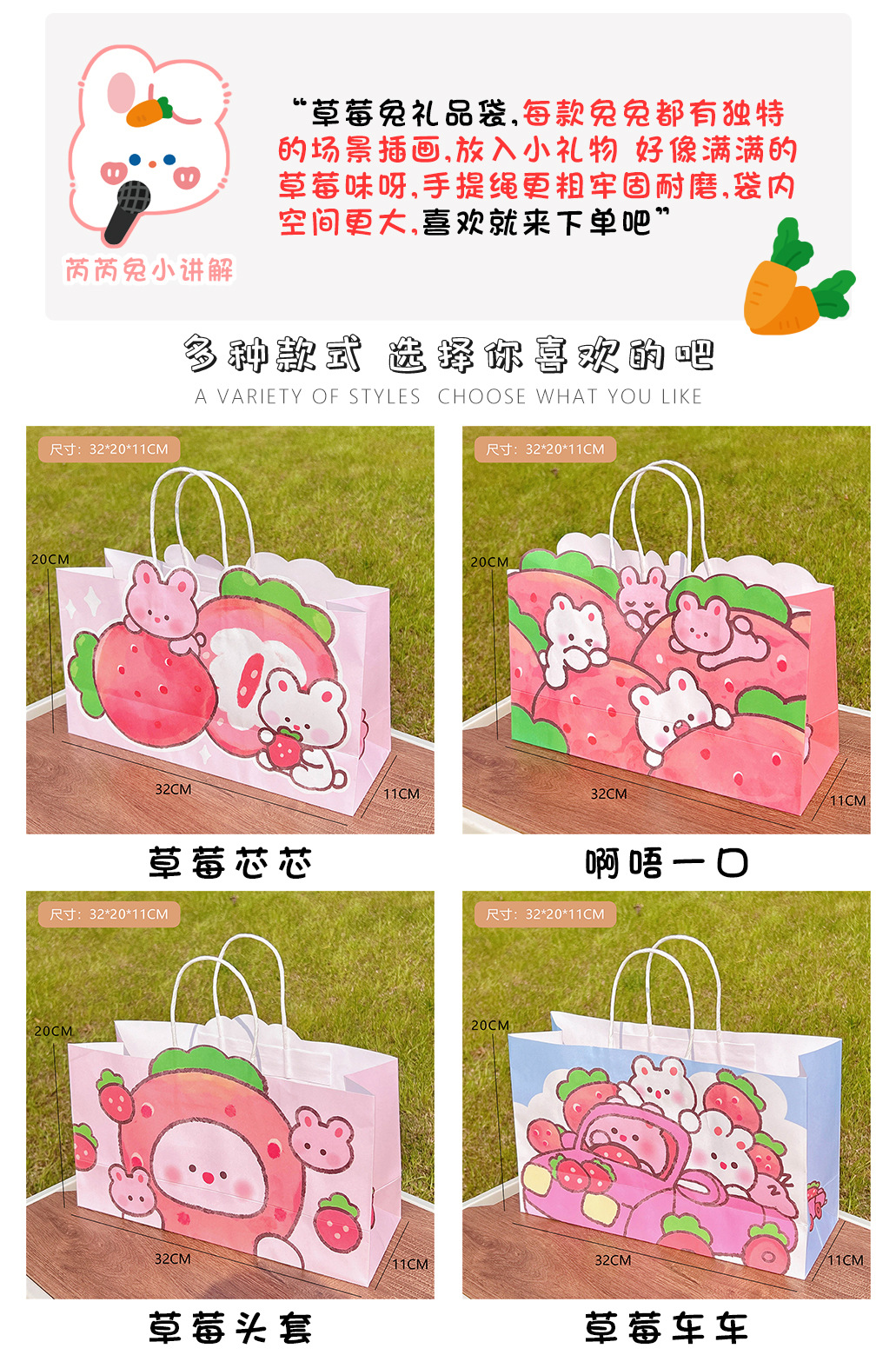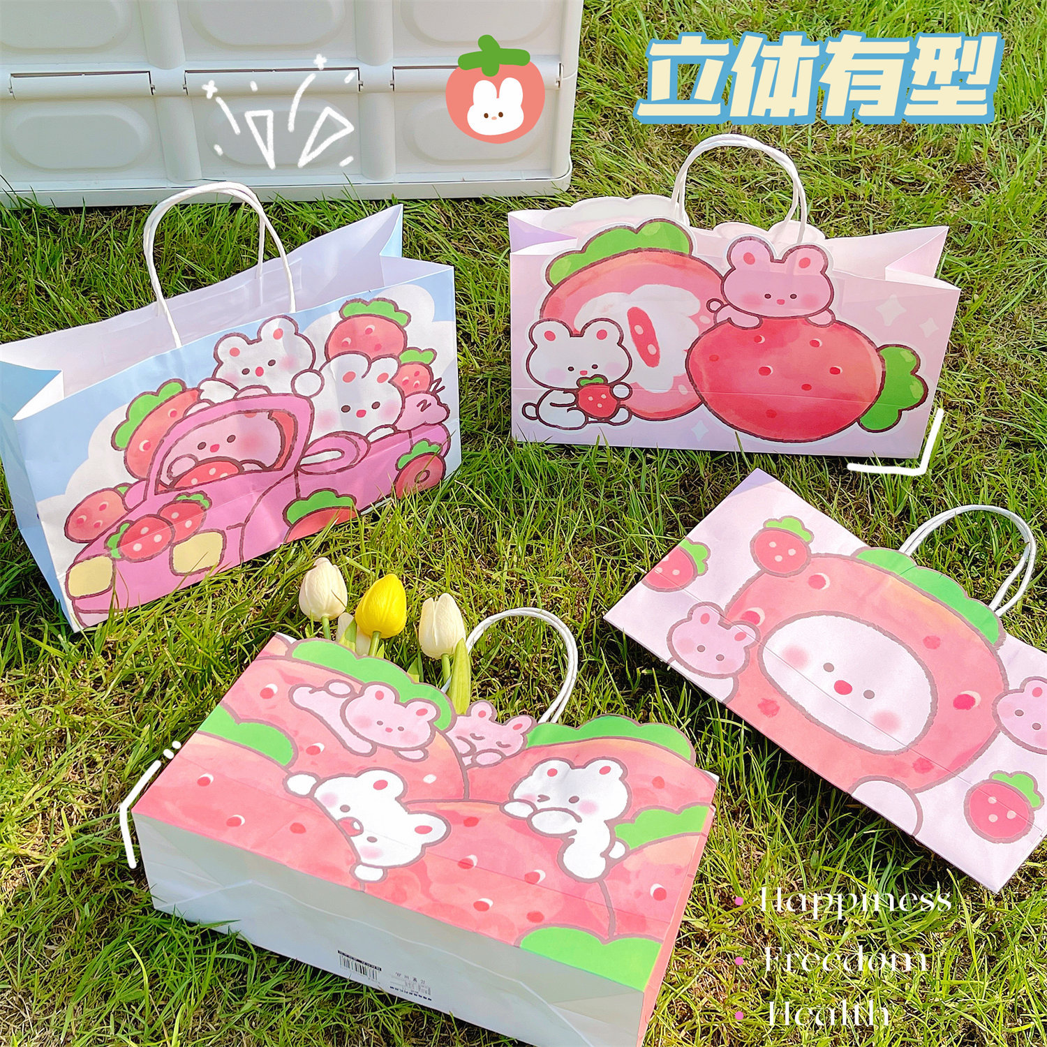腾亿可爱草莓兔兔纸袋异形手提袋购物袋包装袋礼品袋礼物萌礼物袋