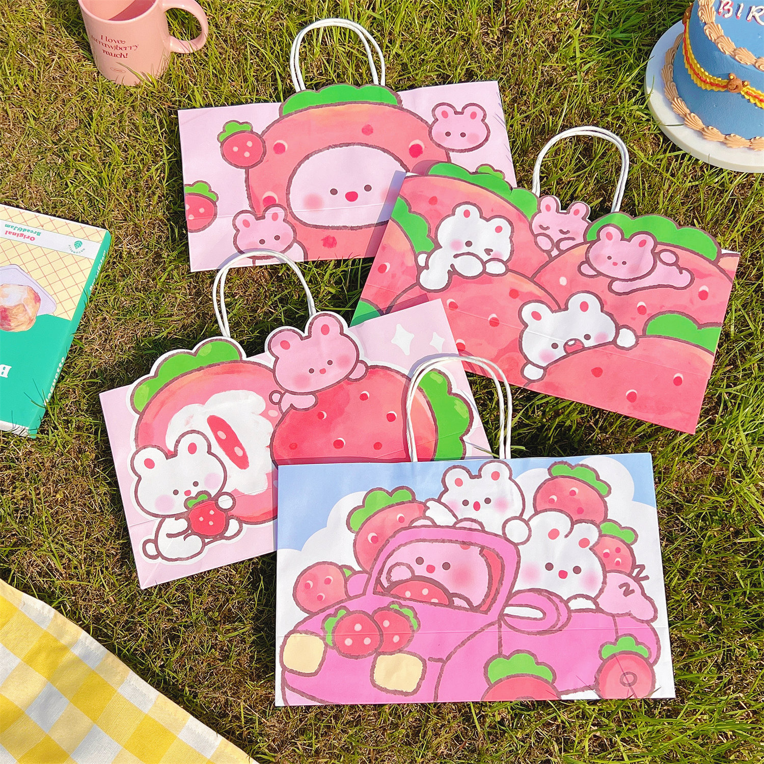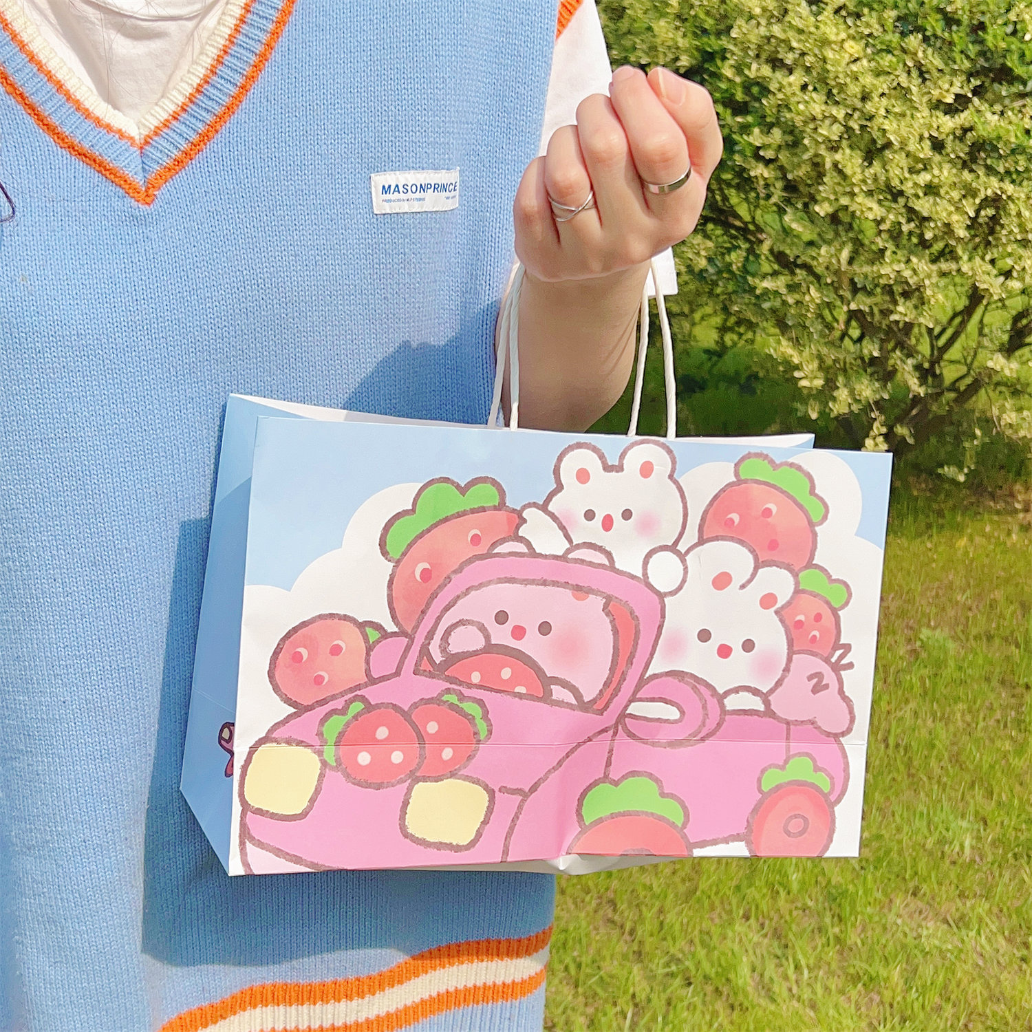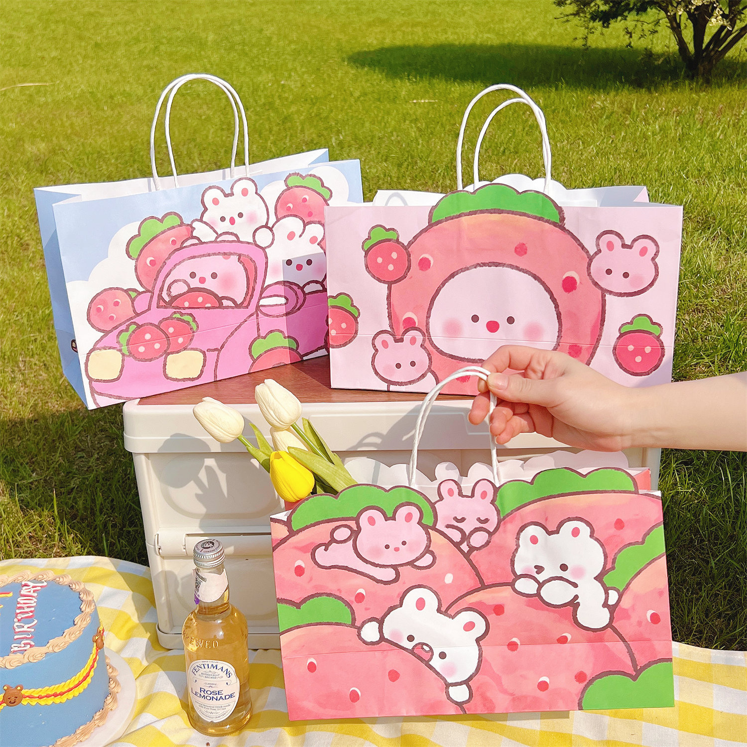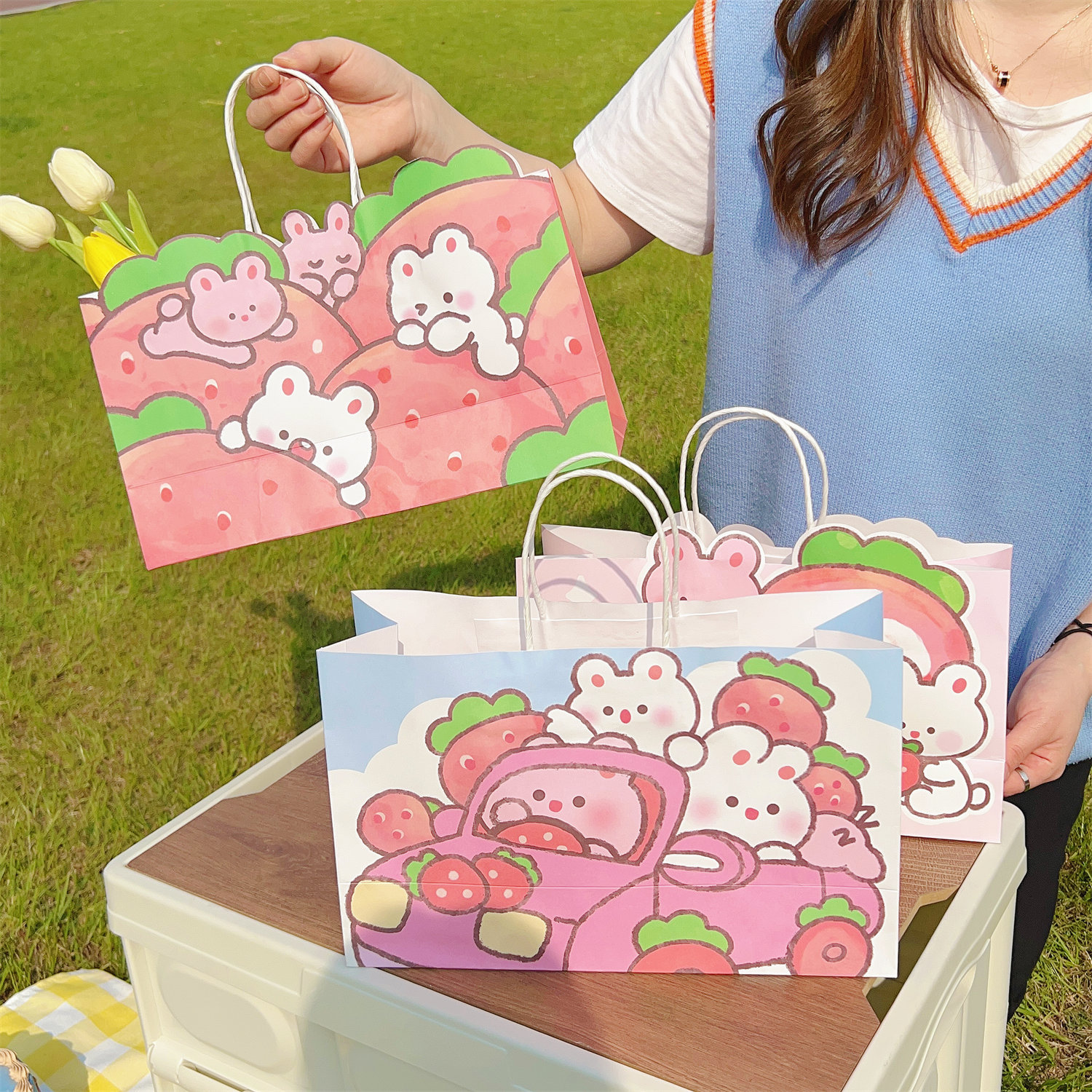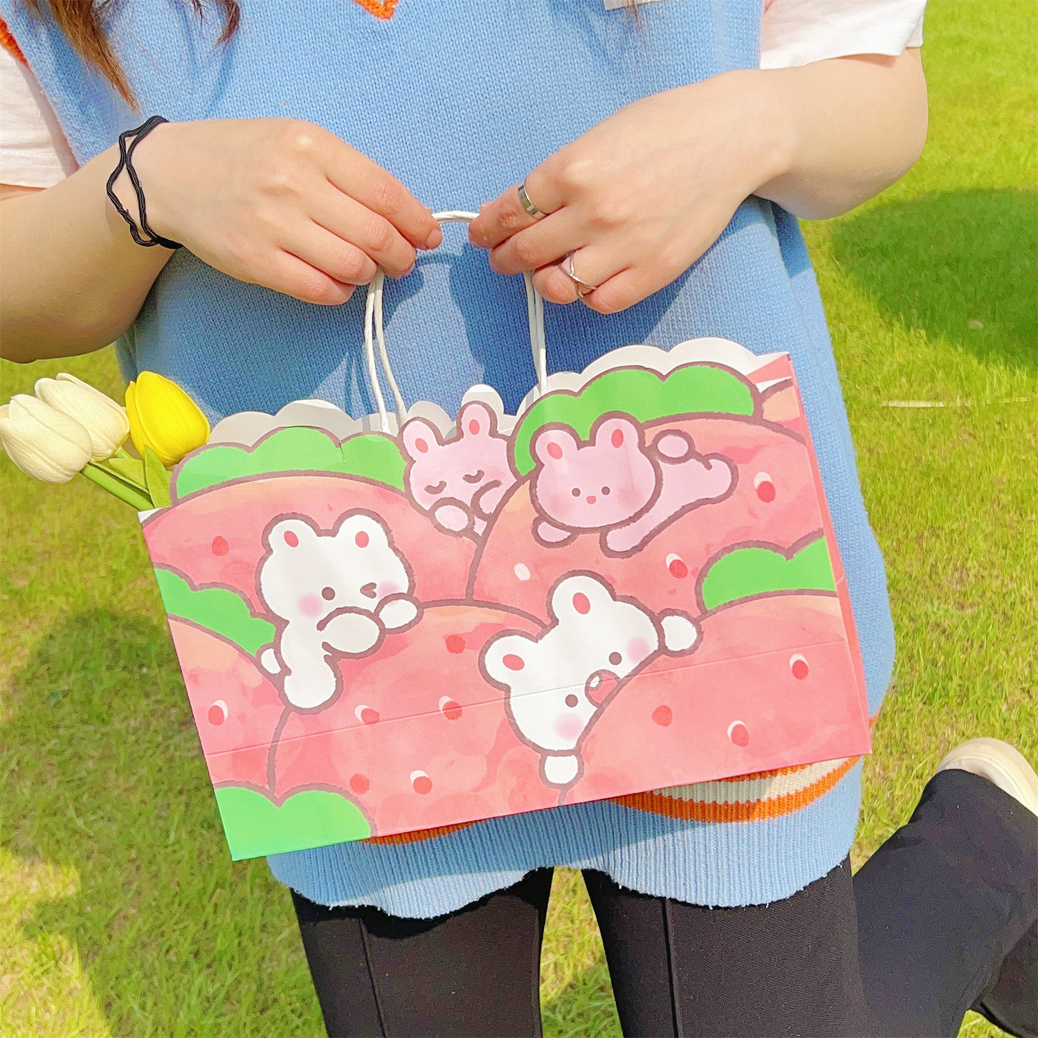 腾亿可爱草莓兔兔纸袋异形手提袋购物袋包装袋礼品袋礼物萌礼物袋