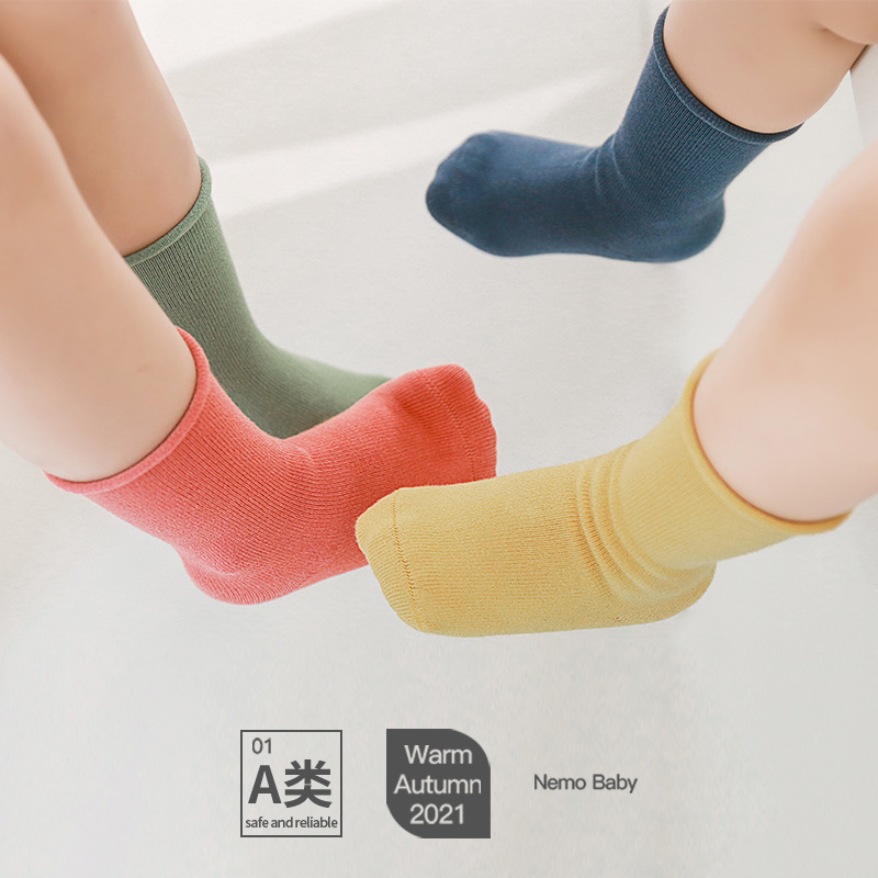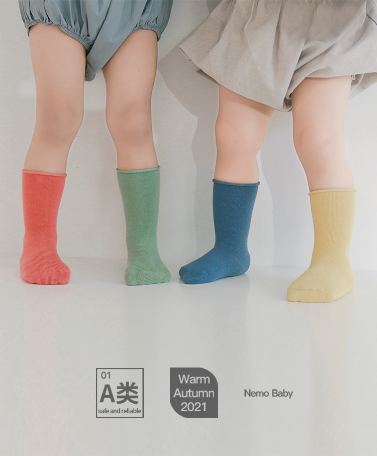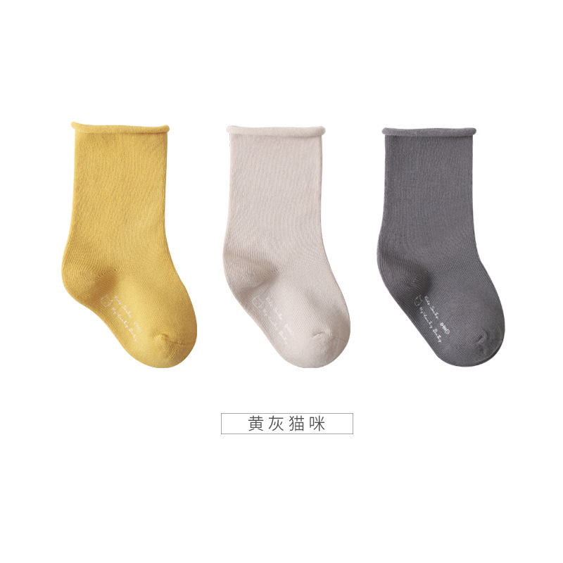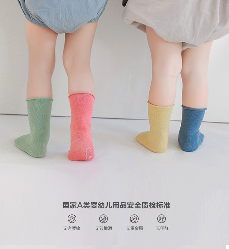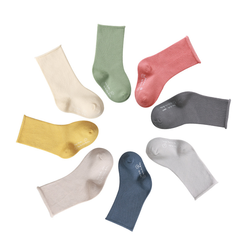婴儿袜子春秋松口不勒脚儿童袜子透气吸汗韩版无骨纯色宝宝中筒袜