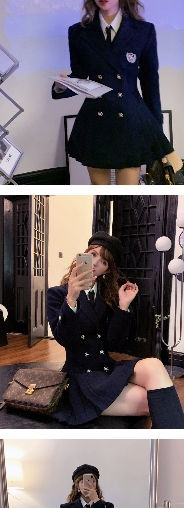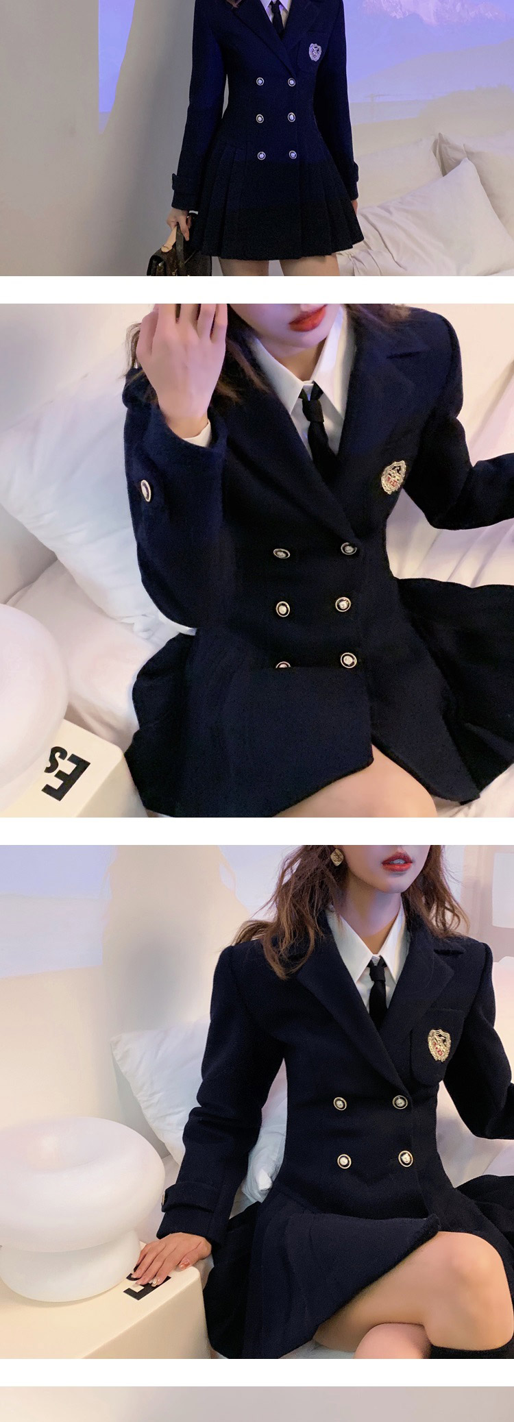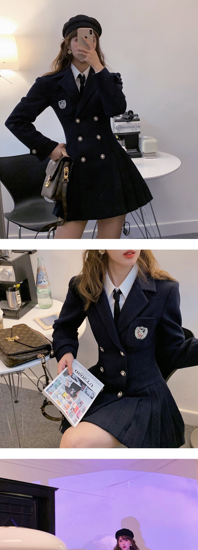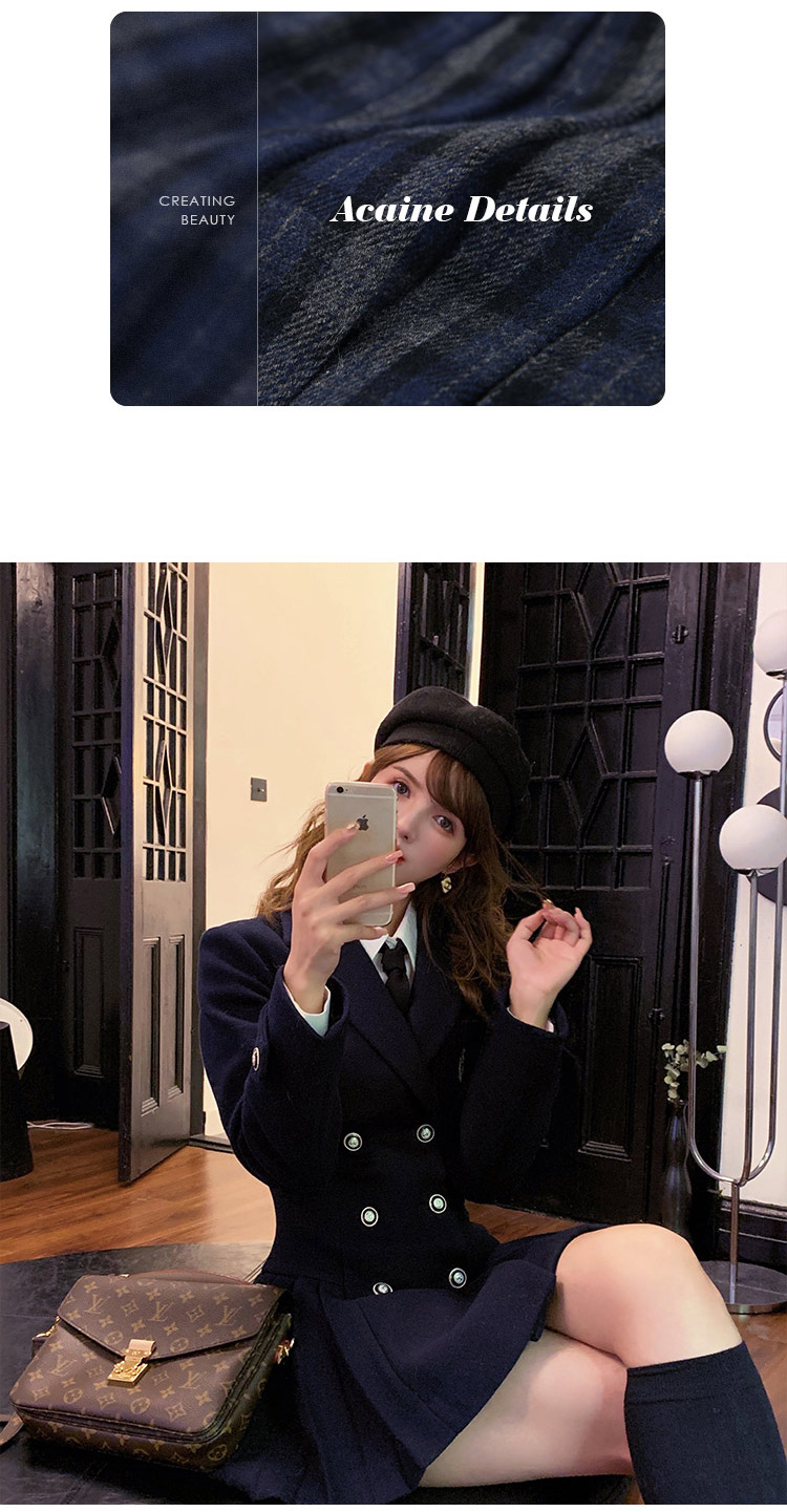 acaine阿彩呢 斯萊特林學院風西裝挺闊設計感中長版毛呢外套女