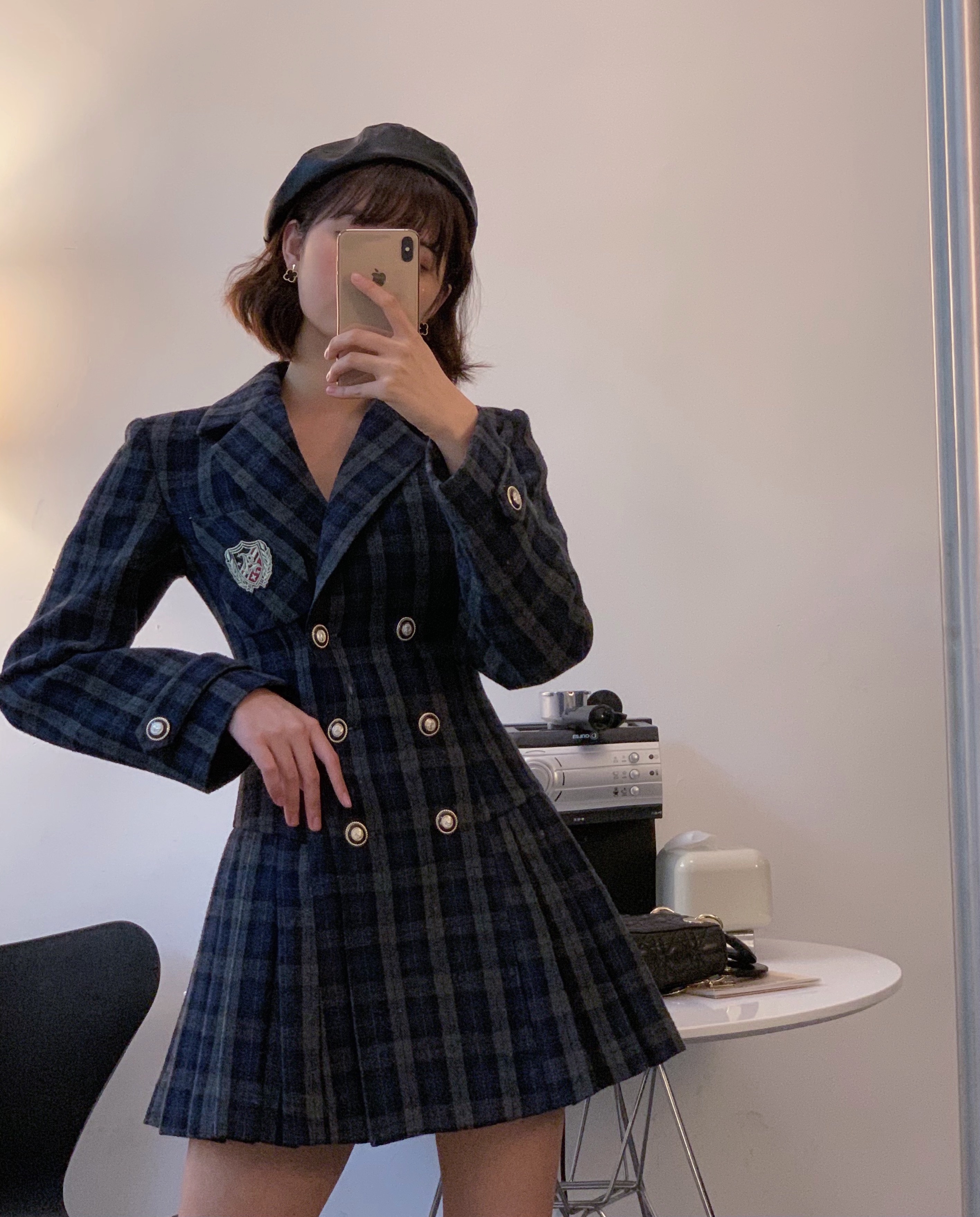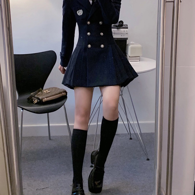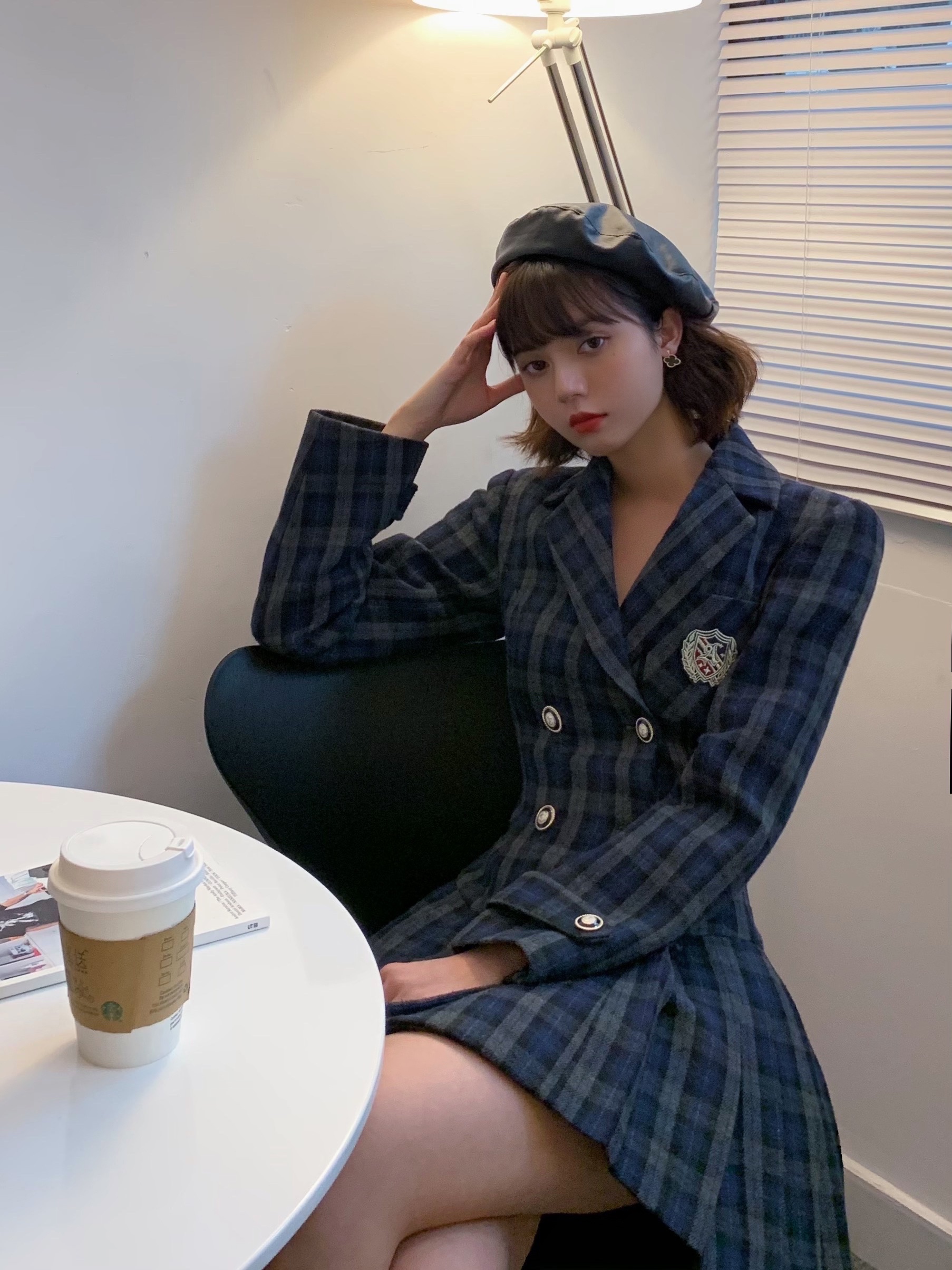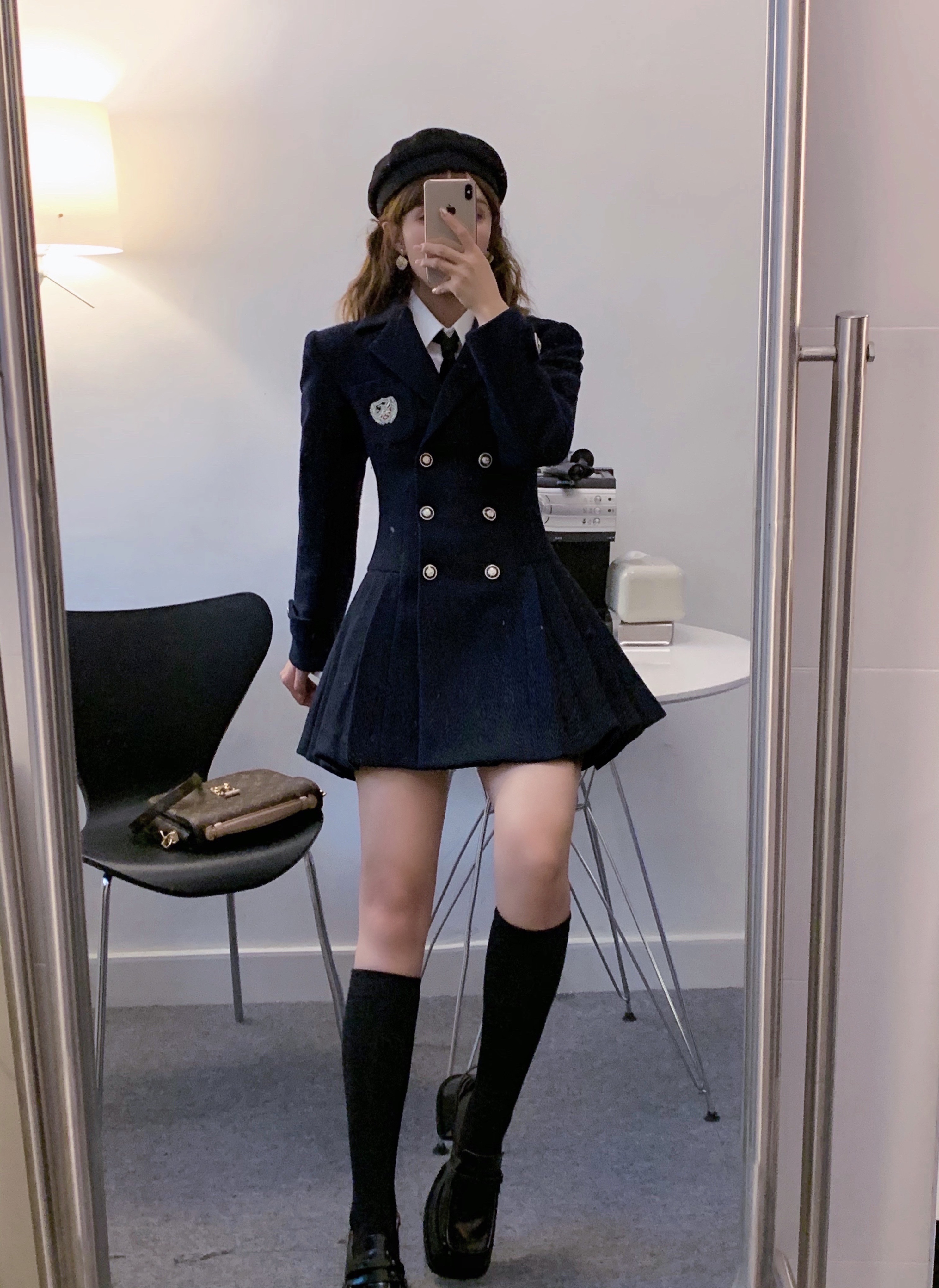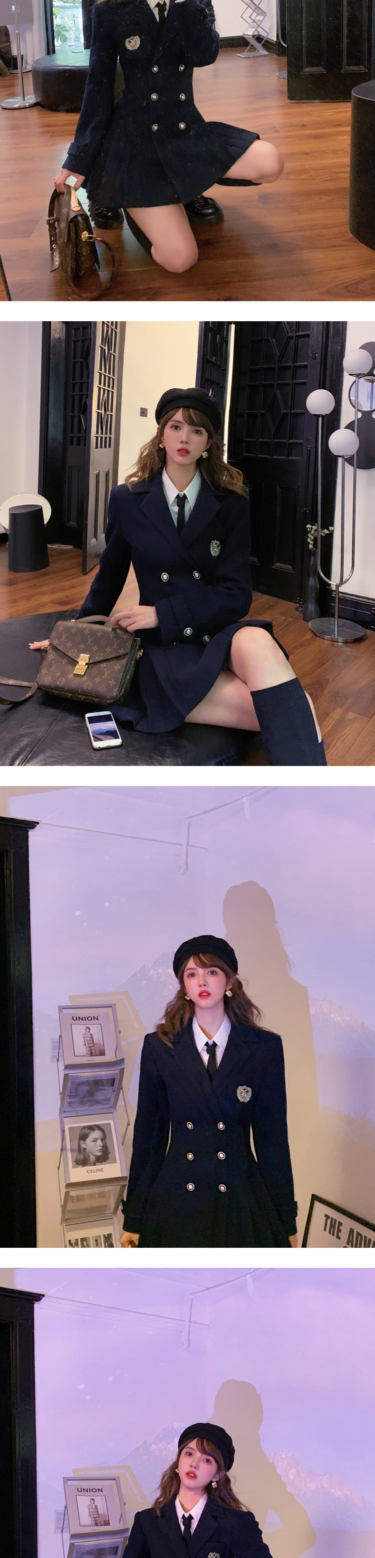 acaine阿彩呢 斯萊特林學院風西裝挺闊設計感中長版毛呢外套女