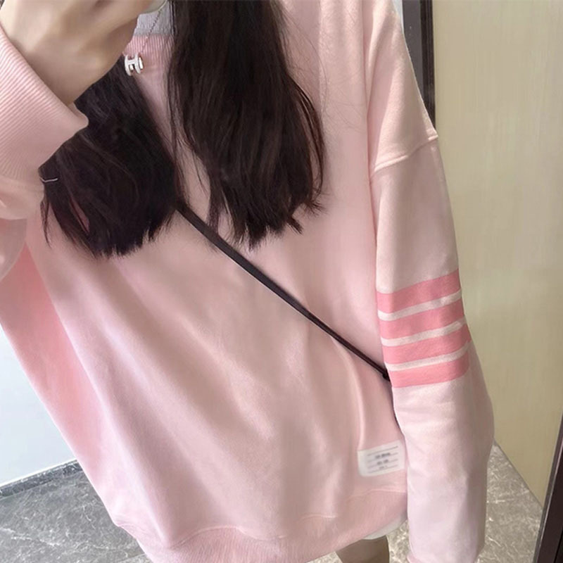 粉色oversize衛衣女加絨純棉外套潮牌tb上衣寬鬆慵懶風長袖中長版