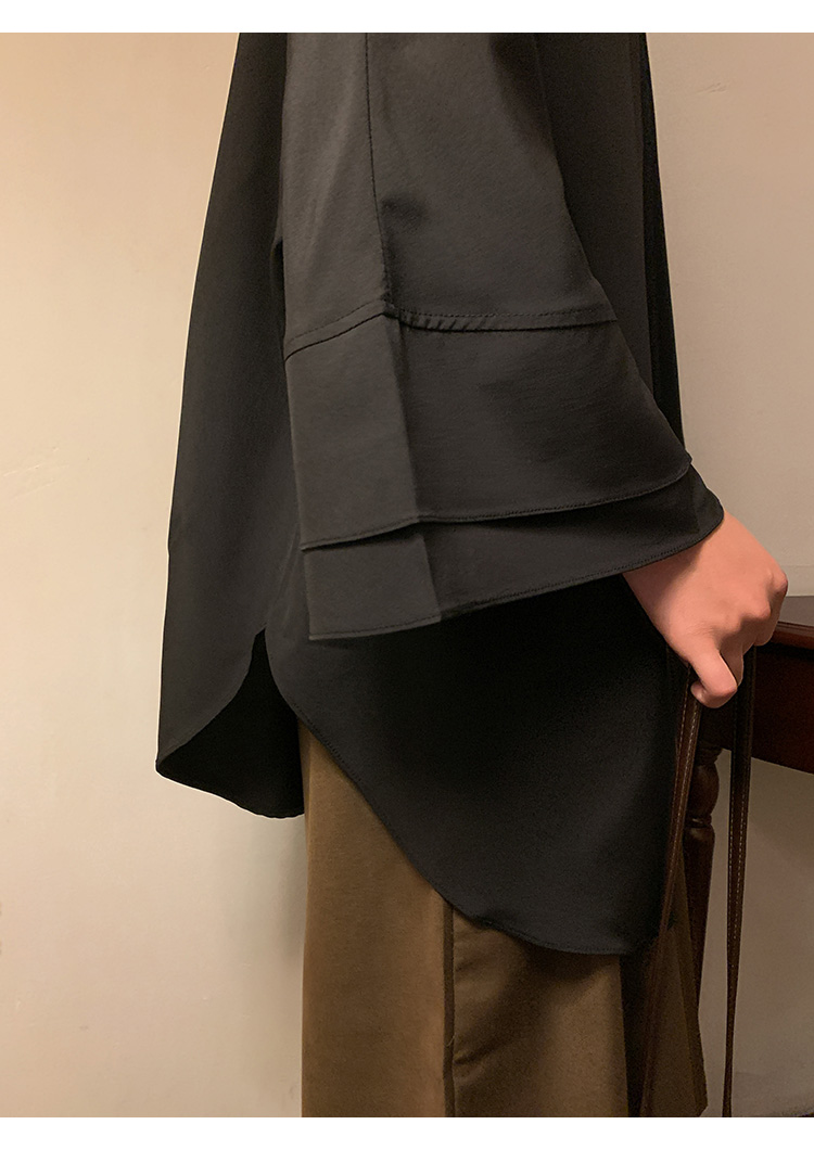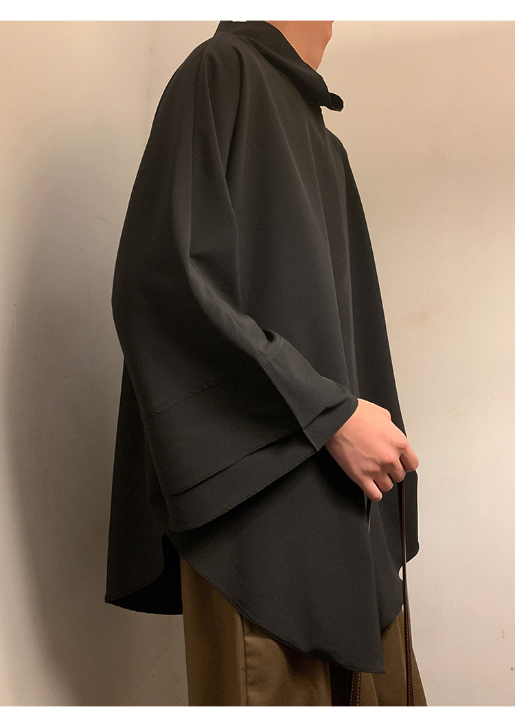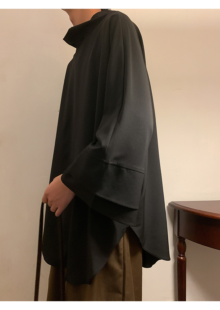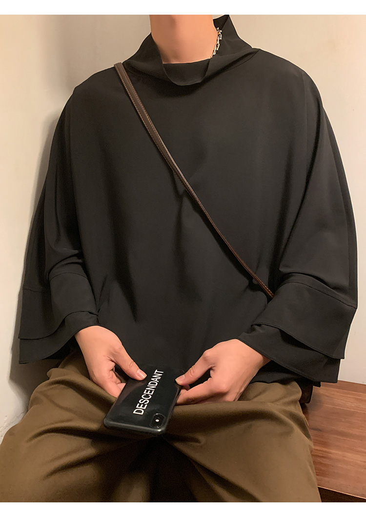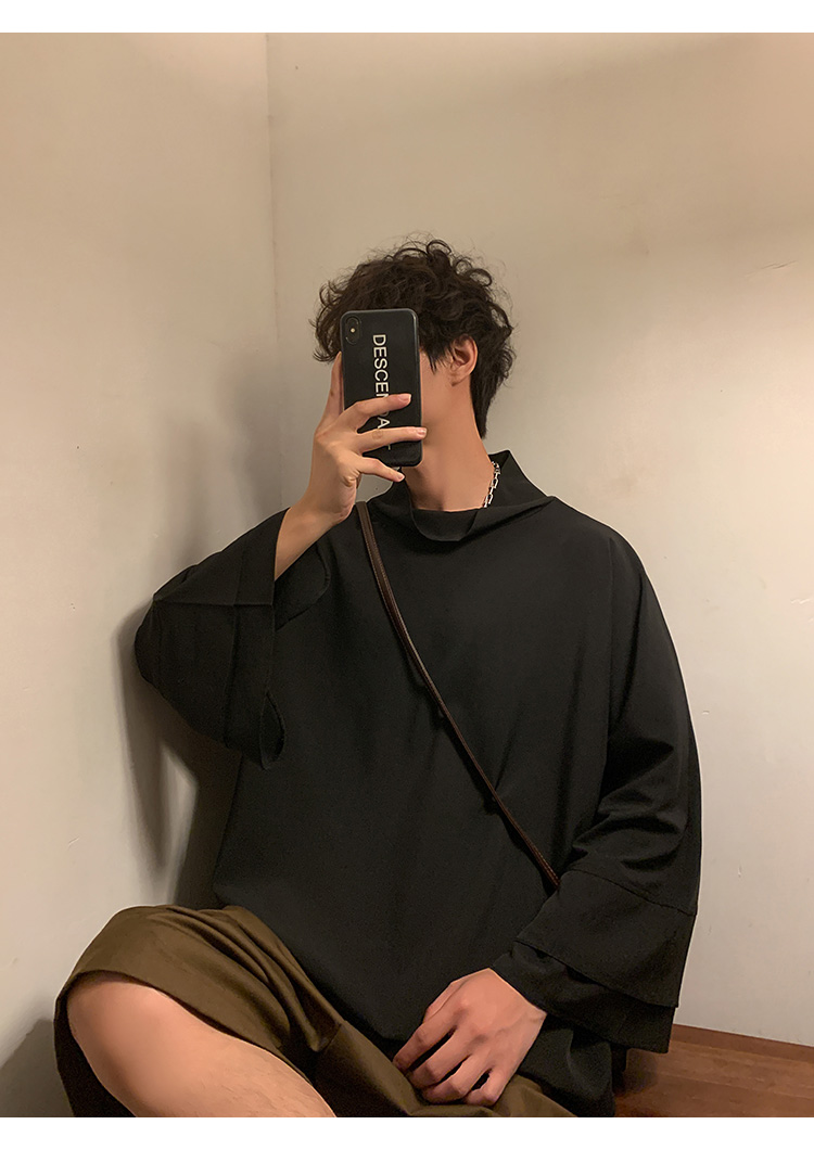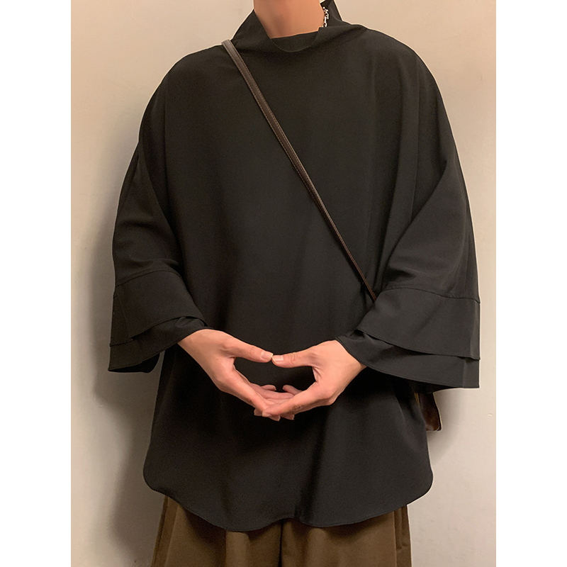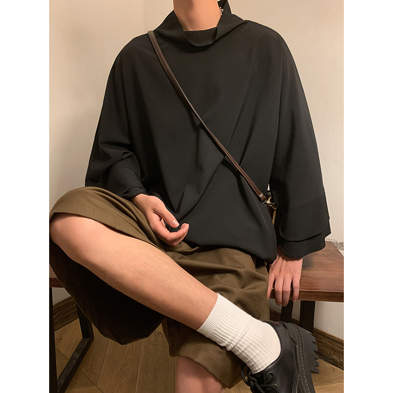 新中式半高領冰絲T恤男小眾設計感廓形落肩短袖不規則高級感男裝