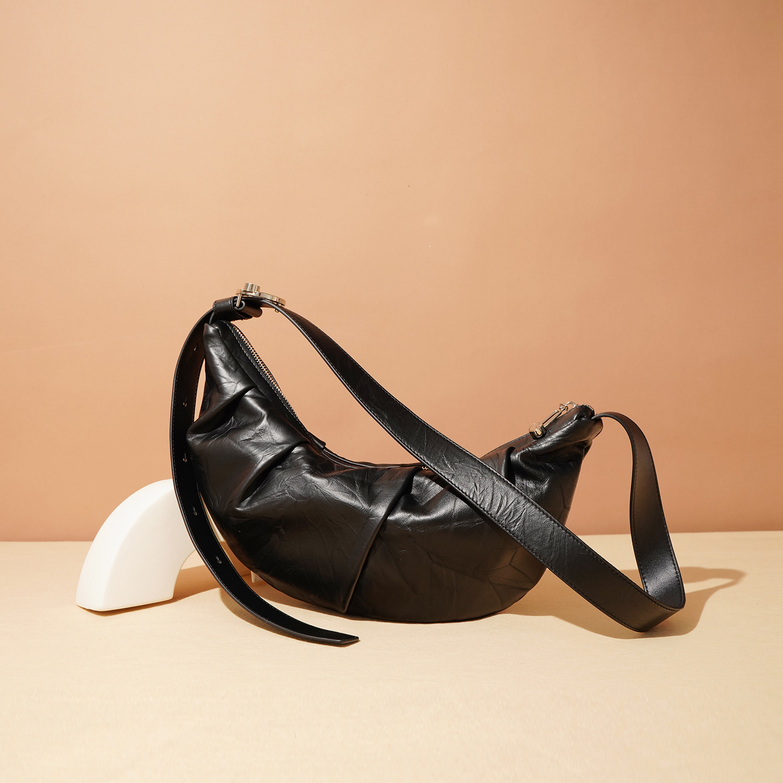 小众设计款极简风质感牛皮可颂牛角包百搭休闲通勤斜挎包真皮女包