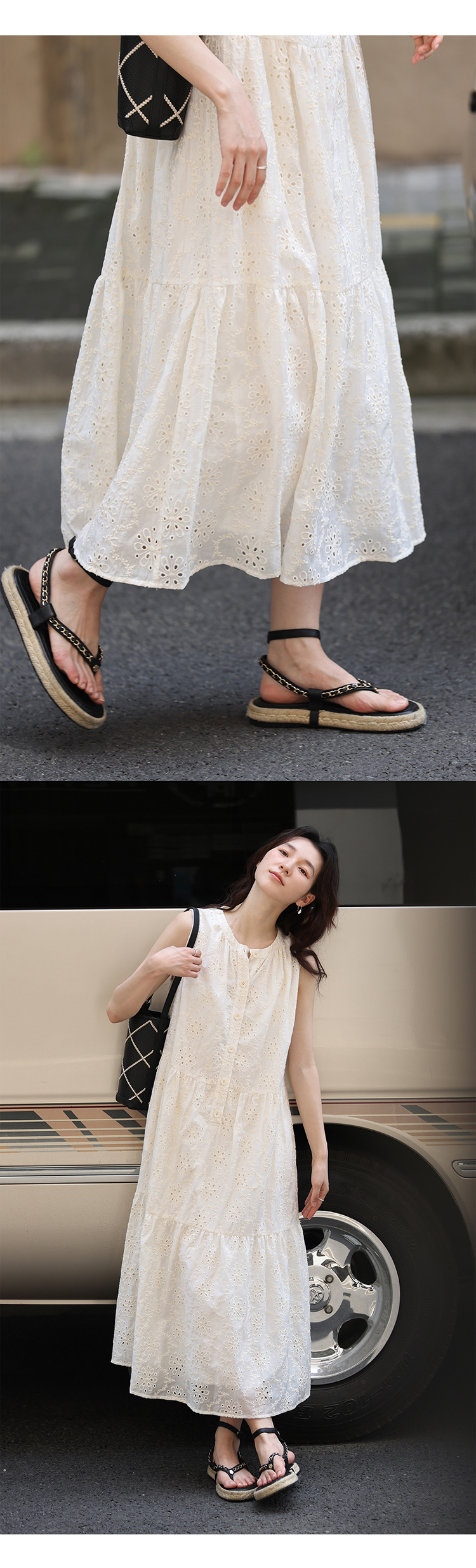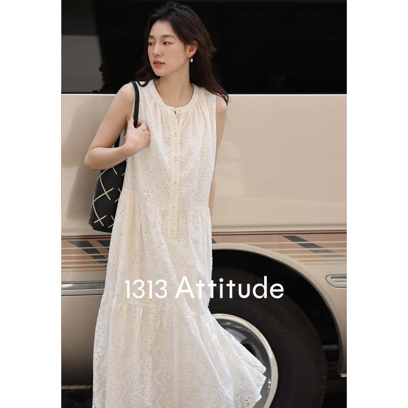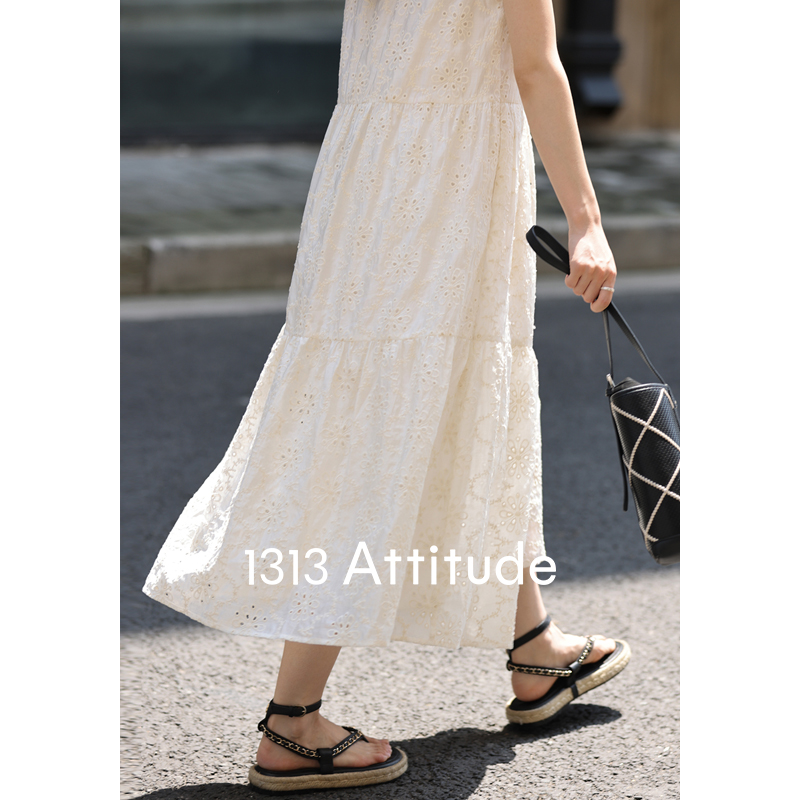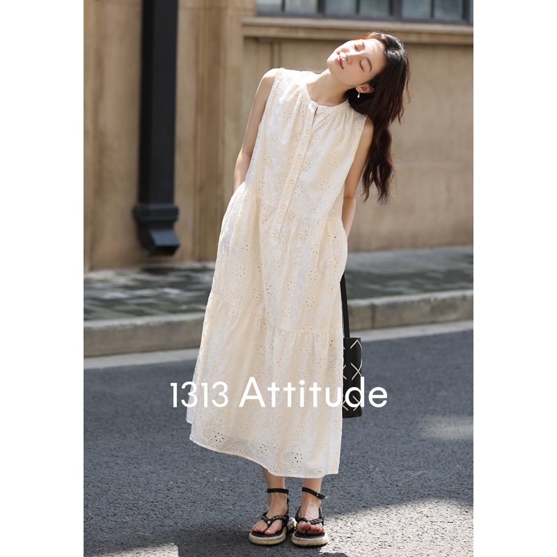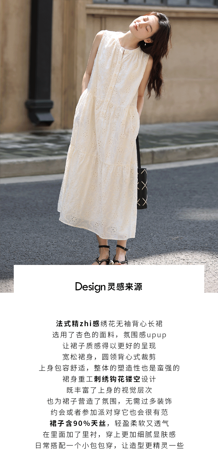 【現貨】1313法式重工鉤花!精緻文藝感90%天絲背心裙顯瘦洋裝