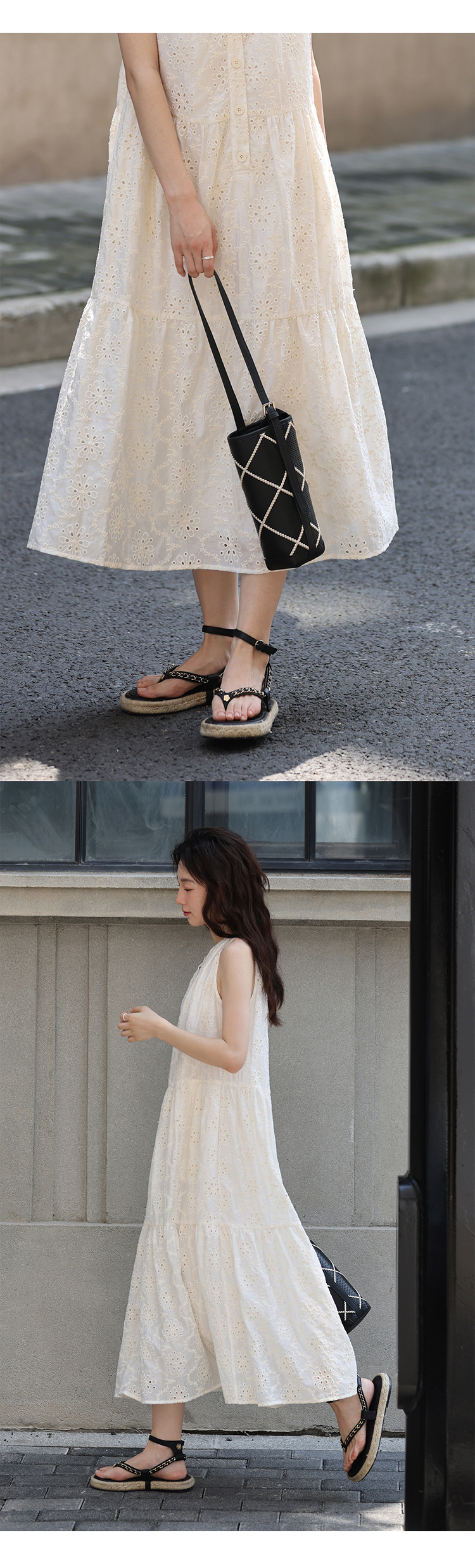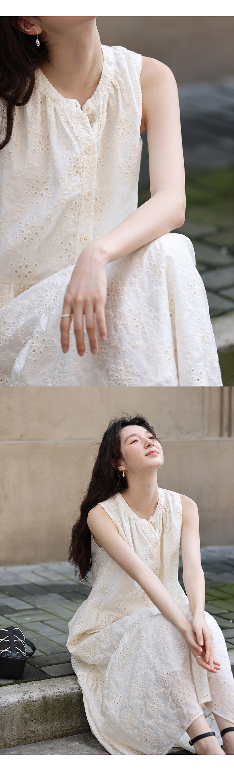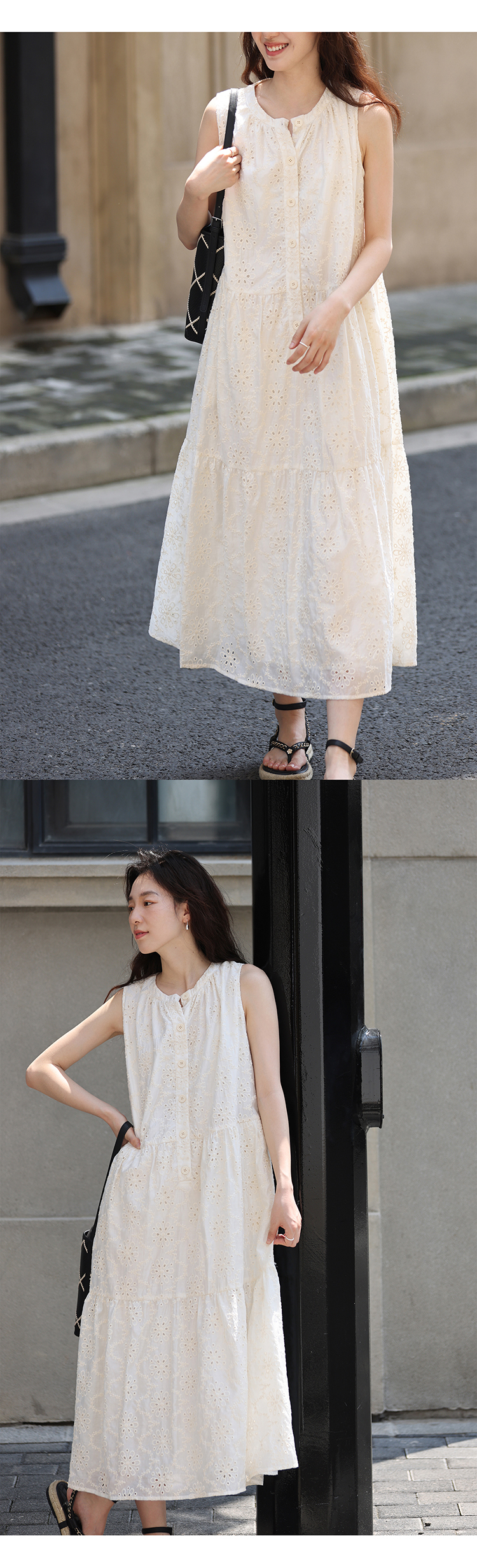 【現貨】1313法式重工鉤花!精緻文藝感90%天絲背心裙顯瘦洋裝