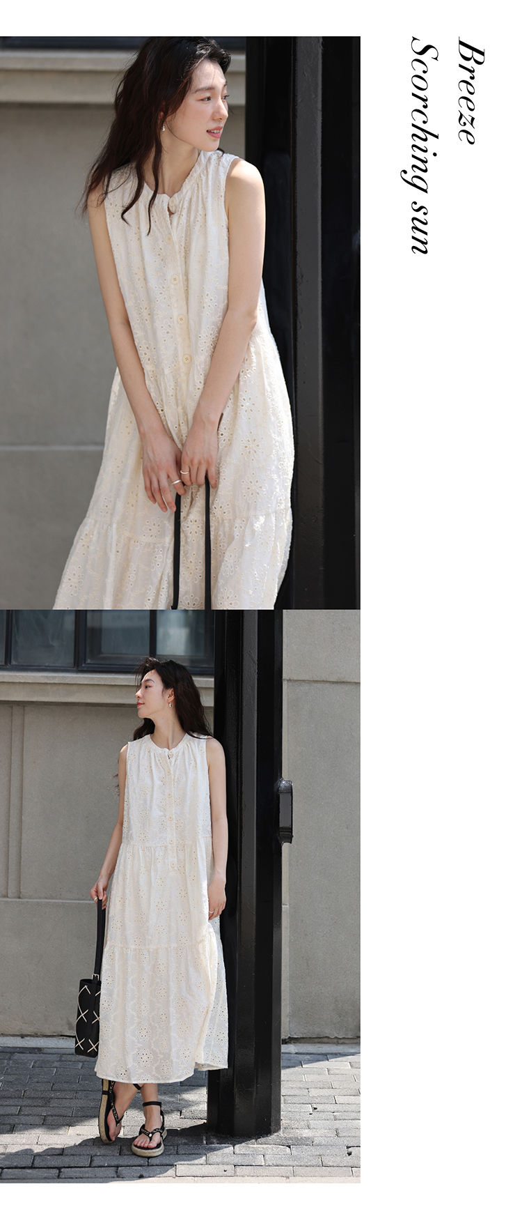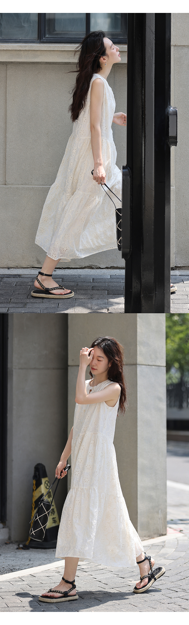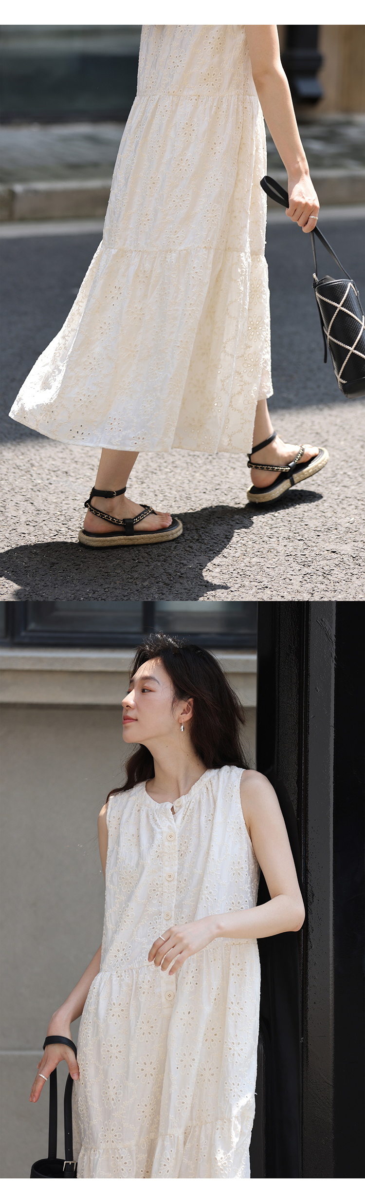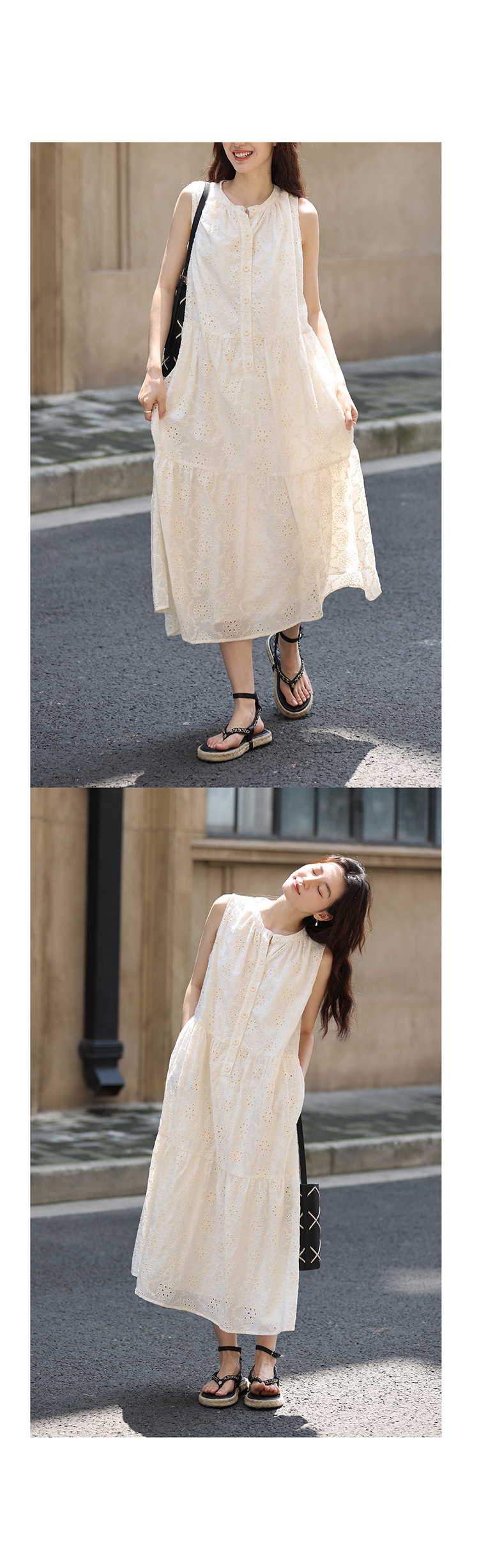 【現貨】1313法式重工鉤花!精緻文藝感90%天絲背心裙顯瘦洋裝