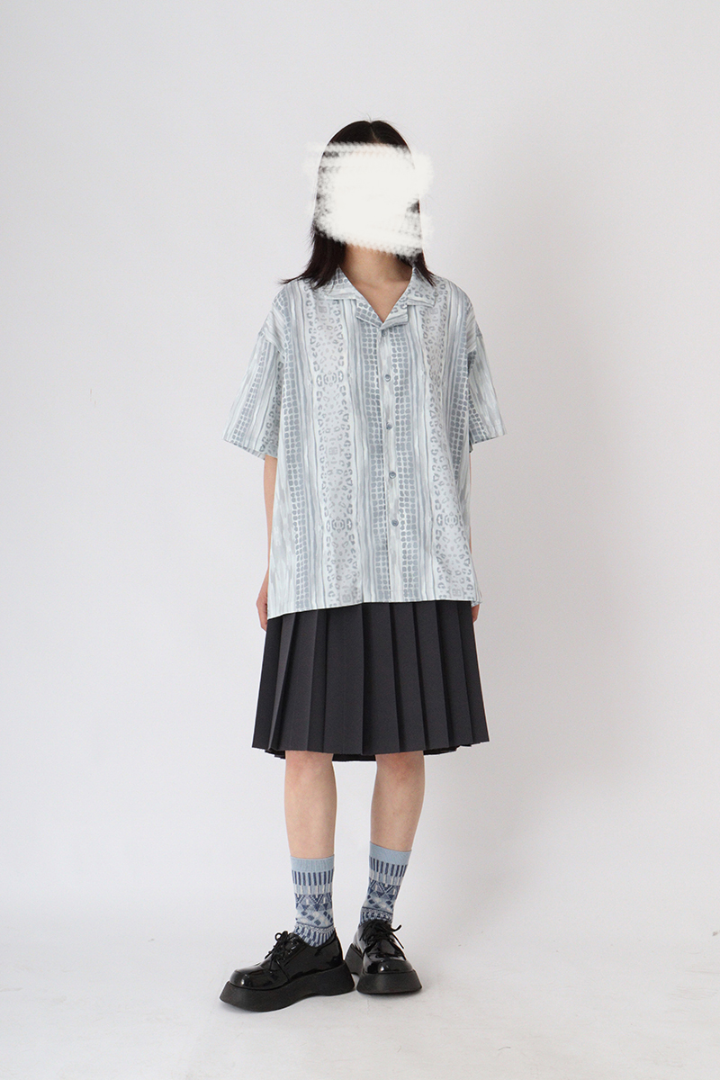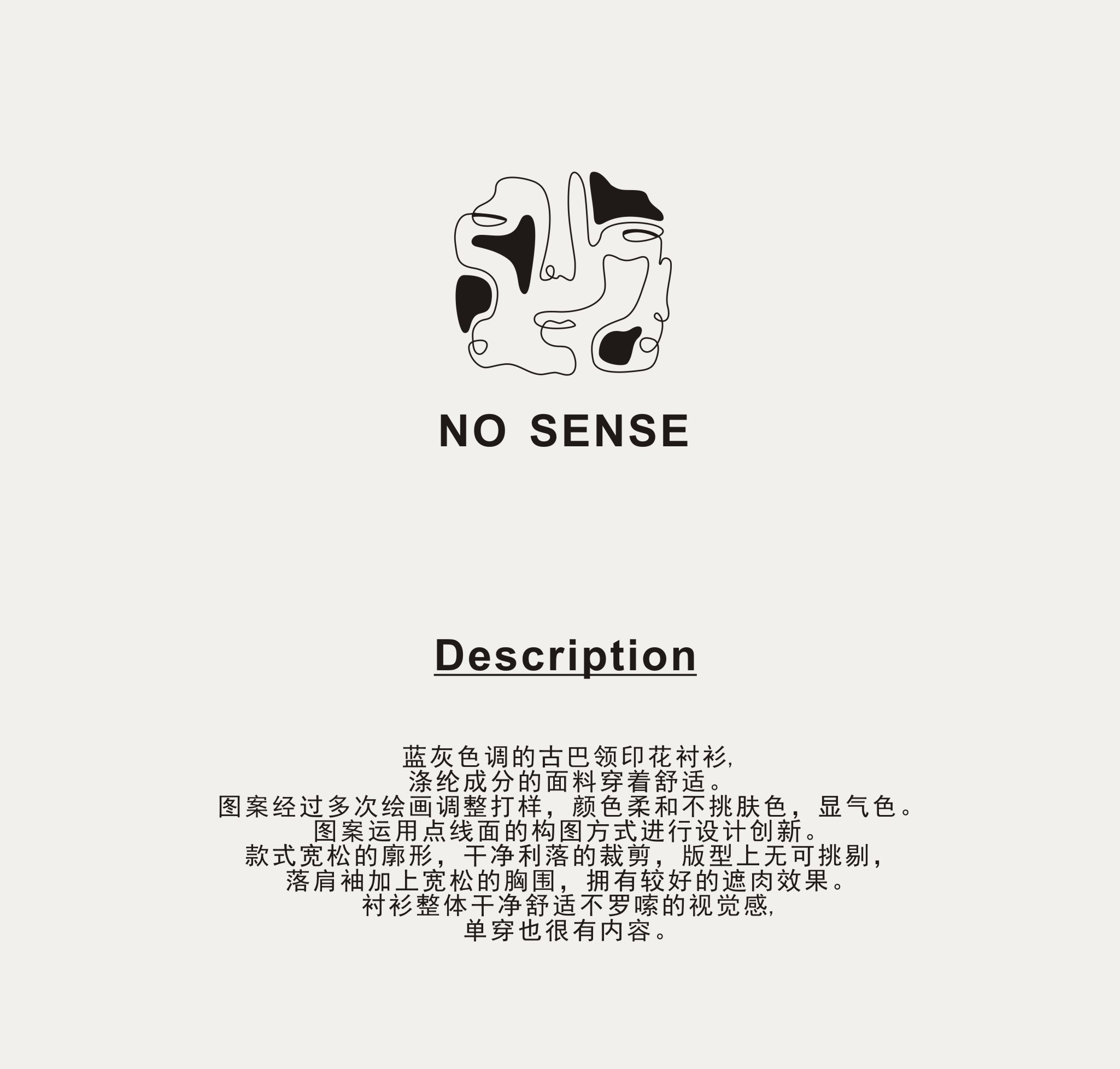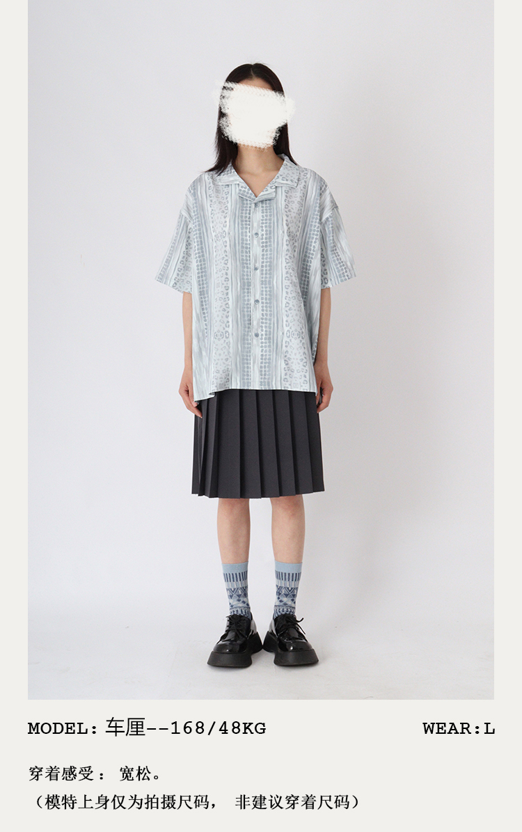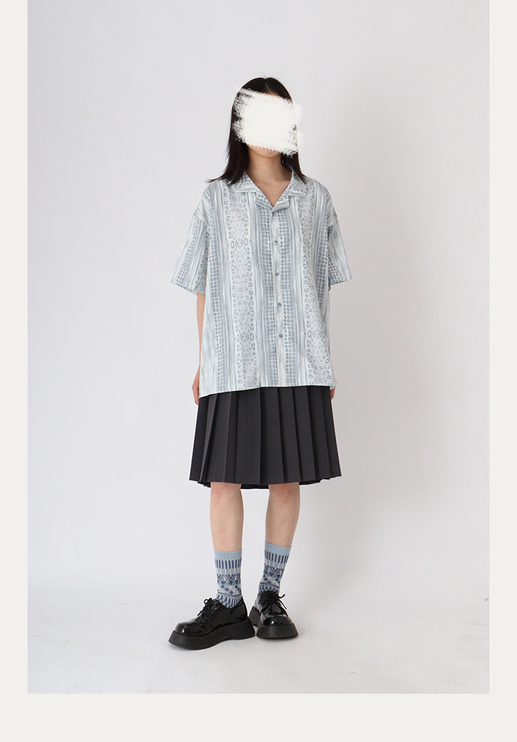 No sense無感官 日系復古印花短袖襯衫男女垂感寬鬆古巴領襯衫