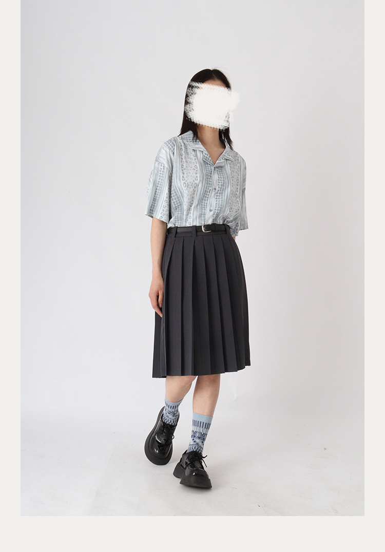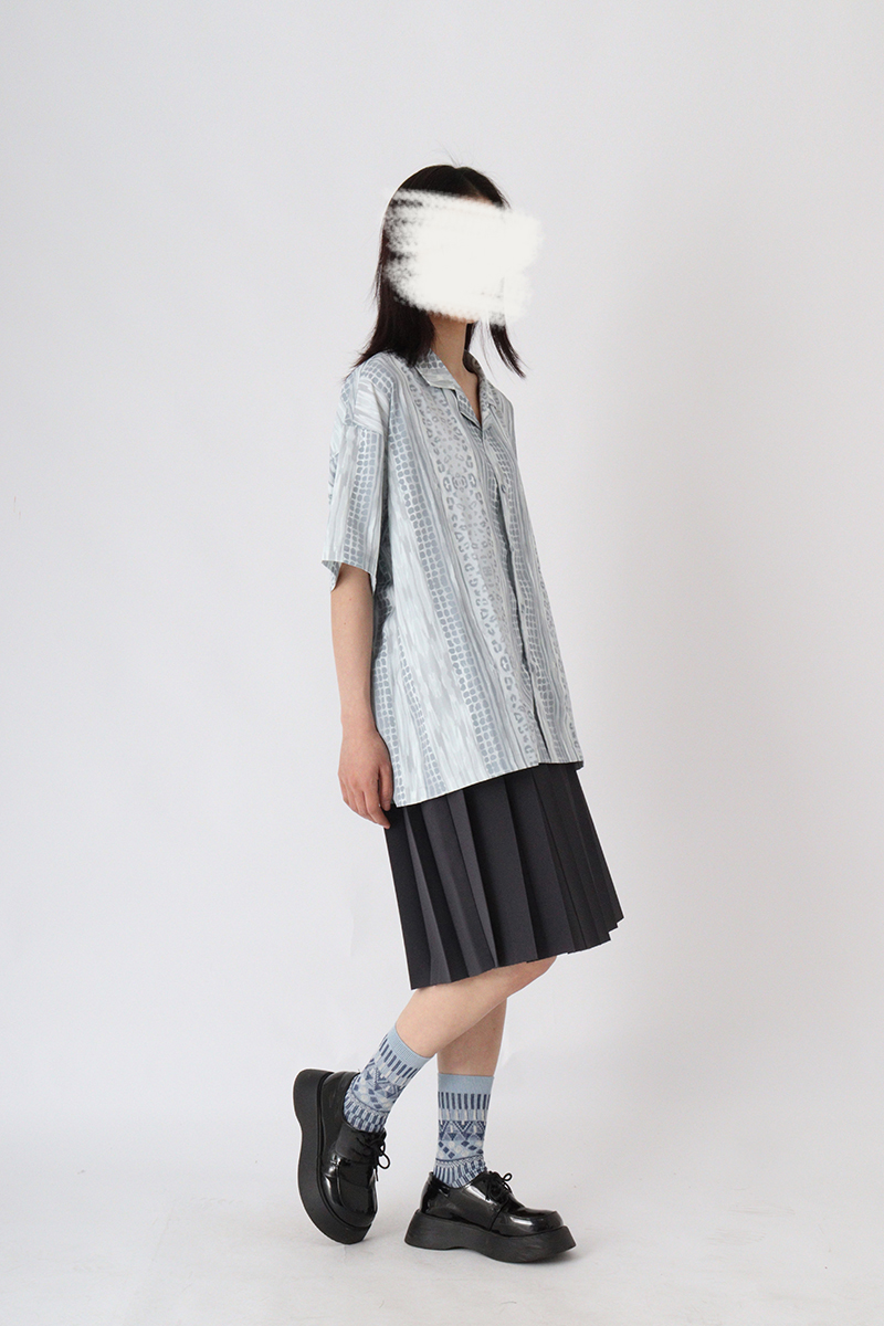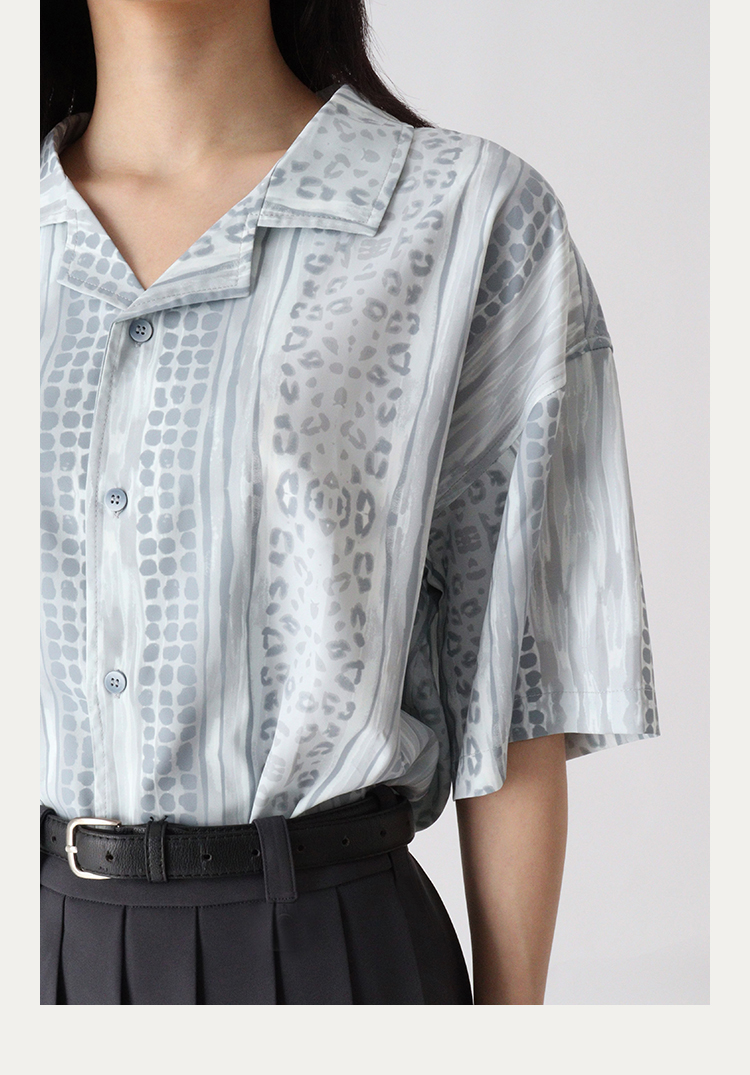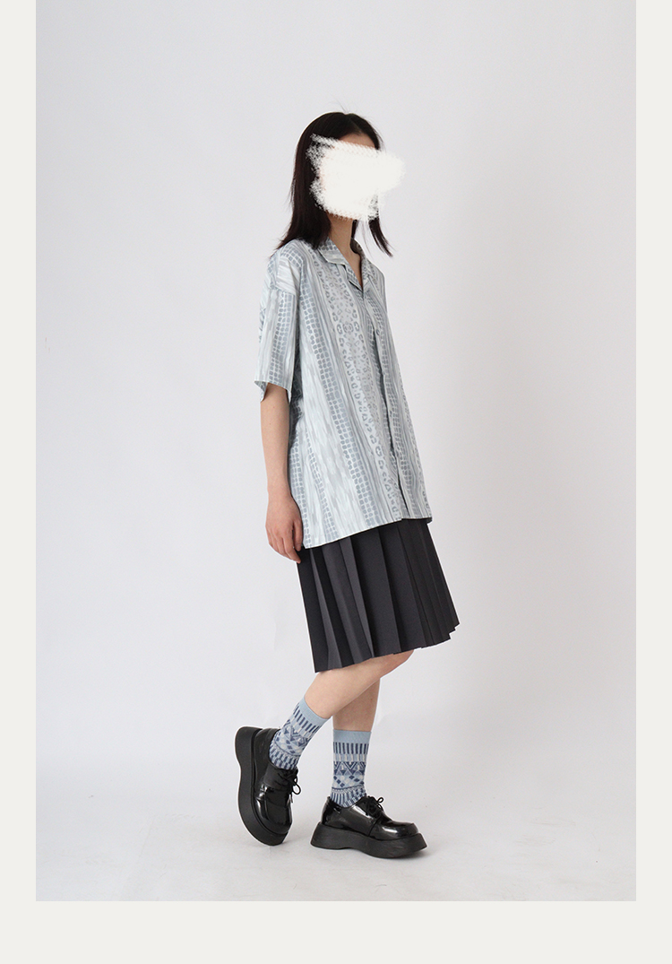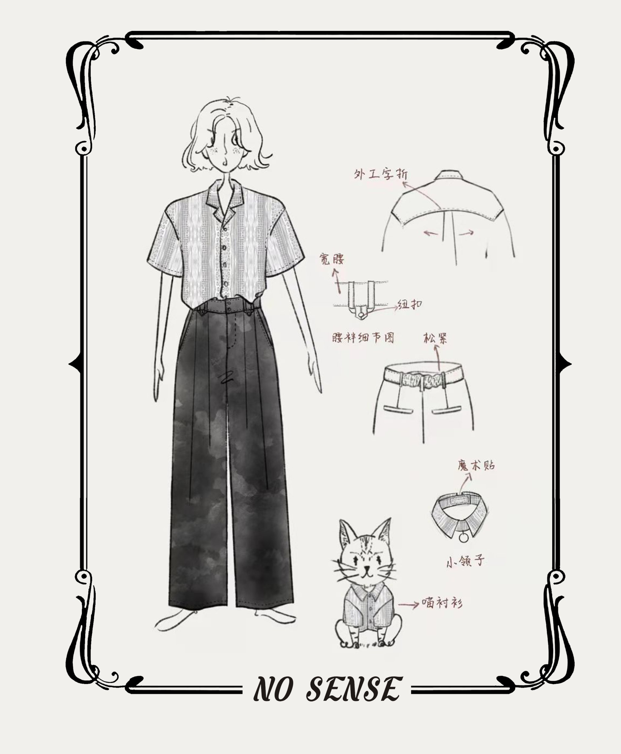 No sense無感官 日系復古印花短袖襯衫男女垂感寬鬆古巴領襯衫