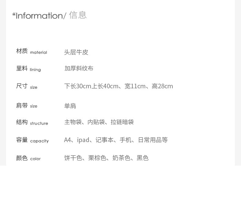 包内部结构 拉链暗袋,手机袋,证件袋,夹层拉链袋