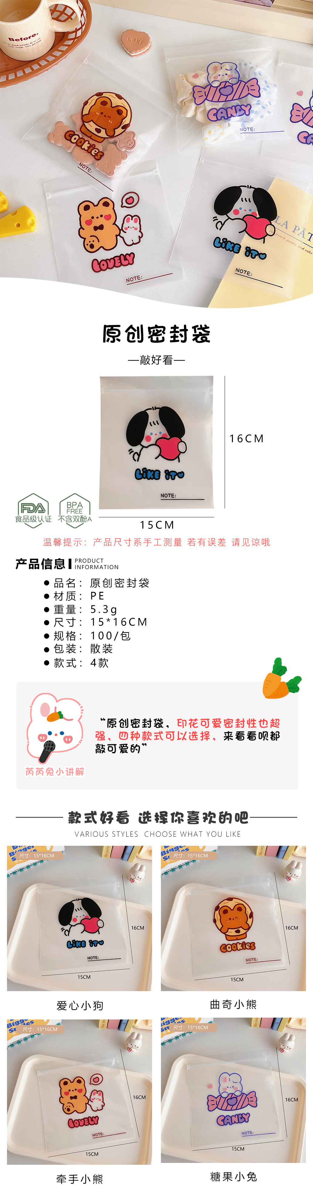 原创可爱零食自封袋密封袋卡通小熊饼干糖果口罩小号收纳包装袋