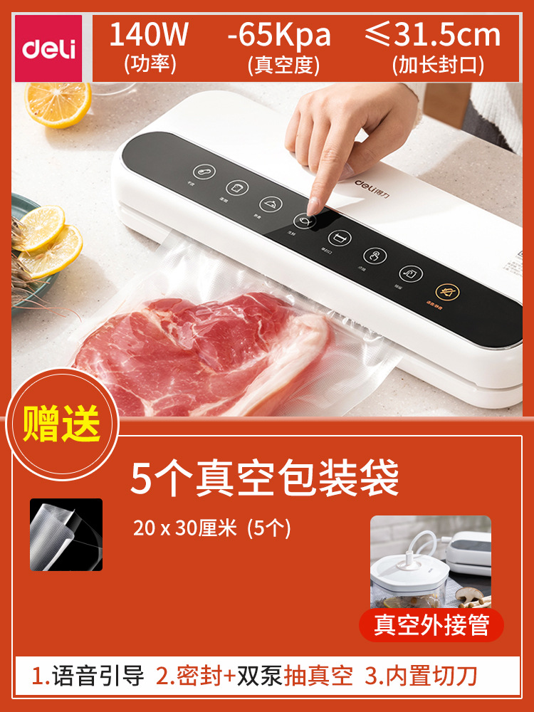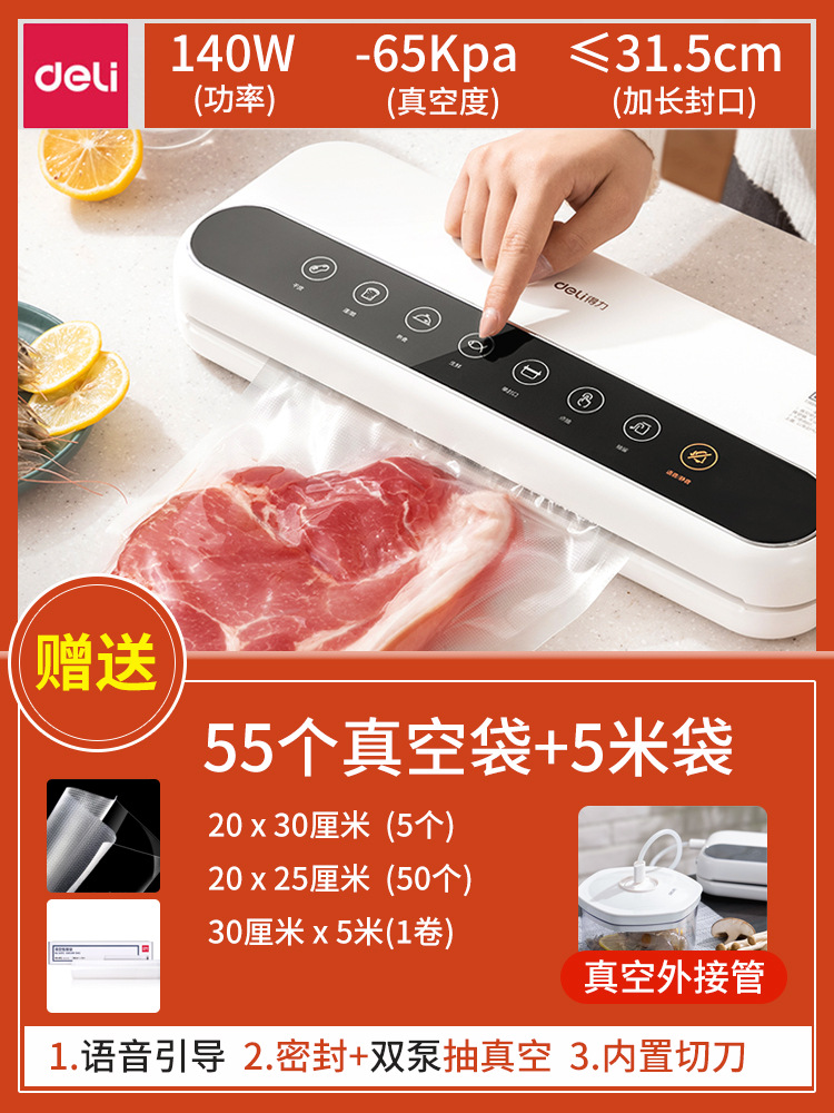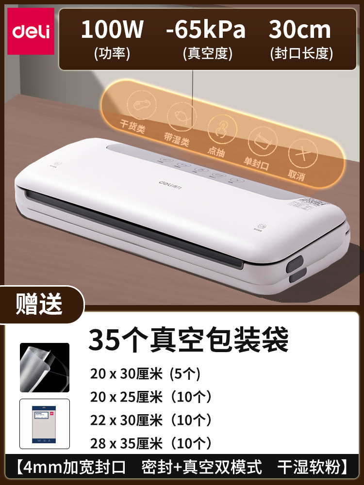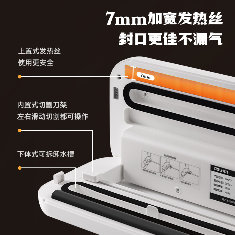 得力LM777封口机真空家用全自动抽真空机小型商用 塑封保鲜密封机