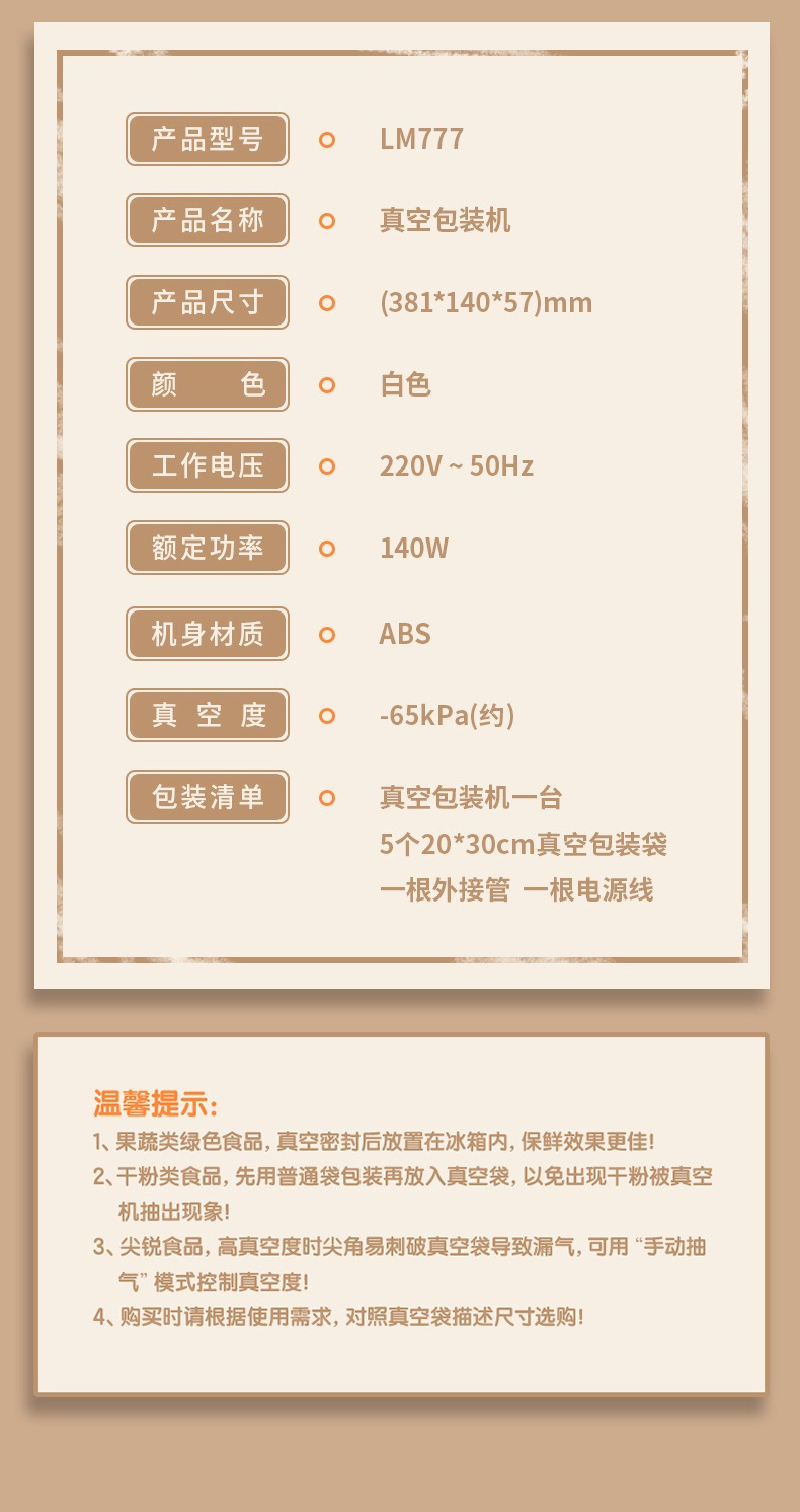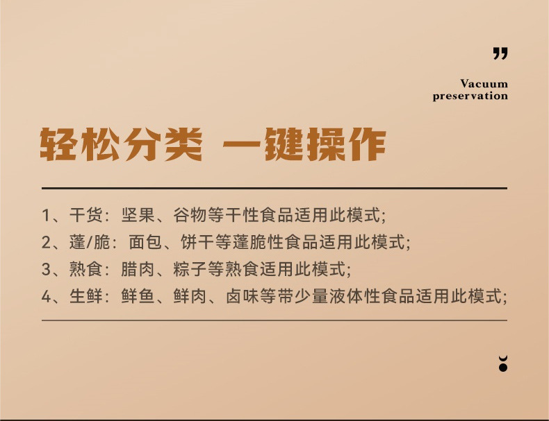 适用场景 家用商用食品真空/密封保鲜