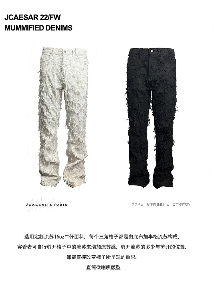 JCAESAR Mummified 小眾設計木乃伊流蘇牛仔褲cleanfit純色長褲