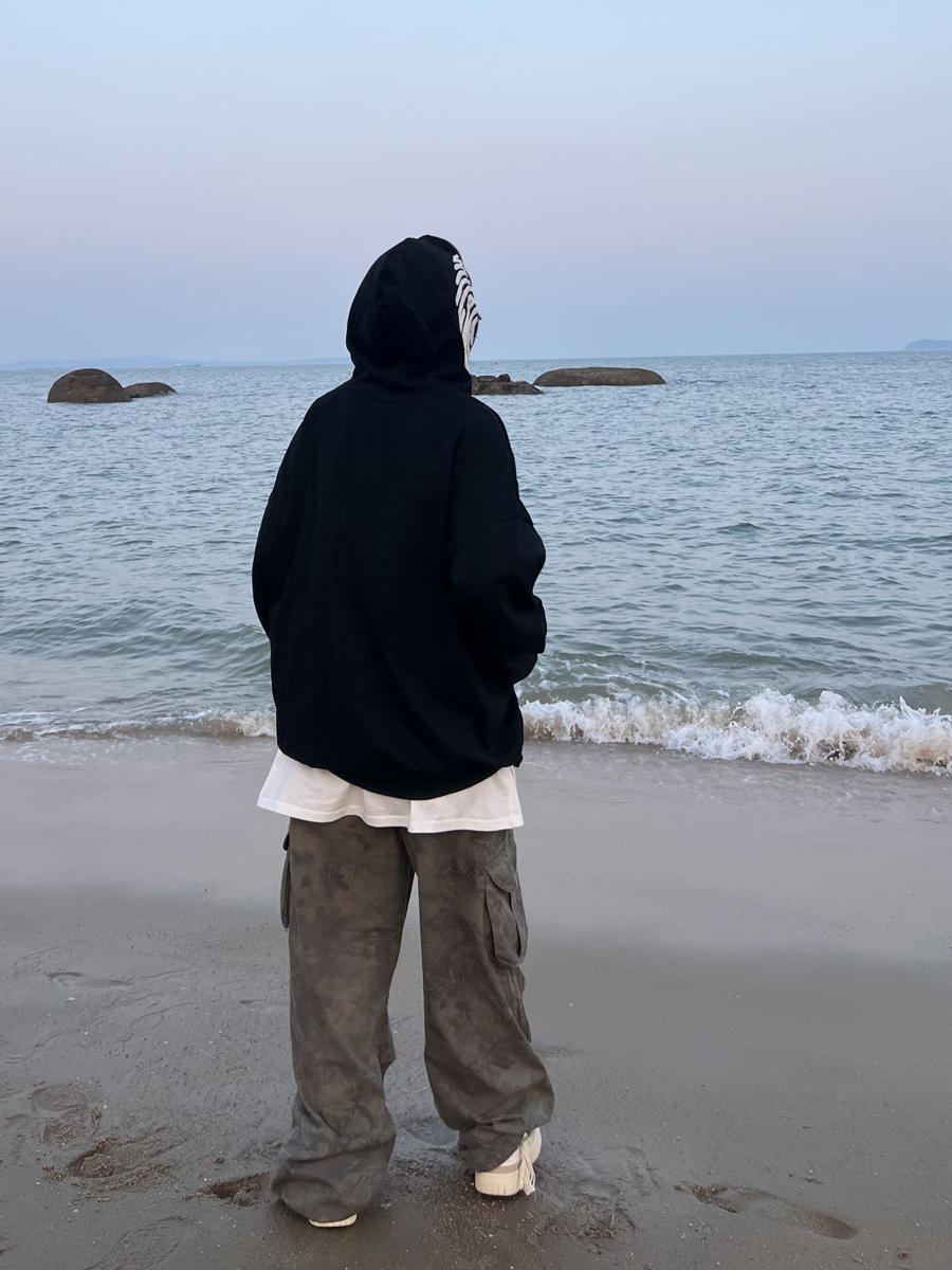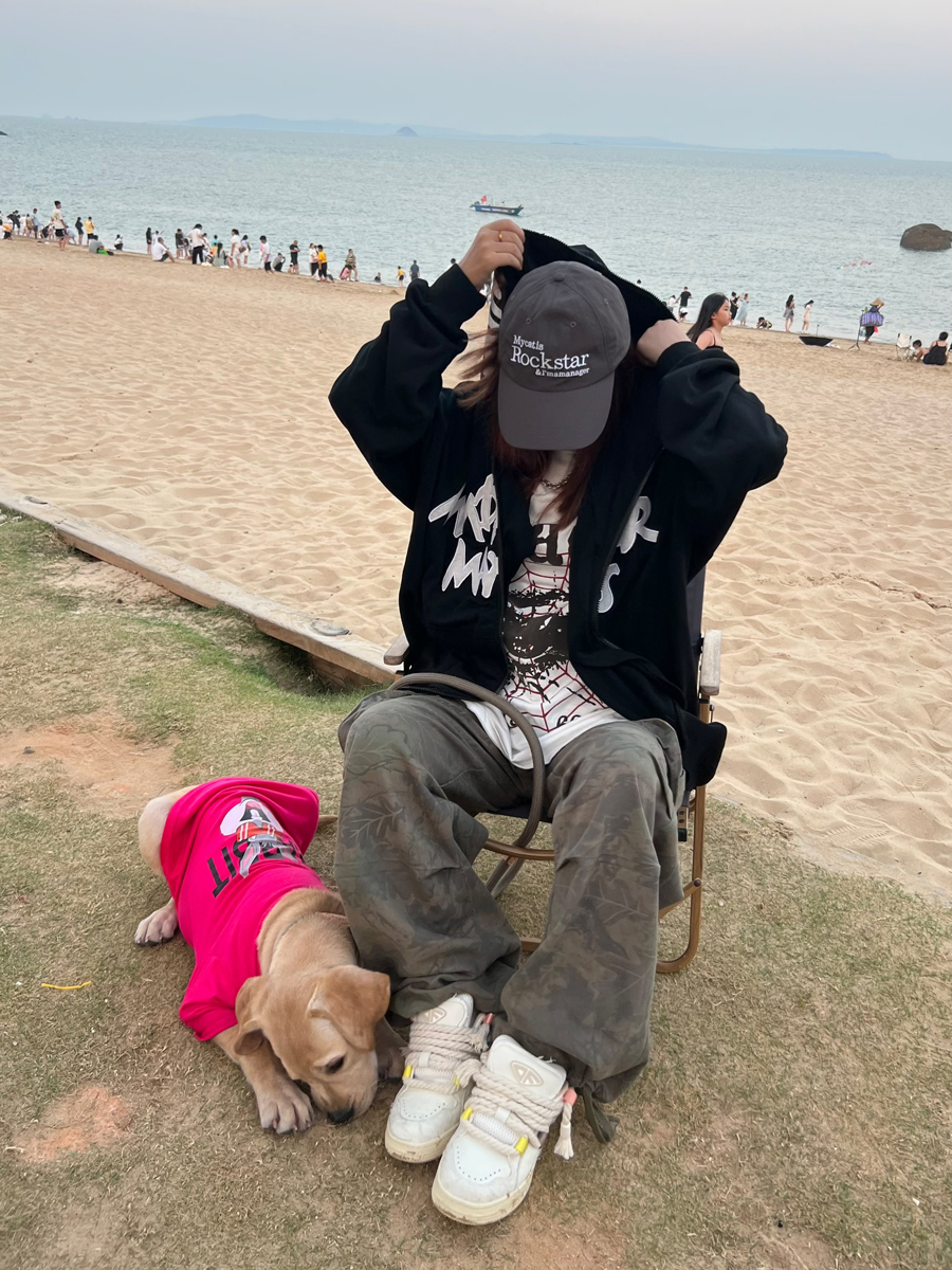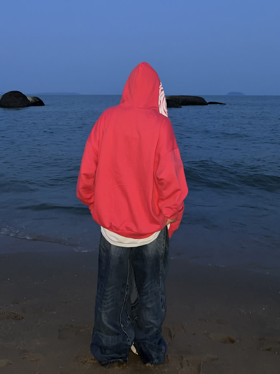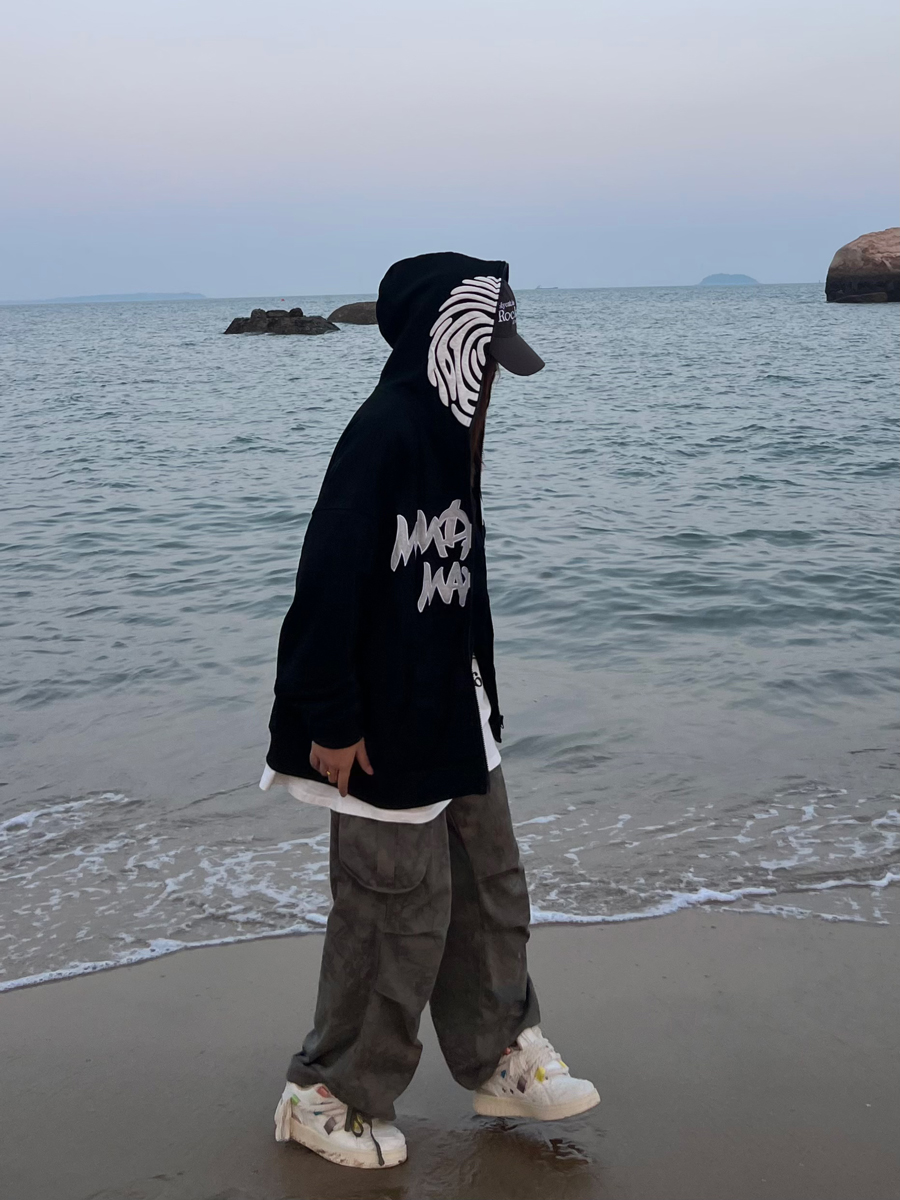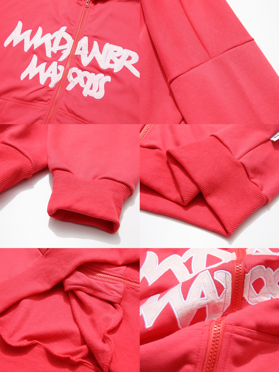 JU403 原創美式街頭字母連帽運動衫小眾情侶寬鬆休閒拉鍊開衫外套潮