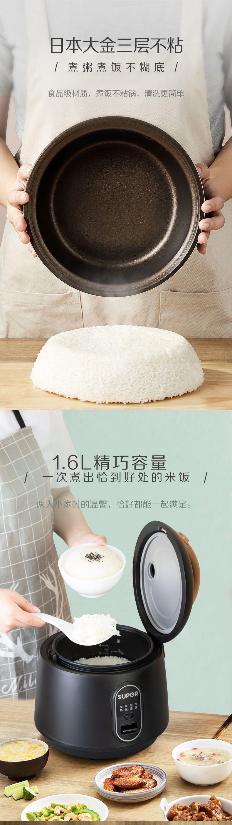 苏泊尔迷你电饭煲多功能家用1.6L升电饭锅小型1-2-3人官方旗舰店