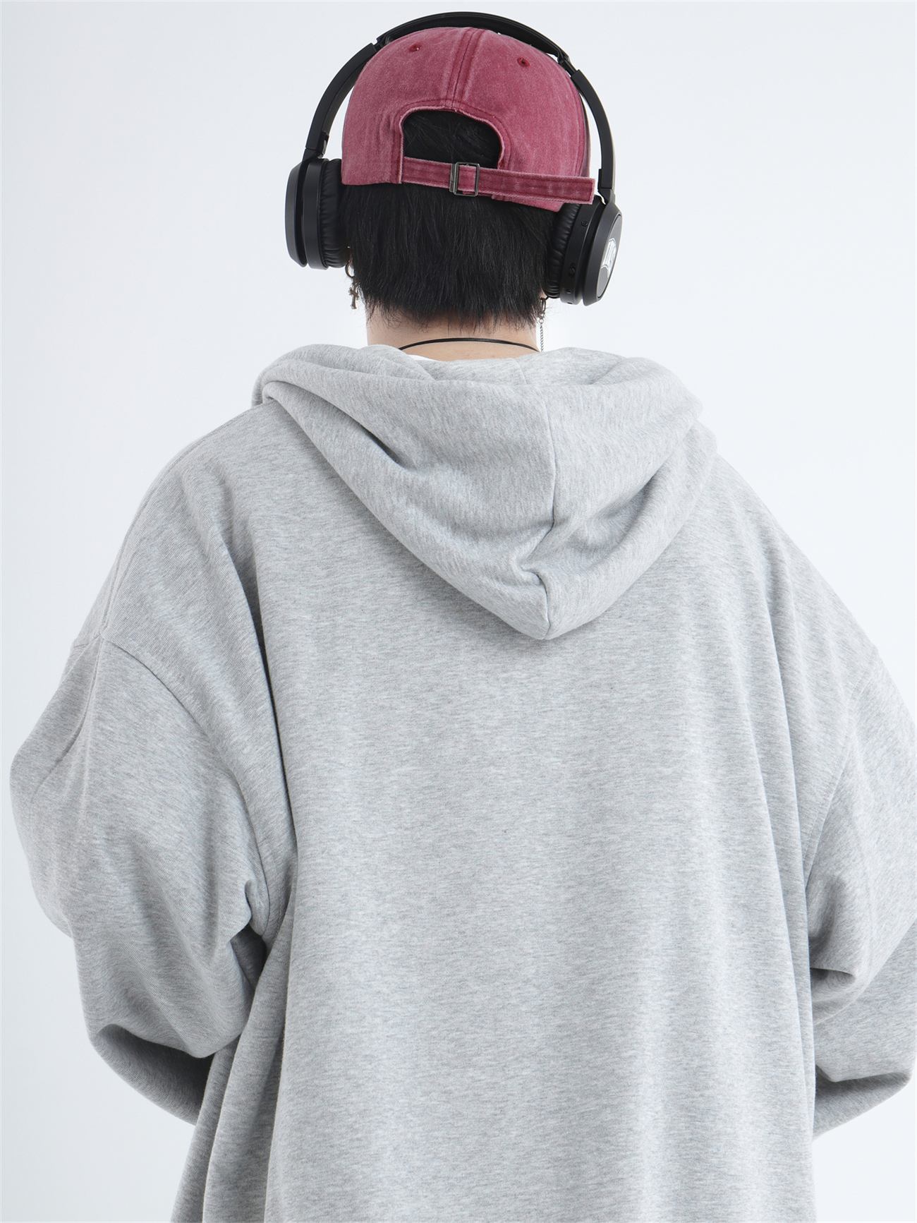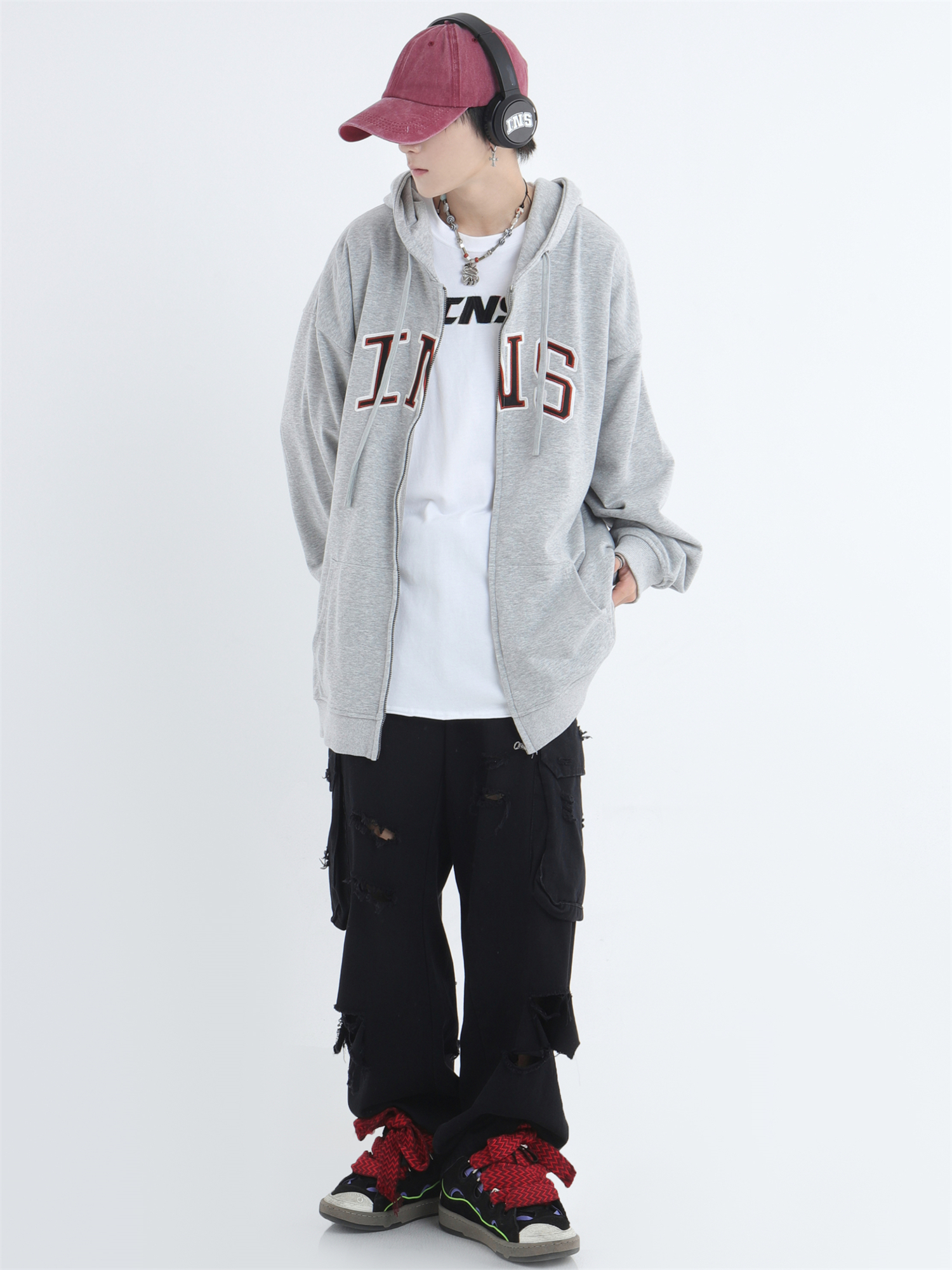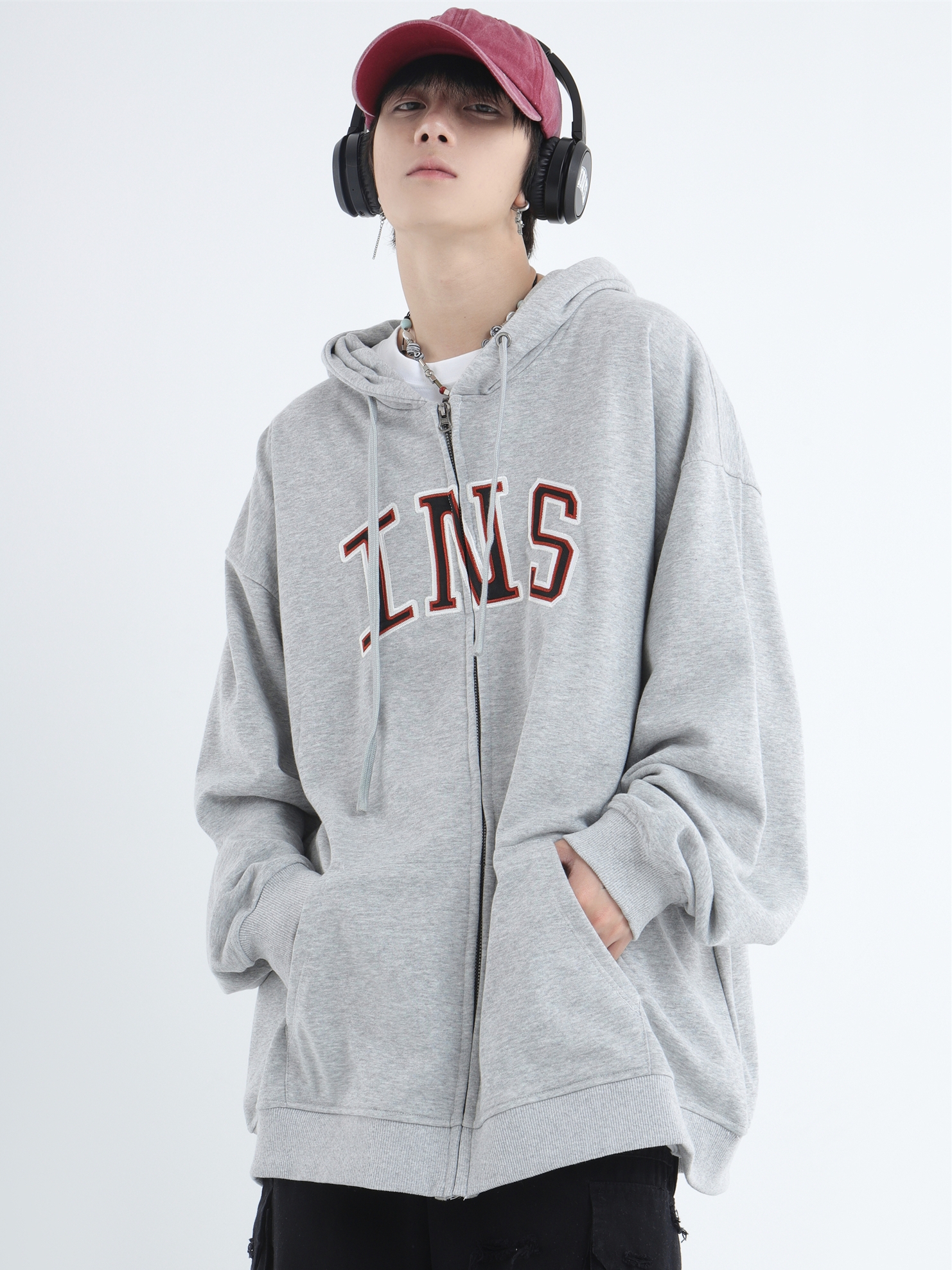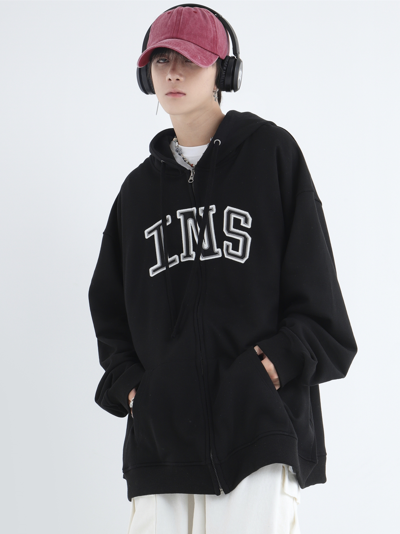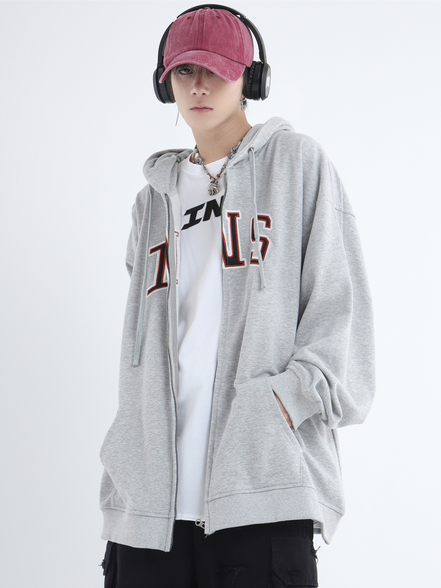 INSstudios 布貼繡LOGO開衫厚棉T自制國潮情侶百搭拉鍊連帽外套男